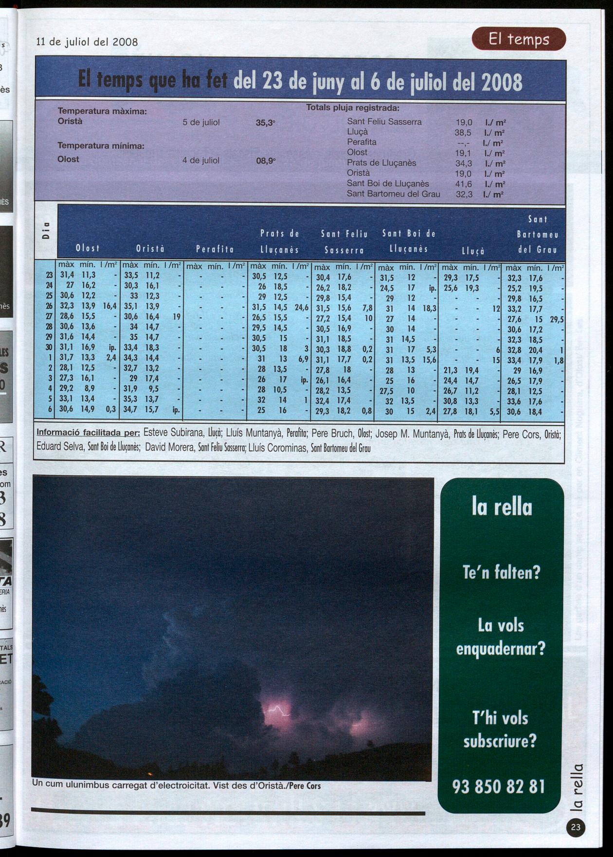 Informació facilitada per: Esteve Subirana, lIu¡à; Lluís Muntanyà, Perafita; Pere Bruch, Olost; Josep M. Muntanyà, Prats