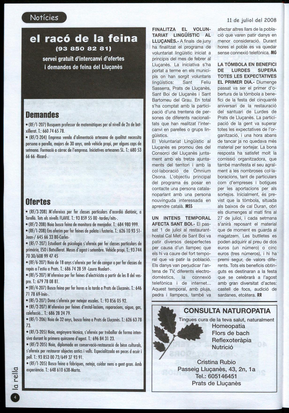 servei gratuït d'intercanvi d'ofertes i demandes de feina del Lluçanès