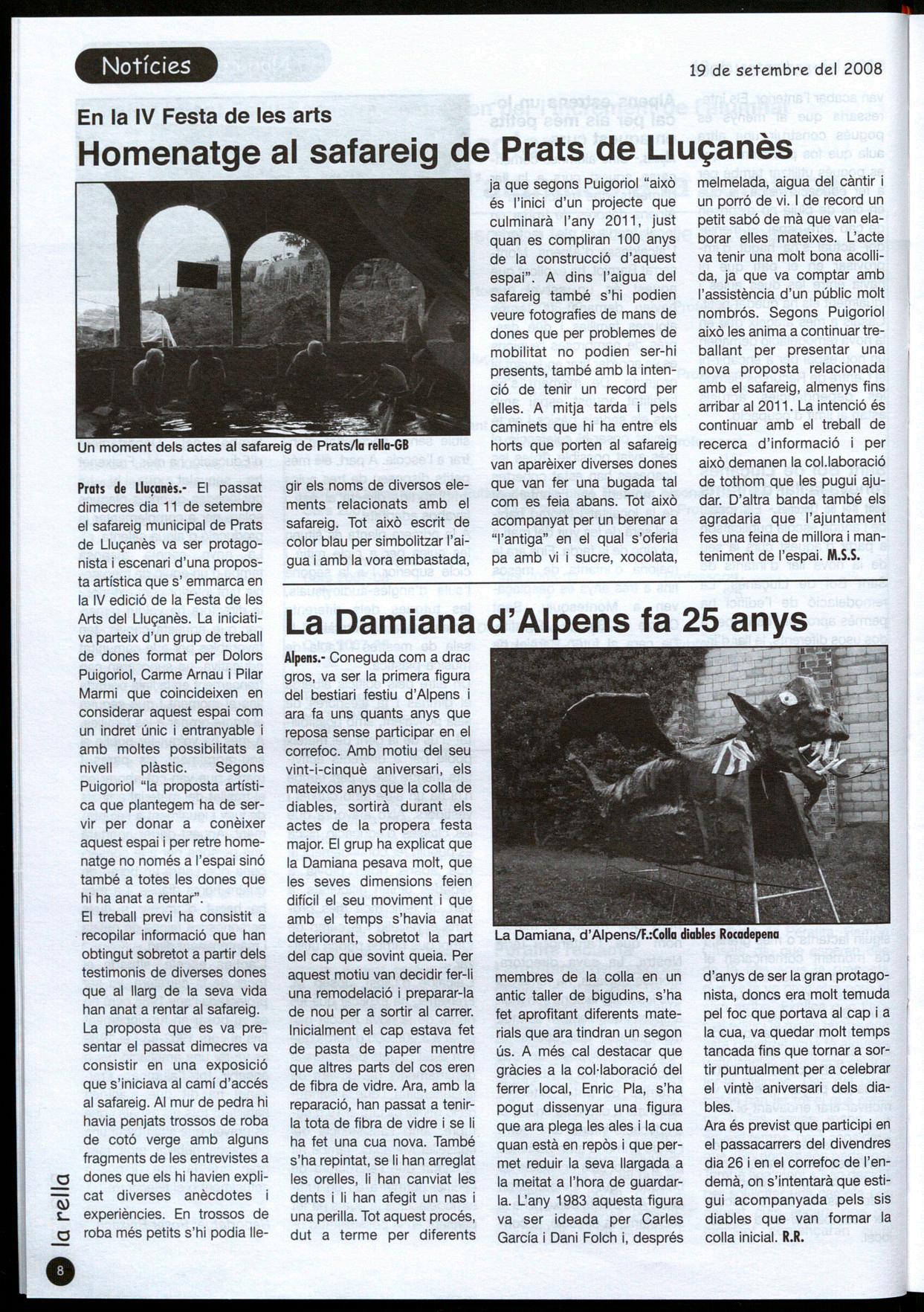 EL FES-TE L'AGOST 2008.L'ajuntament de Prats de Lluçanès ha emès un comunicat a tall de balanç de les sessions organitzades a l'entorn de la proposta Fes-te l'agost!, programació per a les nits dels divendres del mes d'agost que es ve celebrant a la localitat des de fa cinc anys. En aquest comunicat valora l'activitat de forma positiva, destacant l'assistència a les actuacions del grup els Tranquils i a la darrera sessió. En aquest comunicat destaca les actuacions del grup els Tranquils l'obra de teatre representada pel grup Tona78 Talia, Majòrica, i que xifra en prop de dues-centes les persones assistents.