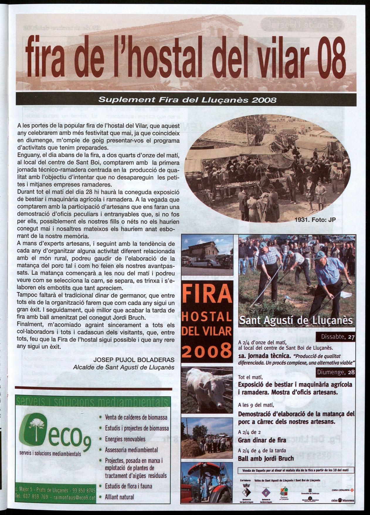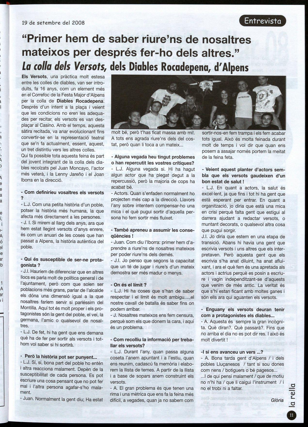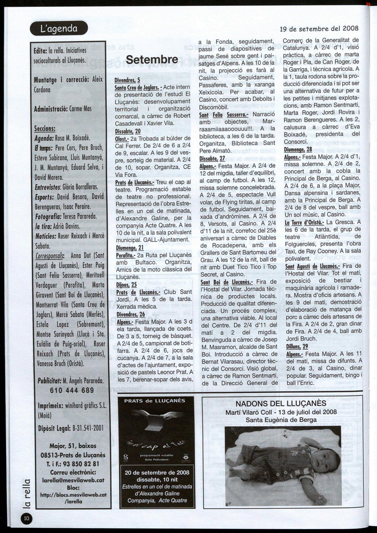 Llu�anès.· Amb motiu de la Diada de I'll de Setembre, com cada any, els pobles del Lluçanès han organitzat actes de caire reivindicatiu i de caire festiu, en alguns casos coincidint amb la mateixa Festa Major de la localitat.