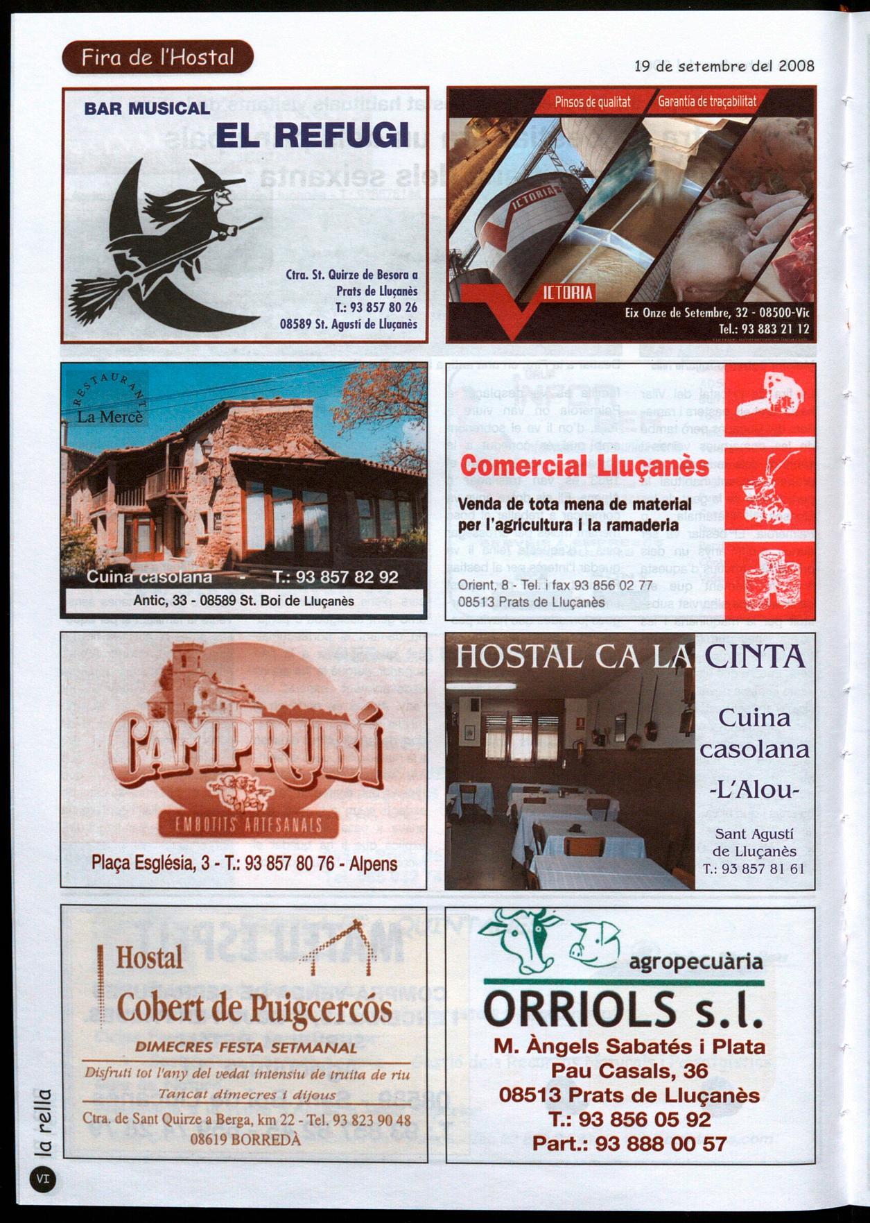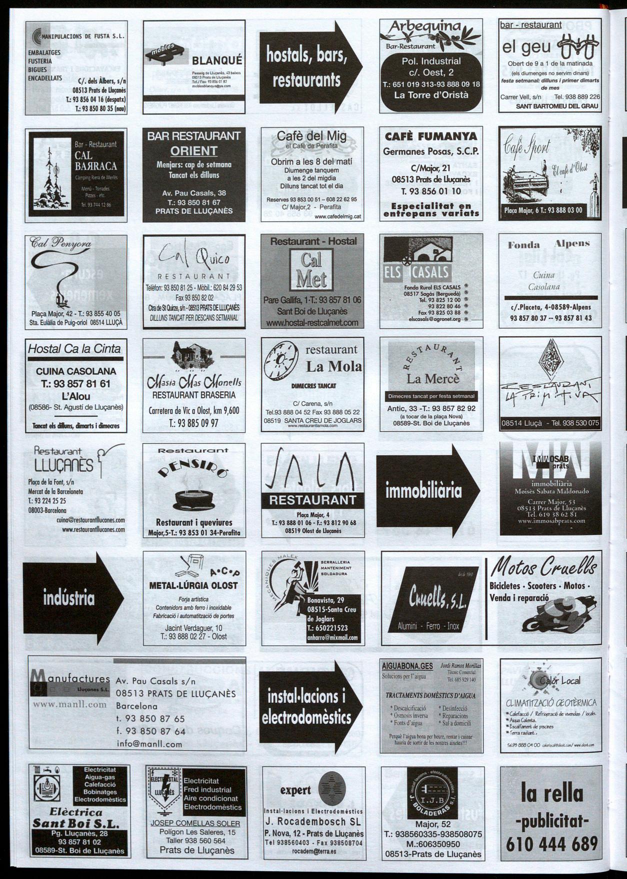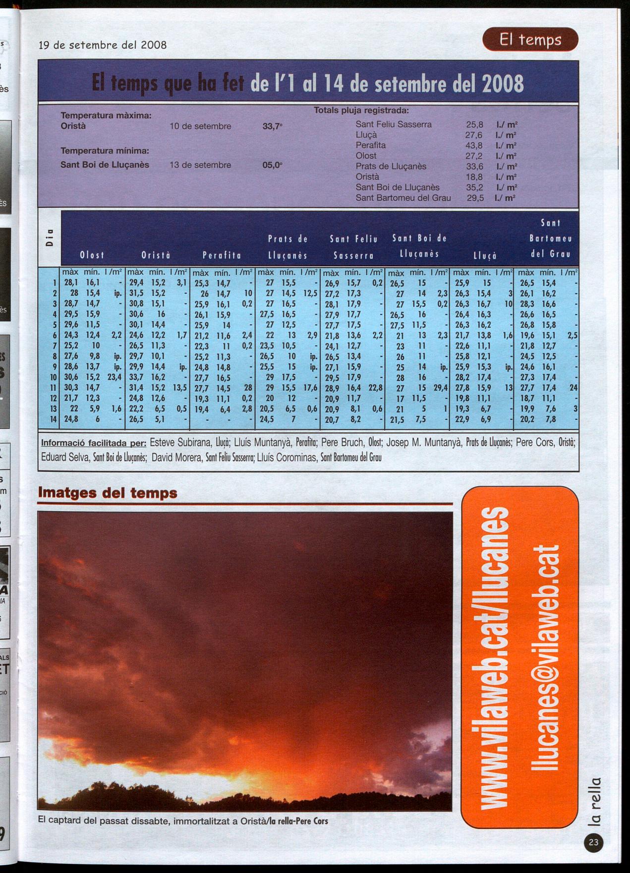 Informació facilitada per: Esteve Subirana, UUIÒ; Lluís Muntanyà, Perafita; Pere Bruch, Olost; Josep M. Muntanyà, Prats de UUlonès; Pere Cors, Oristò; Eduard Selva, Sant Boi de UUlonès; David Morera, Sant feliu Sasserra; Lluís Corominas, SantBartomeu del Grau