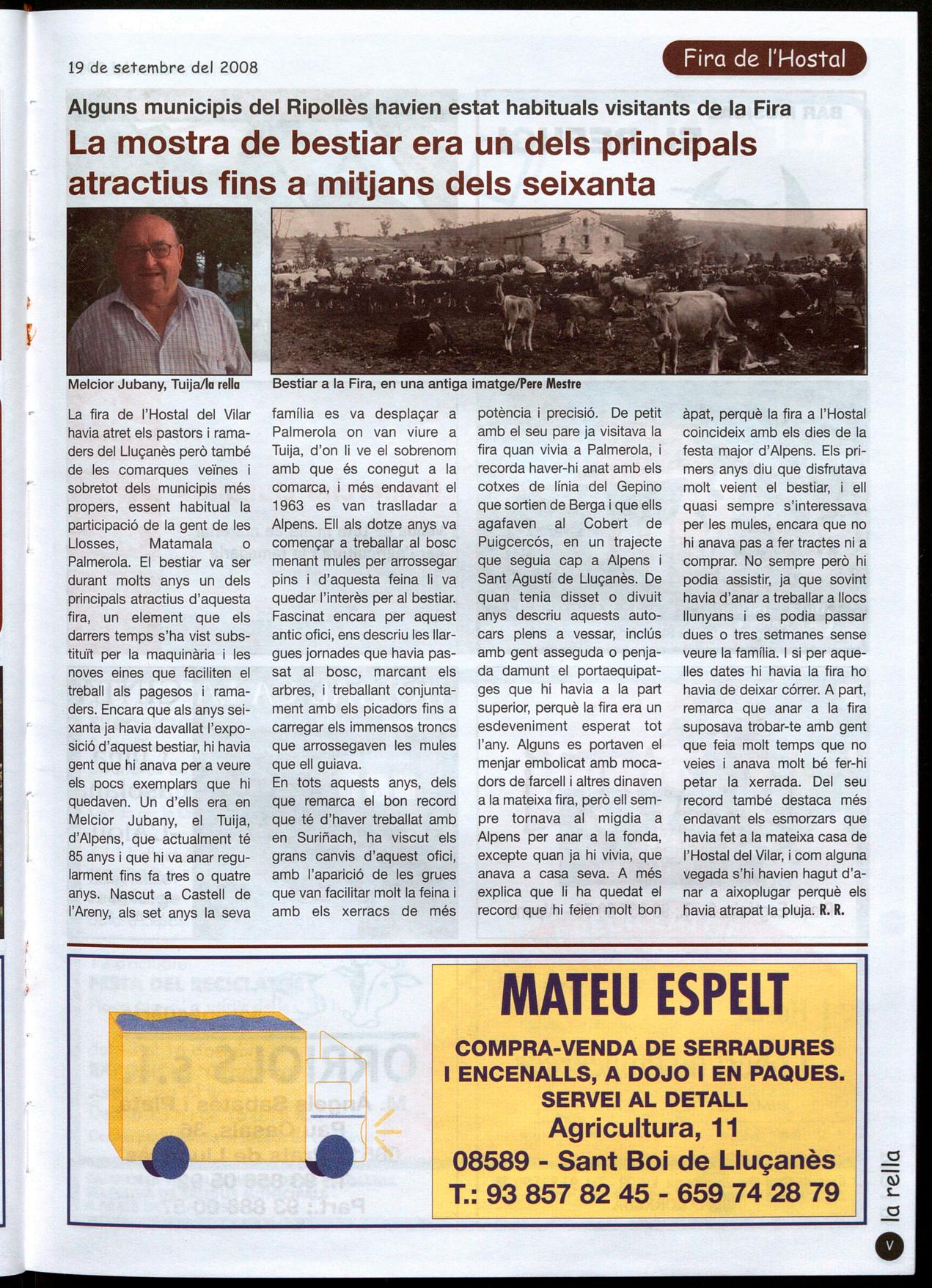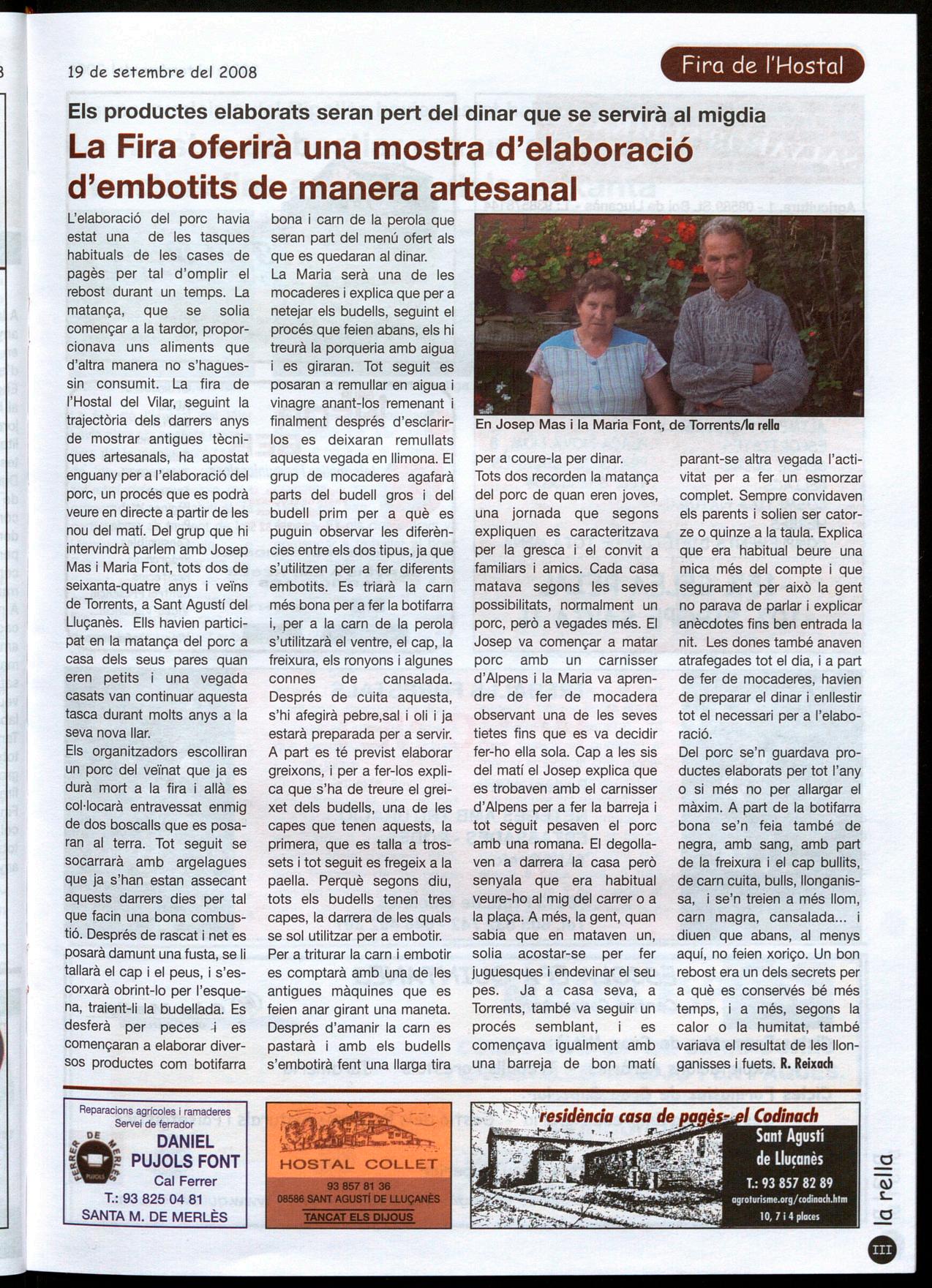 CELEBREN LA DIADA A LA FONT DE L'HORTA VELLA.L'Associació Amics de les Fonts Lluçanès Nord de Sant Boi va organitzar un dinar popular a la font de l'Horta Vella per celebrar la Diada de Catalunya. El dinar, una costellada, va tenir una assistència de 60 persones va començar