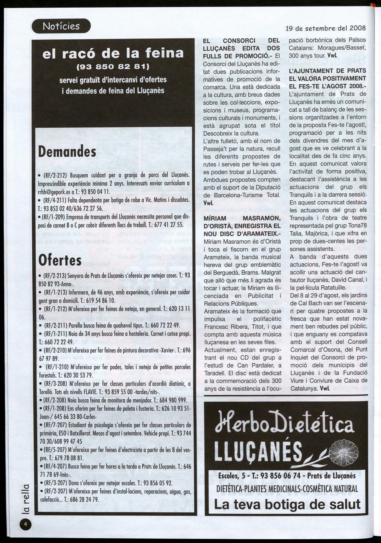 servei gratuït d'intercanvi d'ofertes i demandes de feina del Lluçanès
