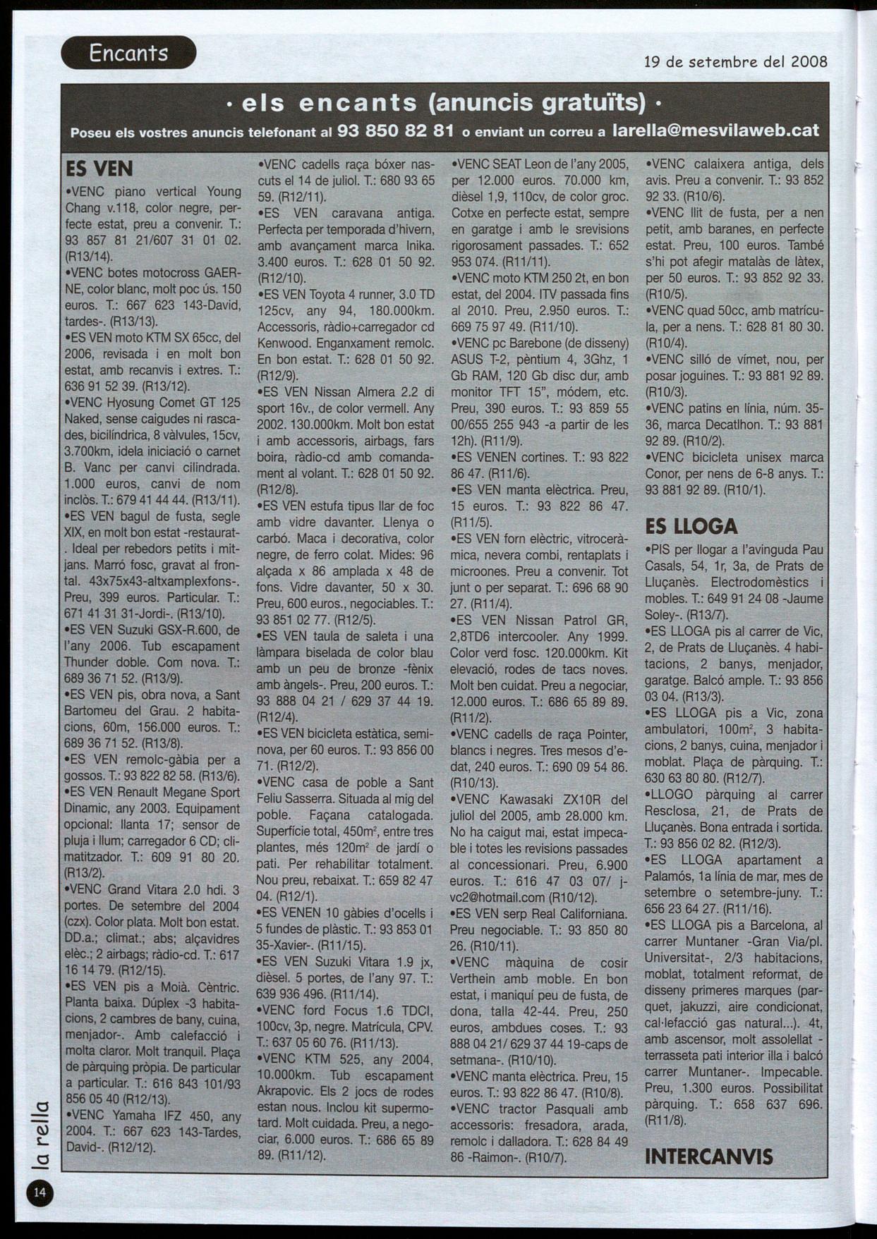 Preu, 390 euros. T.: 93 859 55 00/655 255 943 -a partir de les 12h). (R1119).