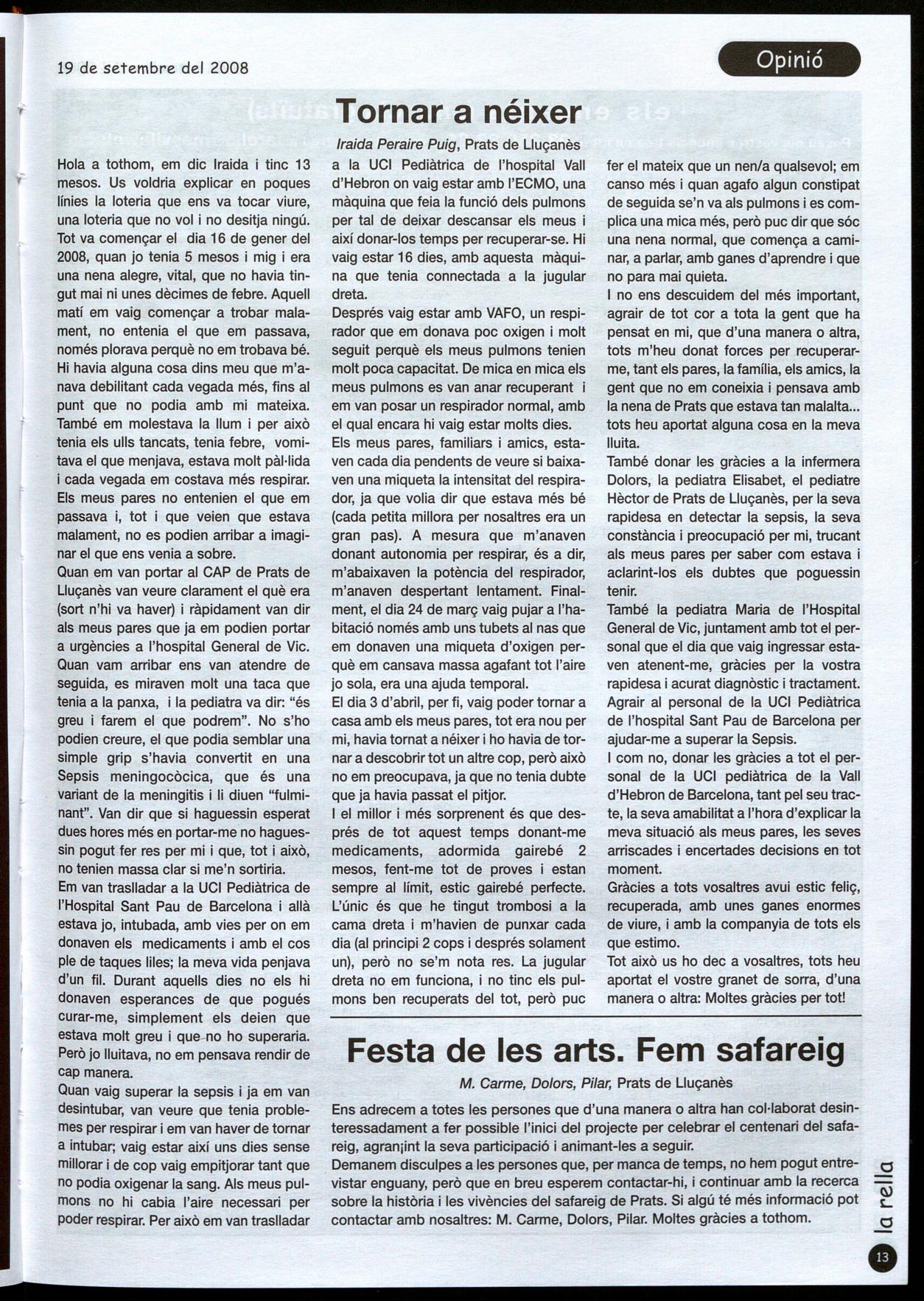BOI.- El passat 7 de setembre és va celebrar la festa de la gent gran a Sant Boi on van assistir 90 persones. L'acte organitzat per l'associació El Roure, estava oberta a tothom, socis, gran o vell... La festa va començar amb una missa a l'església parroquial de Sant Boi, on va cantar el Av. Pau Casals, 46, 1