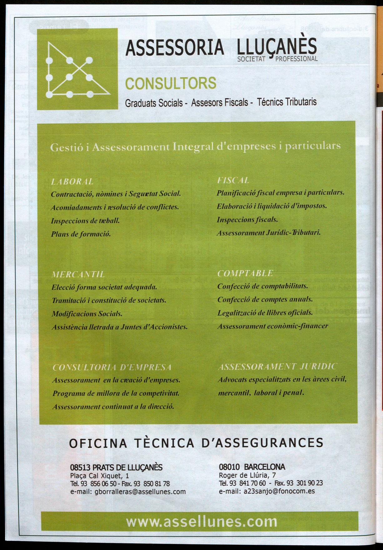 Avda. Pau Casals, 461r Tel. 938560576 Fax. 938560065 08513 PRATS DE LLUÇANÈS