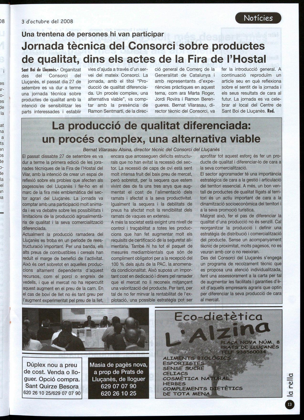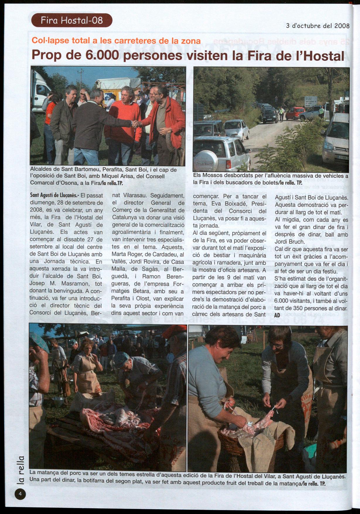 Sont Agustí de Lluçonès.· El passat diumenge, 28 de setembre de 2008, es va celebrar, un any més, la Fira de l'Hostal del Vilar, de Sant Agustí de Lluçanès. Els actes van començar al dissabte 27 de setembre al local del centre de Sant Boi de Lluçanès amb una Jornada tècnica. En aquesta xerrada la va introduir l'alcalde de Sant Boi, Josep M. Masramon, tot donant la benvinguda. A continuació, va fer una introducció el director tècnic del Consorci del Lluçanès, Ber-
