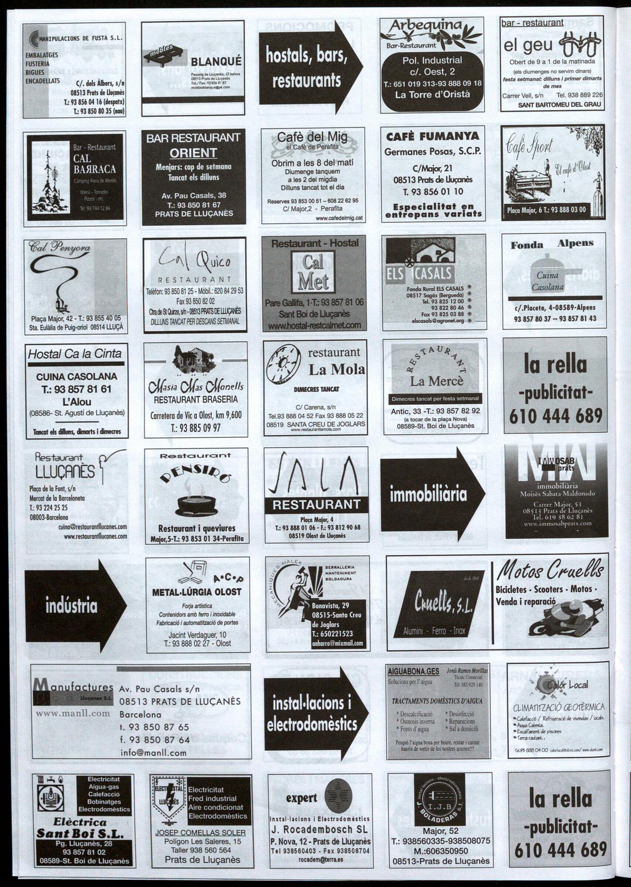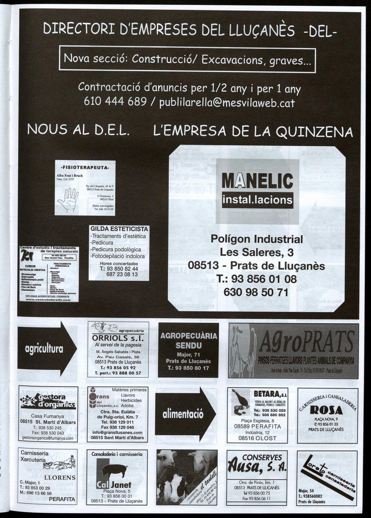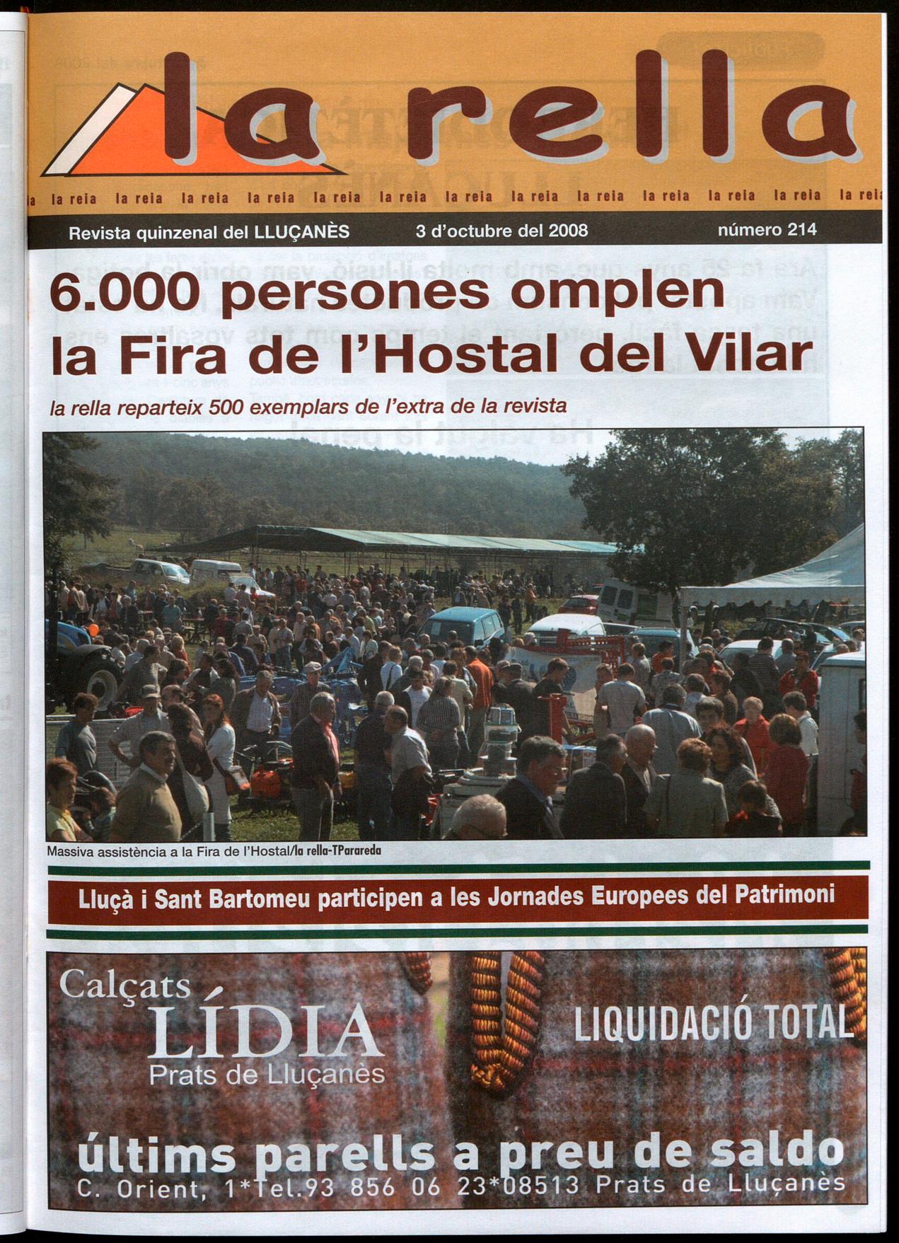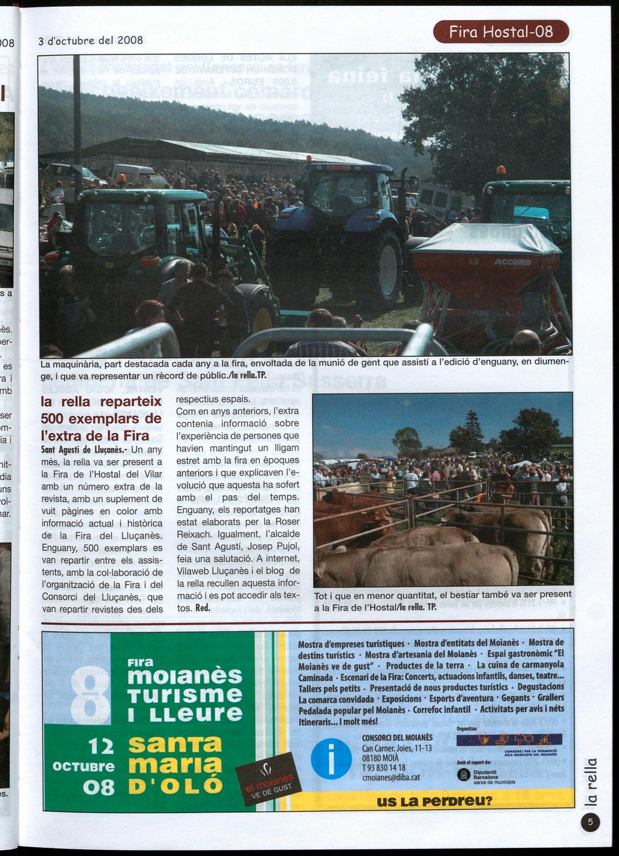 Sant Agustí de Lluçanès.· U n any més, la rella va ser present a la Fira de l'Hostal del Vilar amb un número extra de la revista, amb un suplement de vuit pàgines en color amb informació actual històrica de la Fira del Lluçanès. Enguany, 500 exemplars es van repartir entre els assistents, amb la col-laboració de l'organització de la Fira i del Consorci del Lluçanès, que van repartir revistes des dels nitdia ms 'ollar. is. respectius espais.