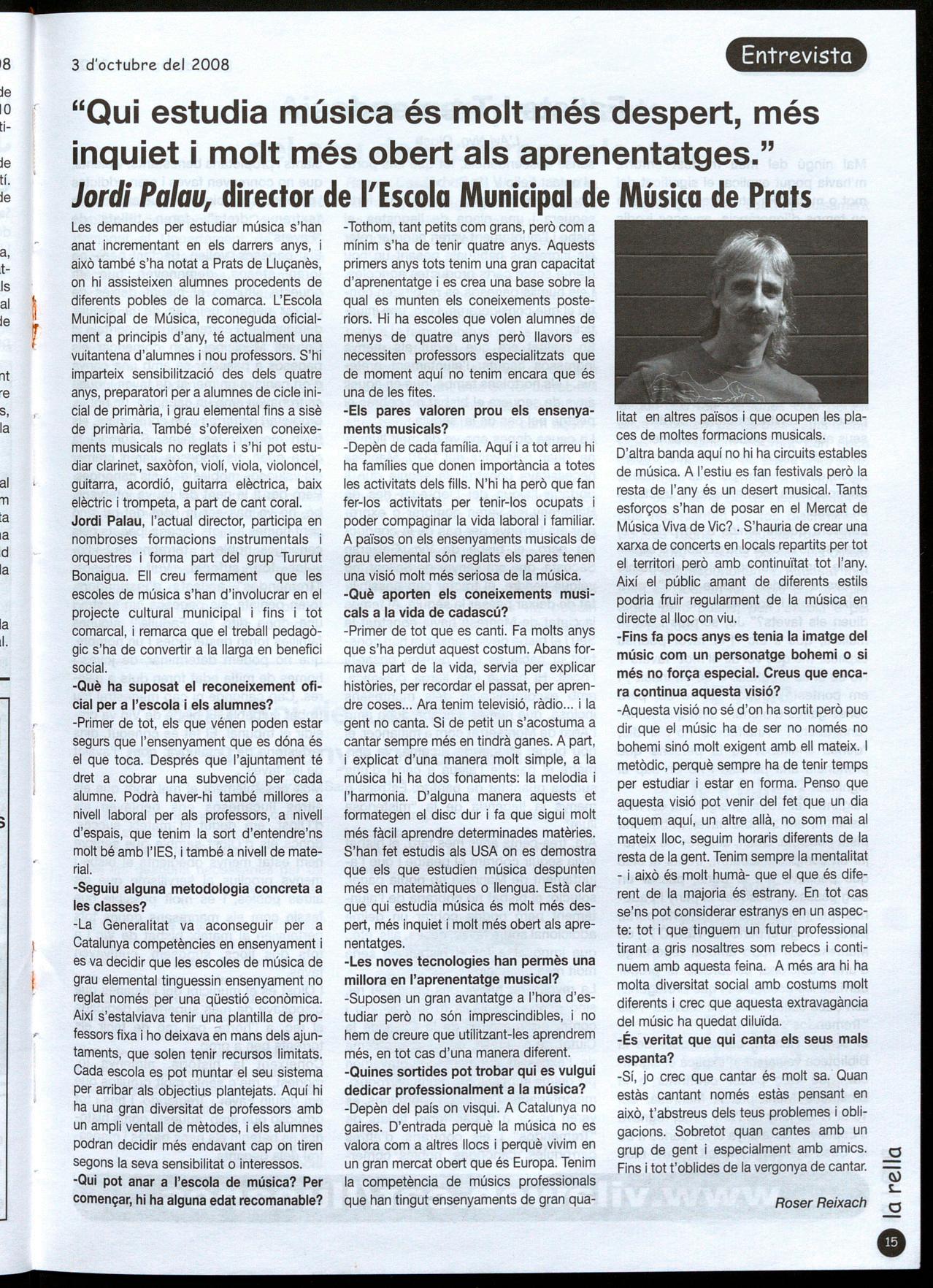 3 d'octubre del 2008 que entre finals d'aquest any principi de l'any següent es publiqui la primera convocatòria. MSS