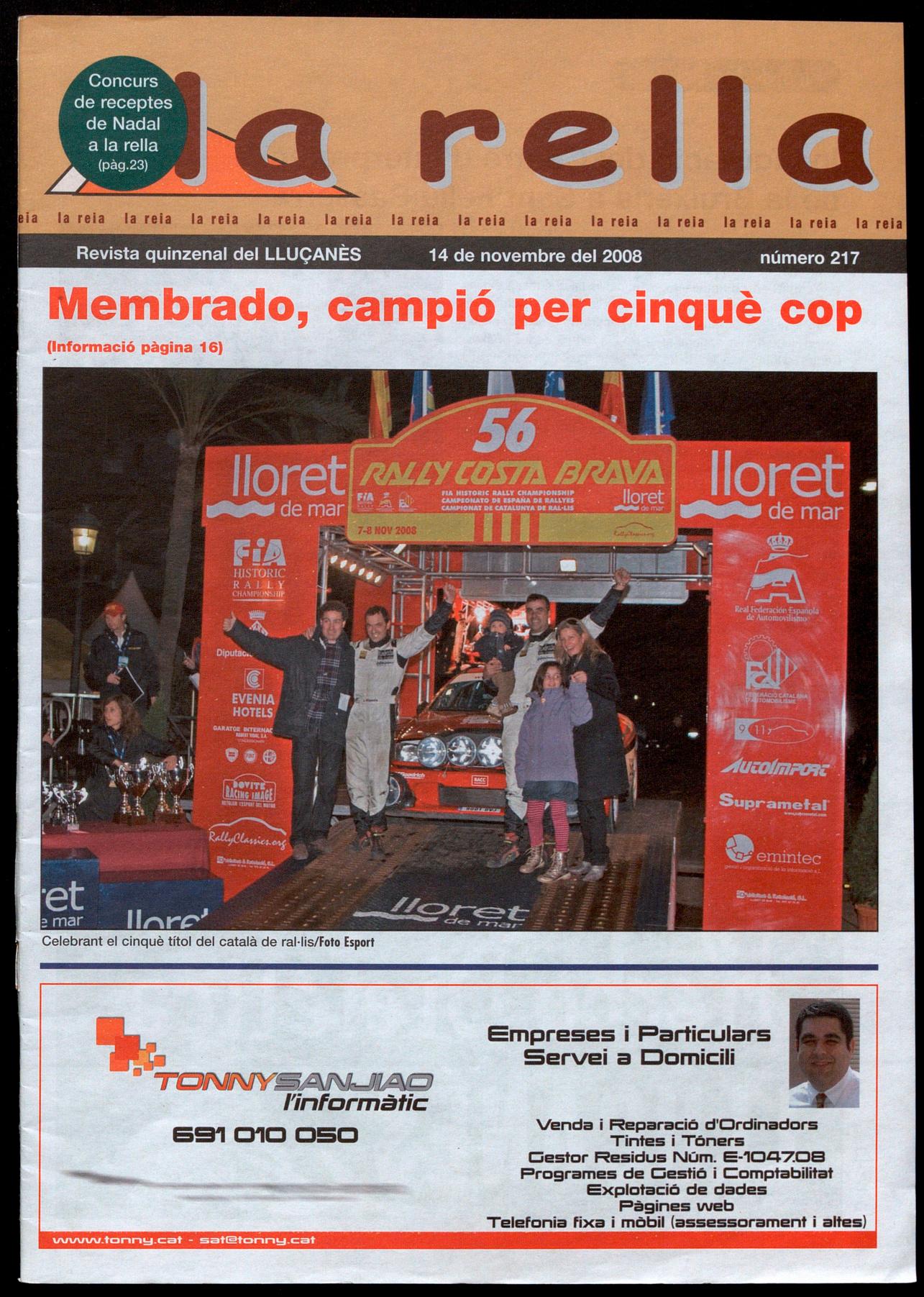 mentre que Membrado es va afermar en un tercer lloc que li donava el títol català. "Per fi hem aconseguit revalidar el títol, volíem evitar la tensió d'arribar a un final a cara o creu, no va poder ser, però tot ha sortit bé hem fet realitat l'objectiu que hem perseguit des de l'inici de la temporada". Eren les paraules de Membrado abans d'entrar en l'últim control horari abans d'entrar el seu Maxi Megane al parc tancat del Passeig Marítim de Lloret. Segons el pilot olostenc, "el Costa Brava no ha estat fàcil, però tot ha anat sortint segons el