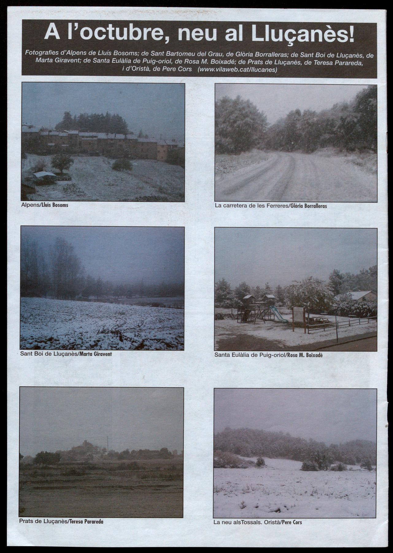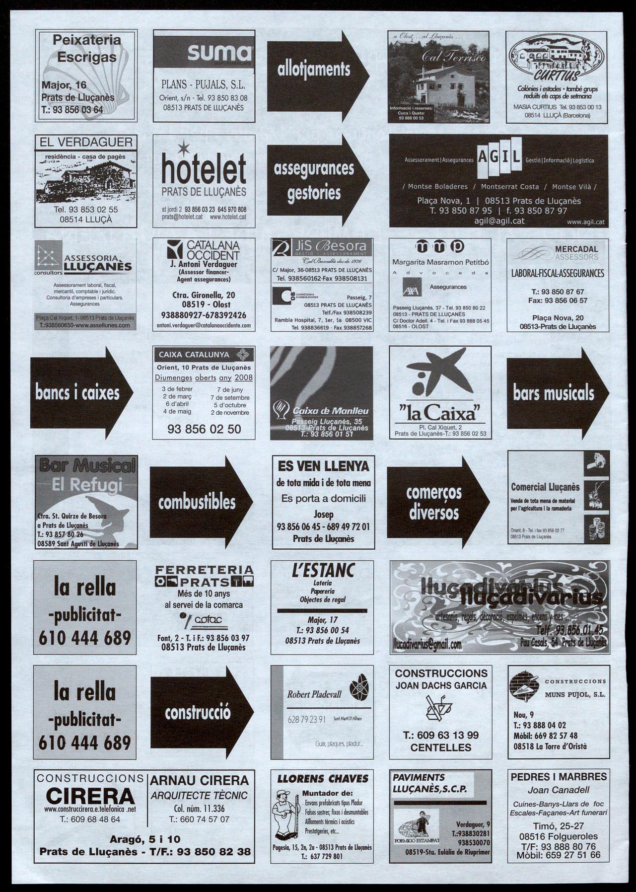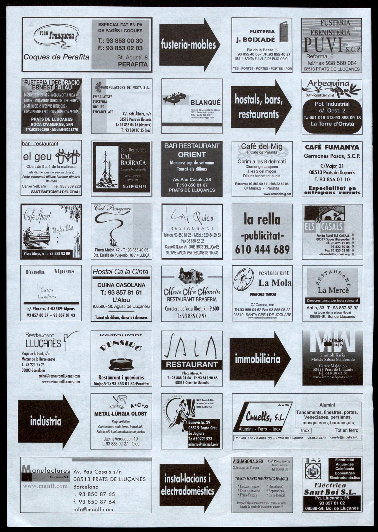 Informació facilitada per: Esteve Subirana, Uu(à; Lluís Muntanyà, Perafito; Pere Bruch, Olost; Josep M. Muntanyà, Prots �e Uu(onès; Pere Cors, Oristà; Eduard Selva, Sont Boi �e lIu(onès; David Morera, Sont feliu Sosserro; Lluís Corominas, Sont Bortomeu �el Grou