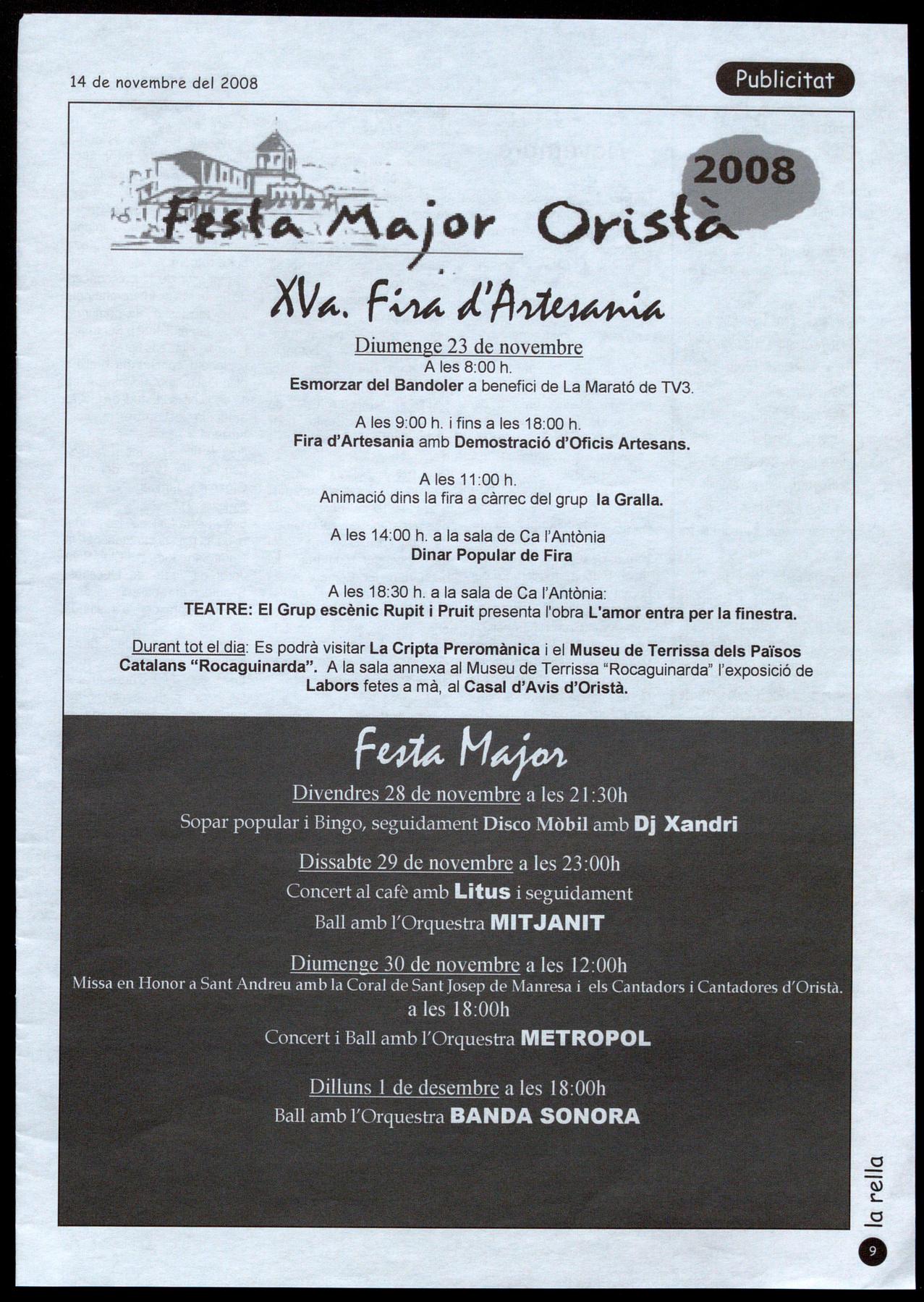 LA TORRE D'ORISTÀ Temporada 2008/2009
