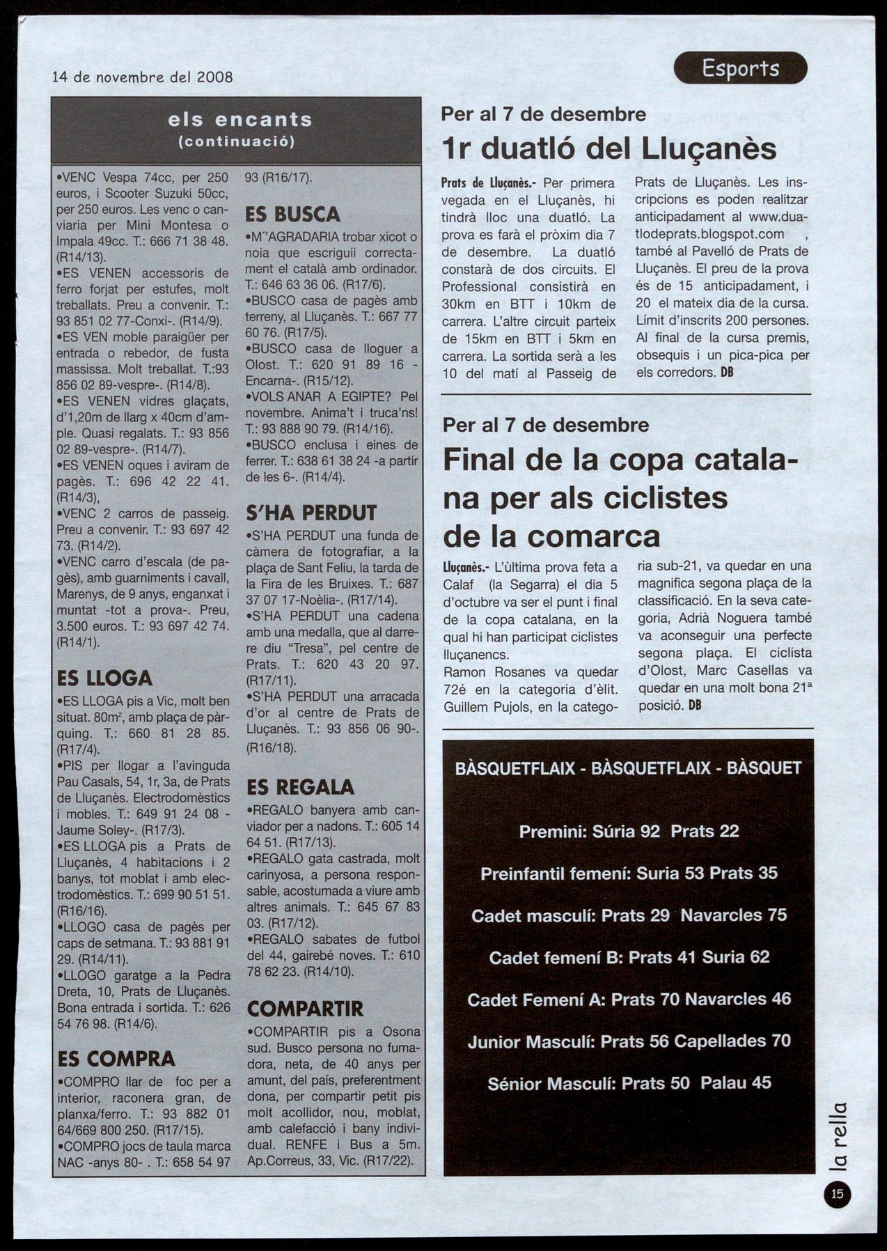 Pau Casals, 54, 1 r, 3a, de Prats de Lluçanès. Electrodomèstics mobles. T.: 649 91 24 08Jaume Soley-. (R17/3).