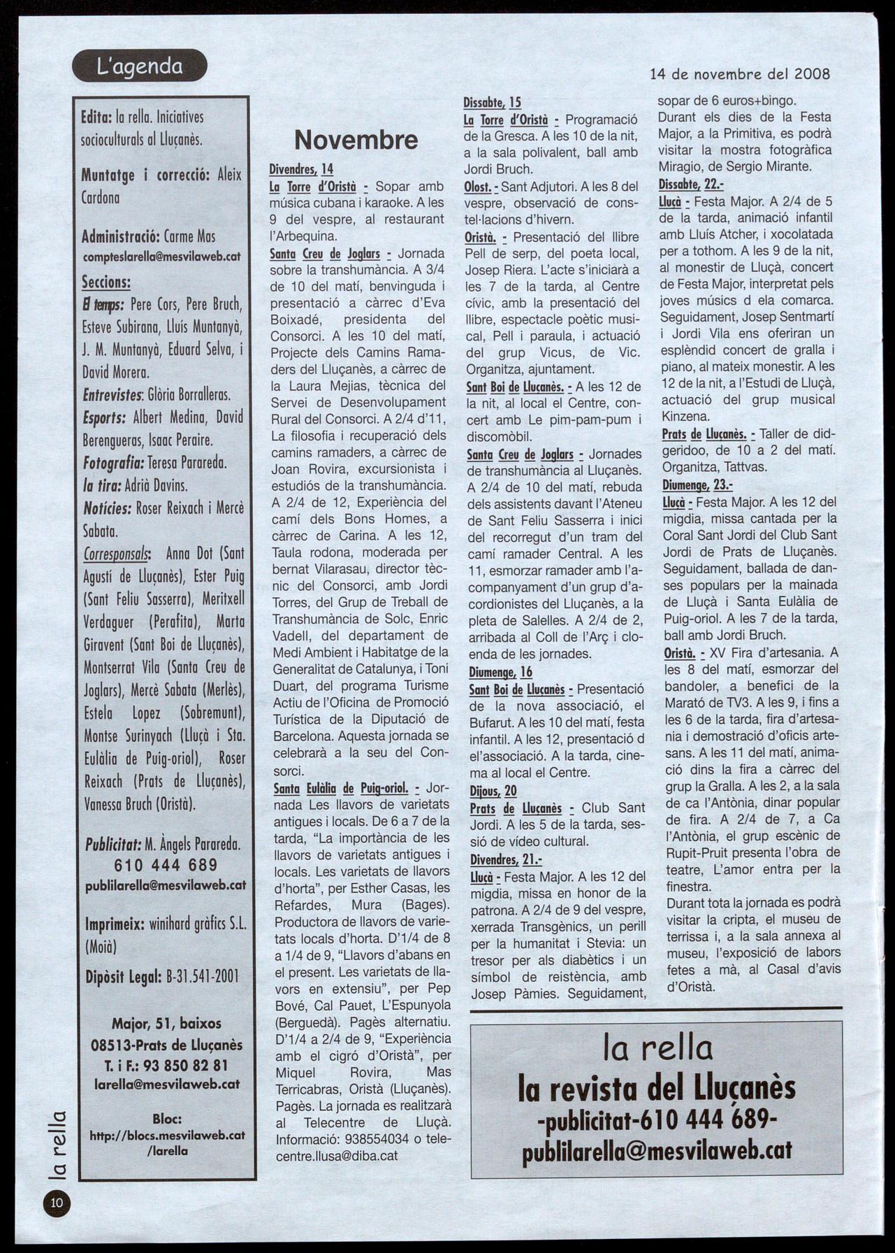 A banda d'aquesta informació, es parla de I'enllumenta de Nadal, de l'enllumenat dels carrers, d'obres al pavelló municipal, d'un nou aparcament públic gratuït, en un altre solar que havia de convertir-se en pisos. Igualment, recull un escrit de l'alcalde, en el to havbitual, aquest cop recordant la figura de qui fou alcalde Vic i fill de Prats, Ramon Montanyà, així com de la figura del doctor Grau, en la persona de la seva germana, recentment traspassada. Informacions del grup d'ERC i altres sobre la nova carretera i sobre les ofertes formatives, juntament amb les habituals invitacions, tanquen aquest número del butlletí municipal. AC