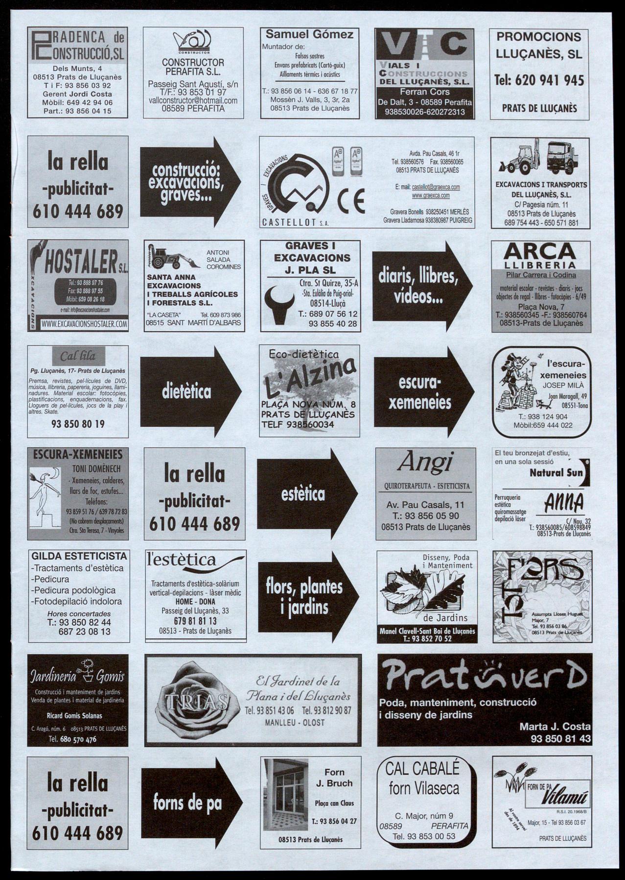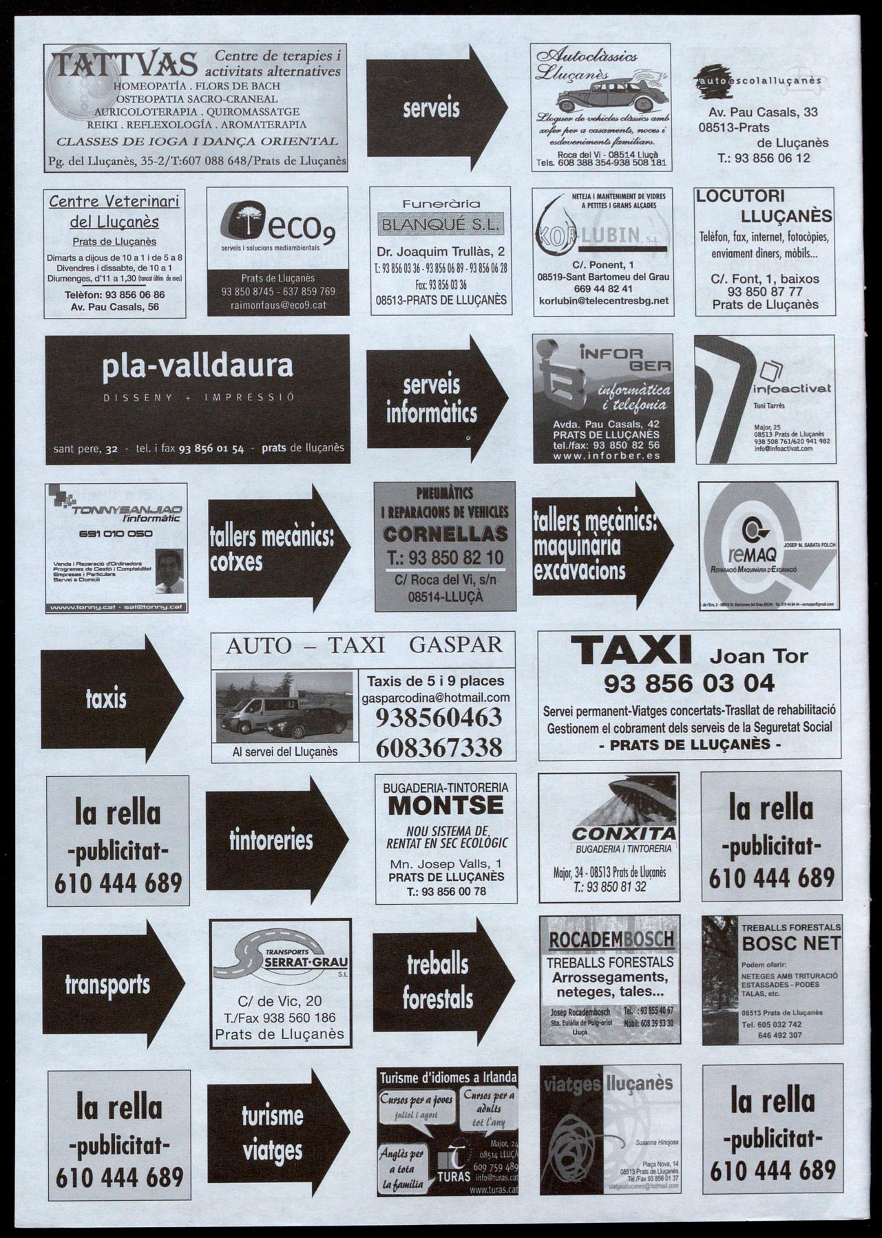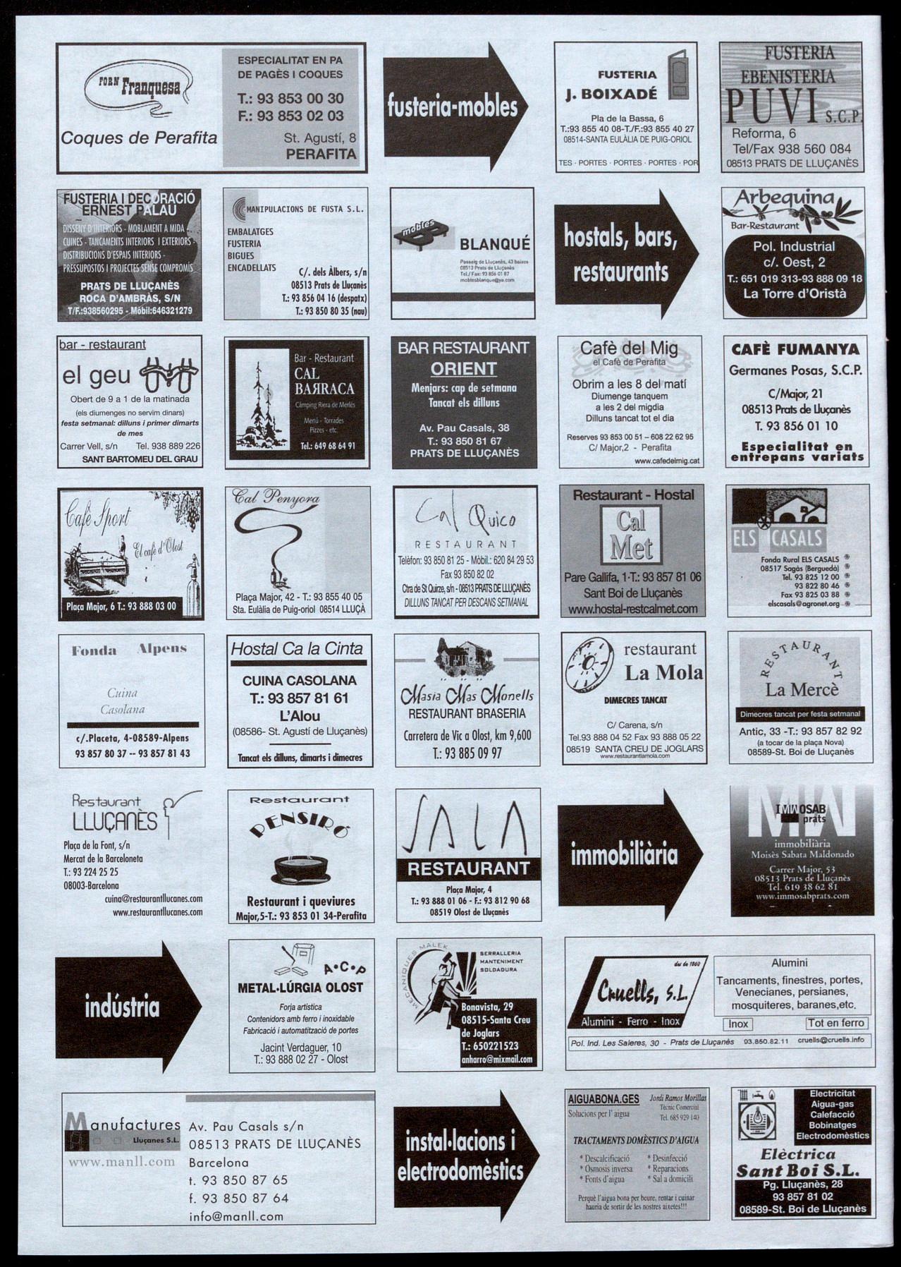 Informació facilitada per: Esteve Subirana, Llu¡à; Lluís Muntanyà, Peralita; Pere Bruch, Olost; Josep M. Muntanyà, Prats de Llu¡anès; Pere Cors, Oristà; Eduard Selva, SantBoi de Llu¡anès; David Morera, Sant feliu Sasserra; Lluís Corominas, Sant Bartomeu del Grau