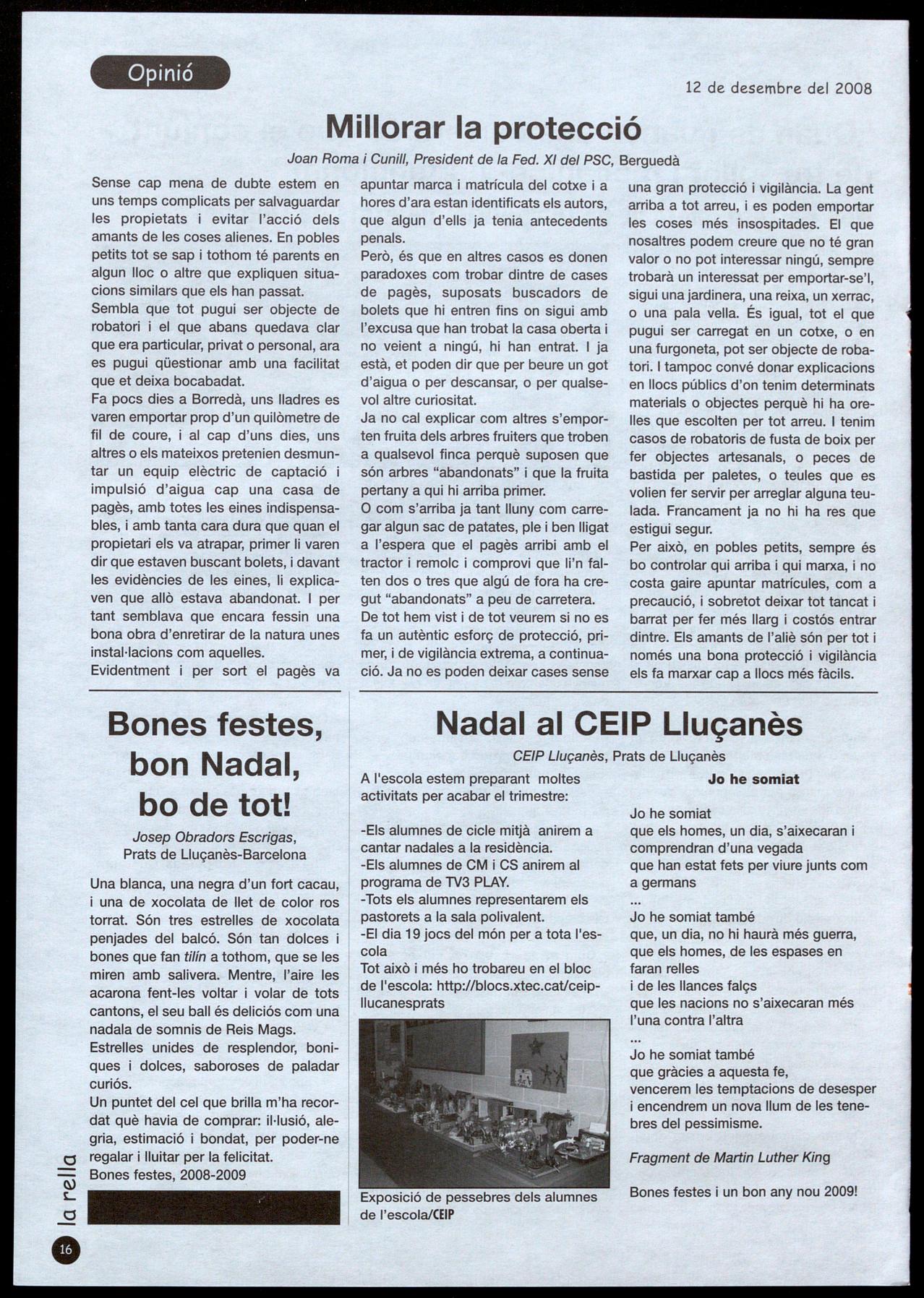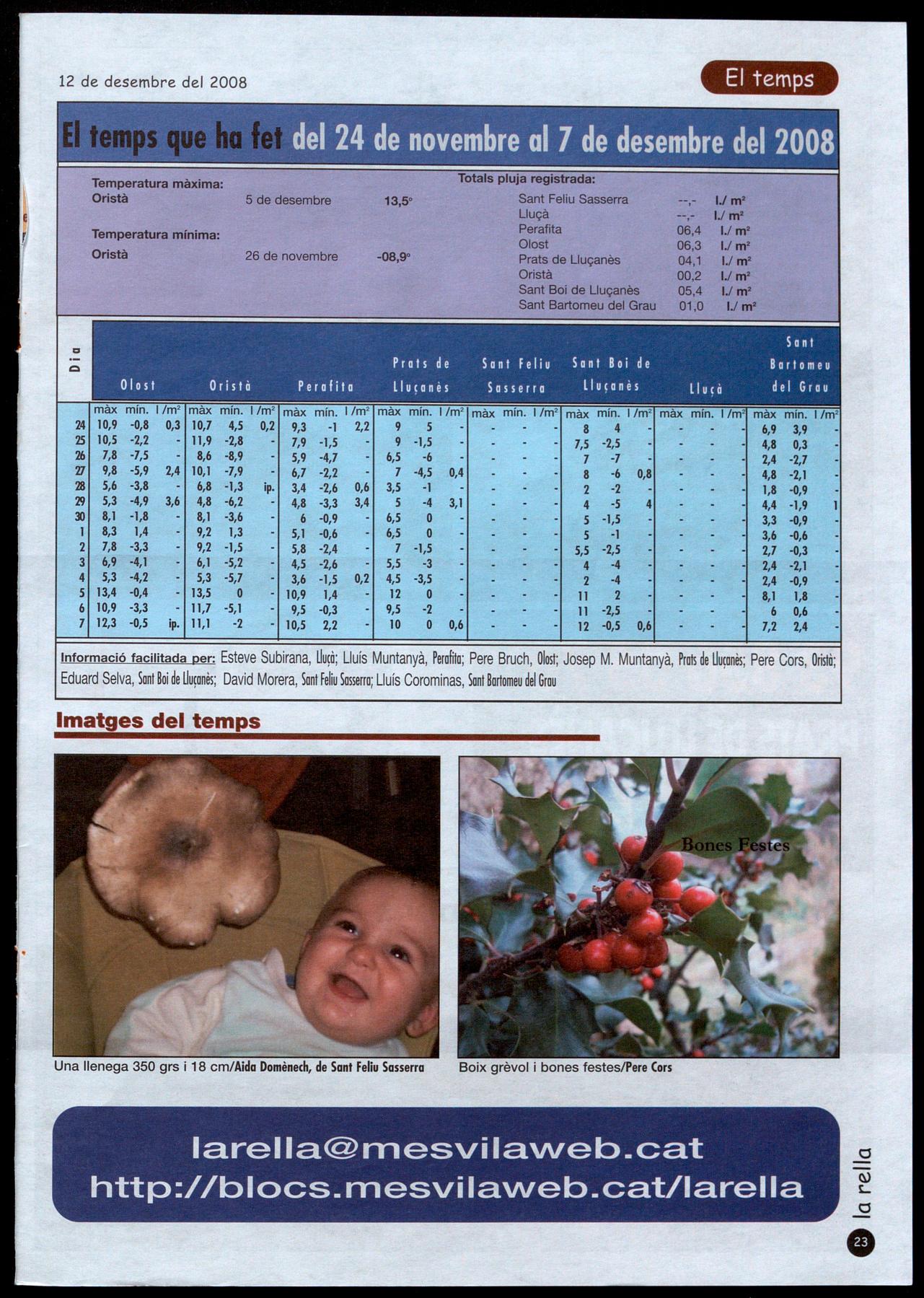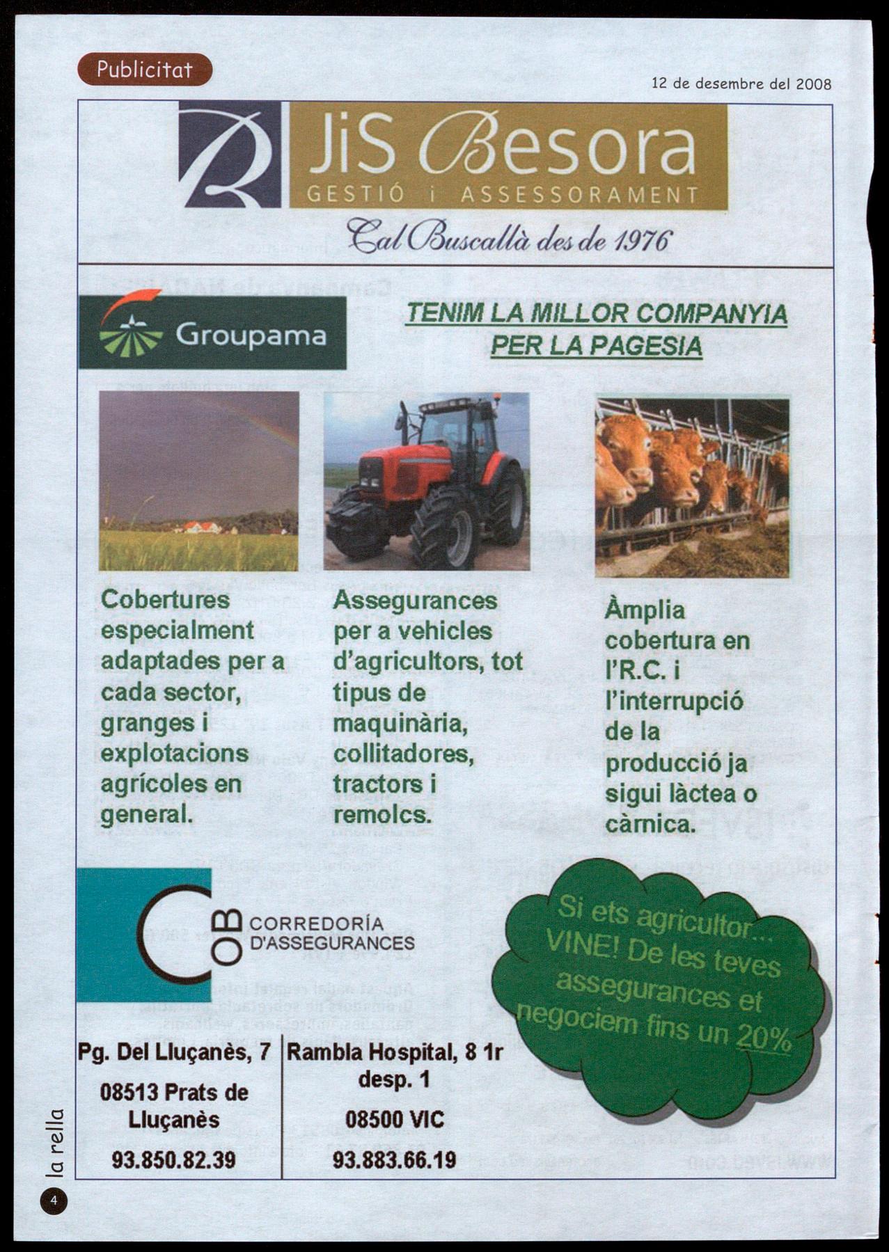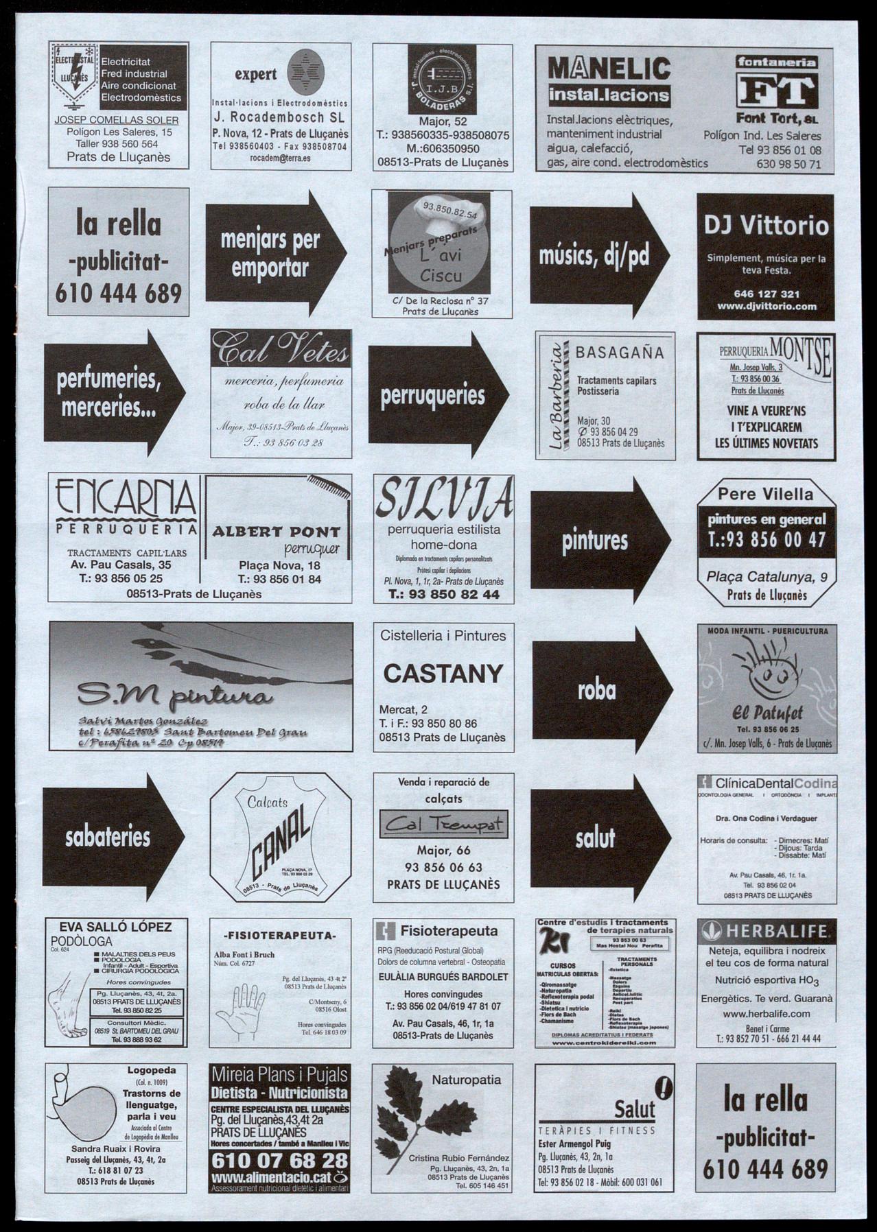 Informació facilitada per: Esteve Subirana, Llu¡à; Lluís Muntanyà, Peralita; Pere Bruch, Olost; Josep M. Muntanyà, Prats de Llu¡anès; Pere Cors, Oristà; Eduard Selva, SantBoi de Llu¡anès; David Morera, Sant feliu Sasserra; Lluís Corominas, Sant Bartomeu del Grau