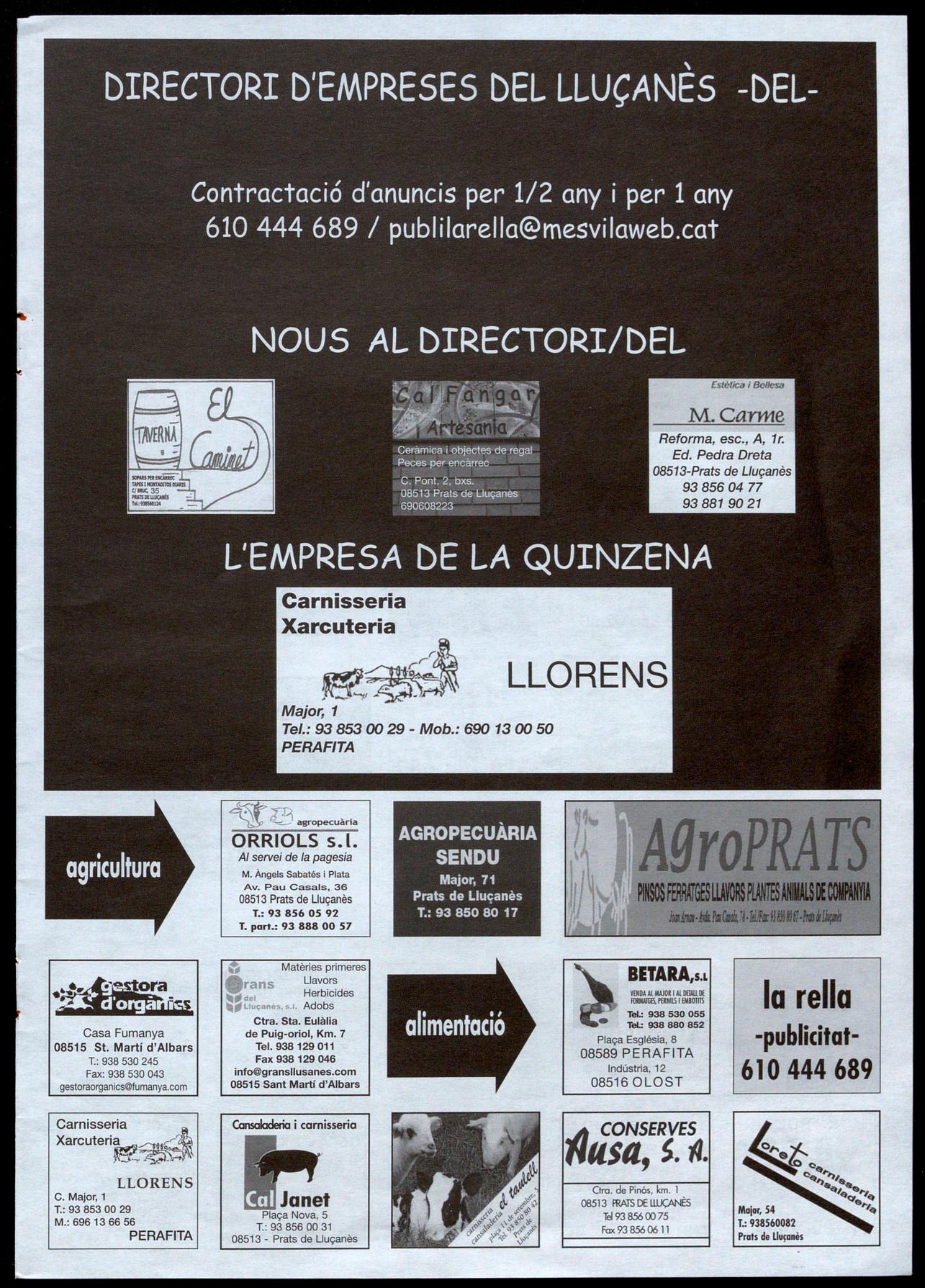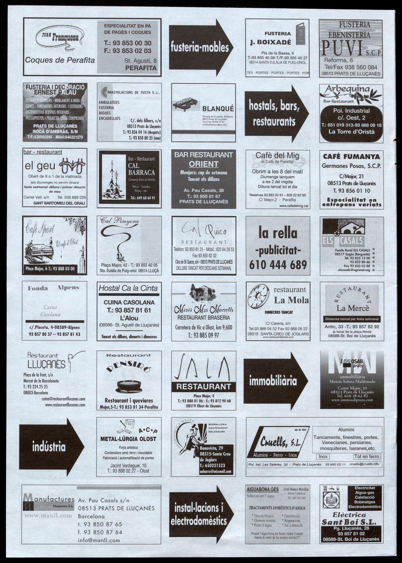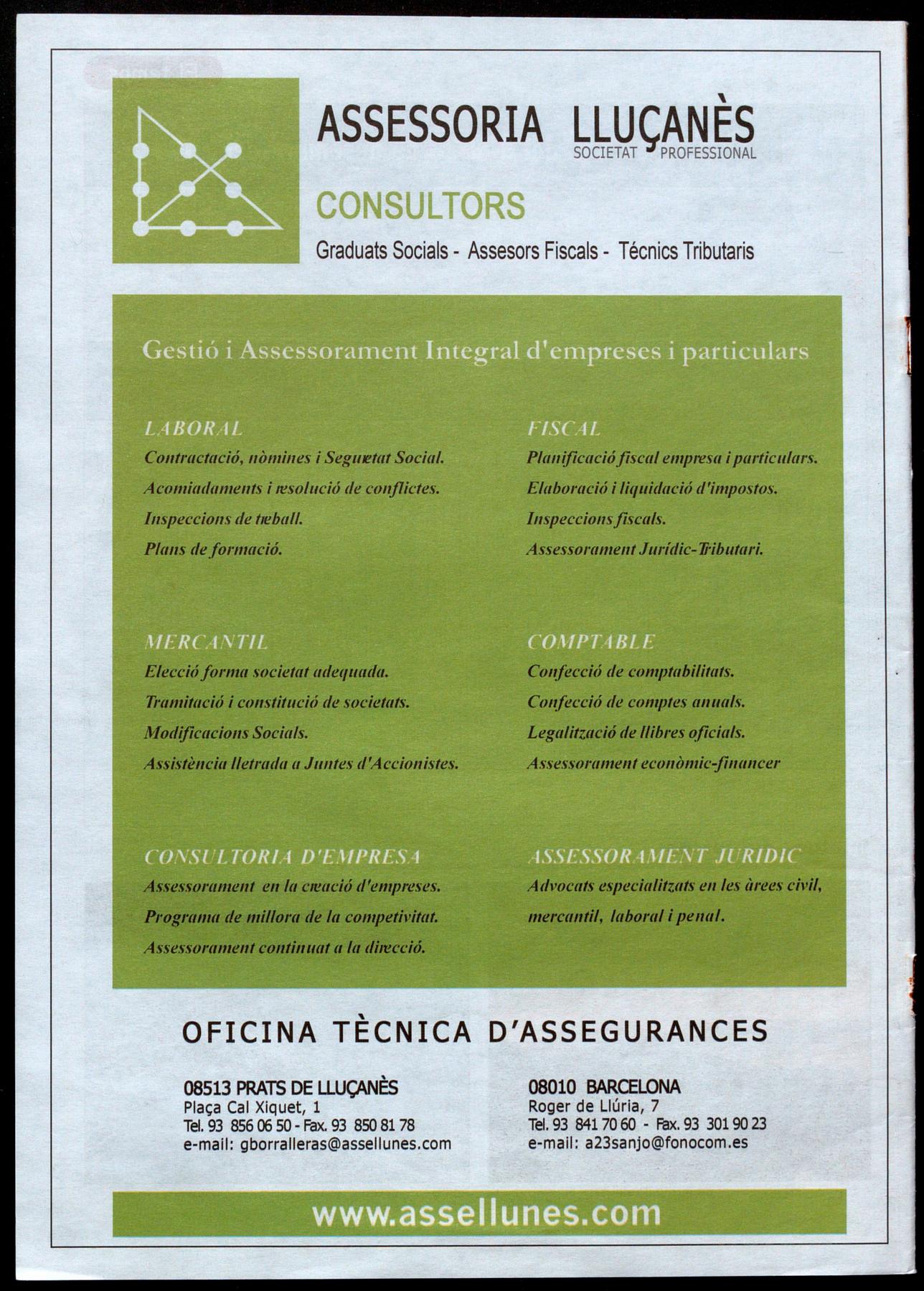 Av. Pau Casals, 46, 1 r. 1 a. Tel. 93 856 02 04 08513 PRATS DE llUÇANÈS