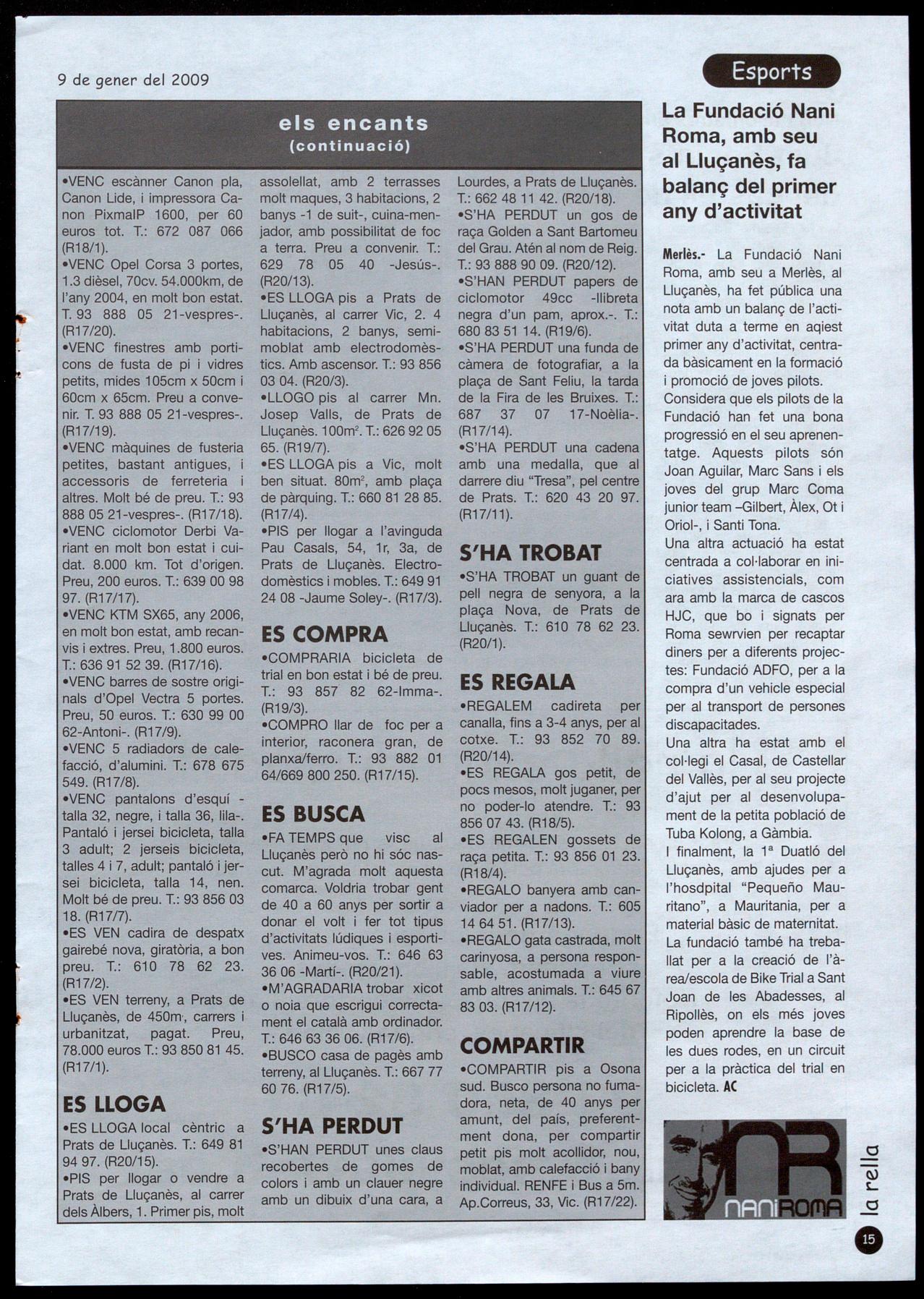 ·FA TEMPS que visc al Lluçanès però no hi sóc nascut. M'agrada molt aquesta comarca. Voldria trobar gent de 40 a 60 anys per sortir a donar el volt fer tot tipus d'activitats lúdiques esportives. Animeu-vos. T.: 646 63 3606 -Martí-. (R20/21).