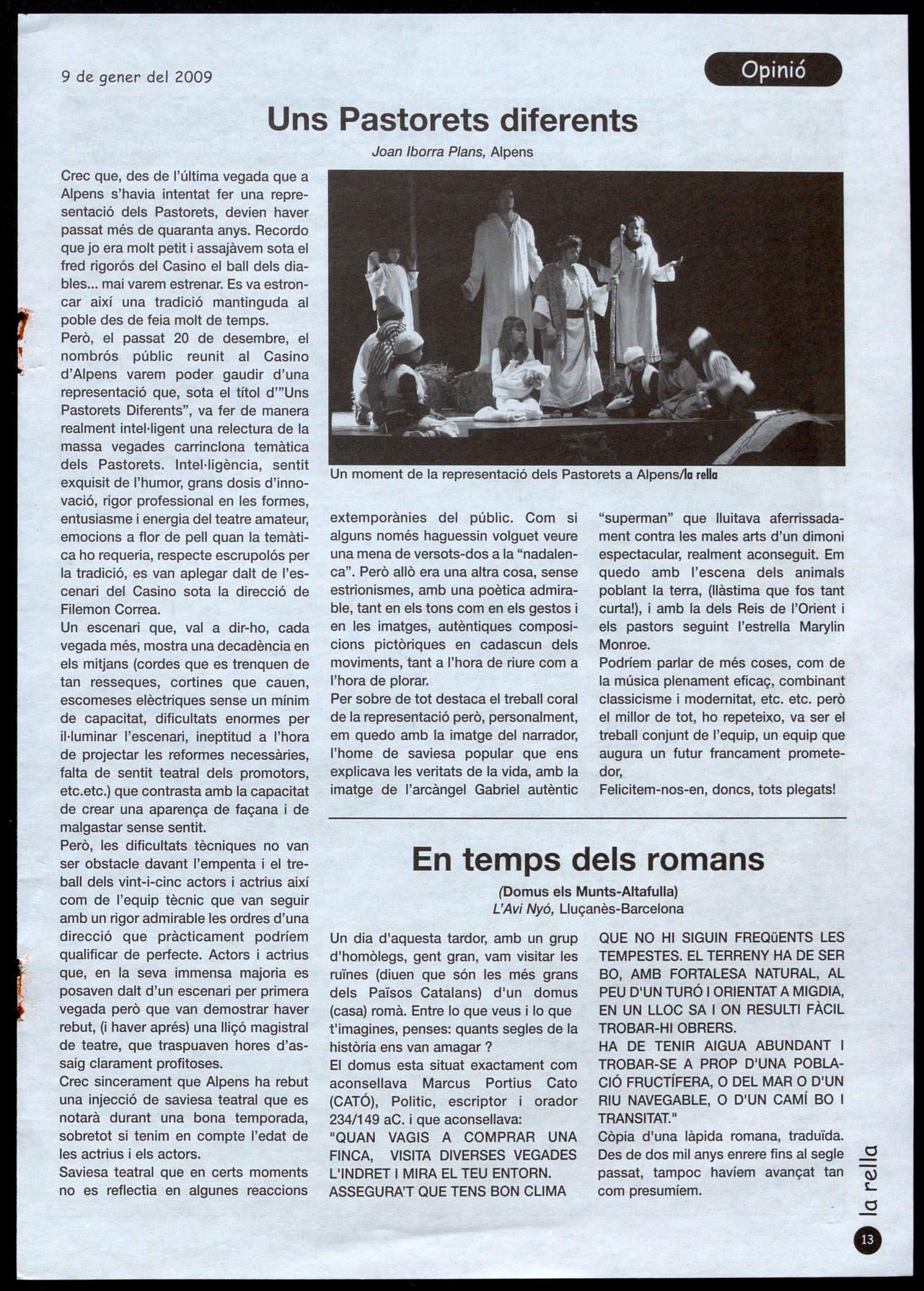 aquesta versió dels pastorets en la que també hi van participar diversos nens i nenes del municipi. L'acte va ser organitzat per la comissió de festes de Santa Cecília de Voltregà i va comptar amb la col·laboració de l'ajuntament de Lluçà. MS