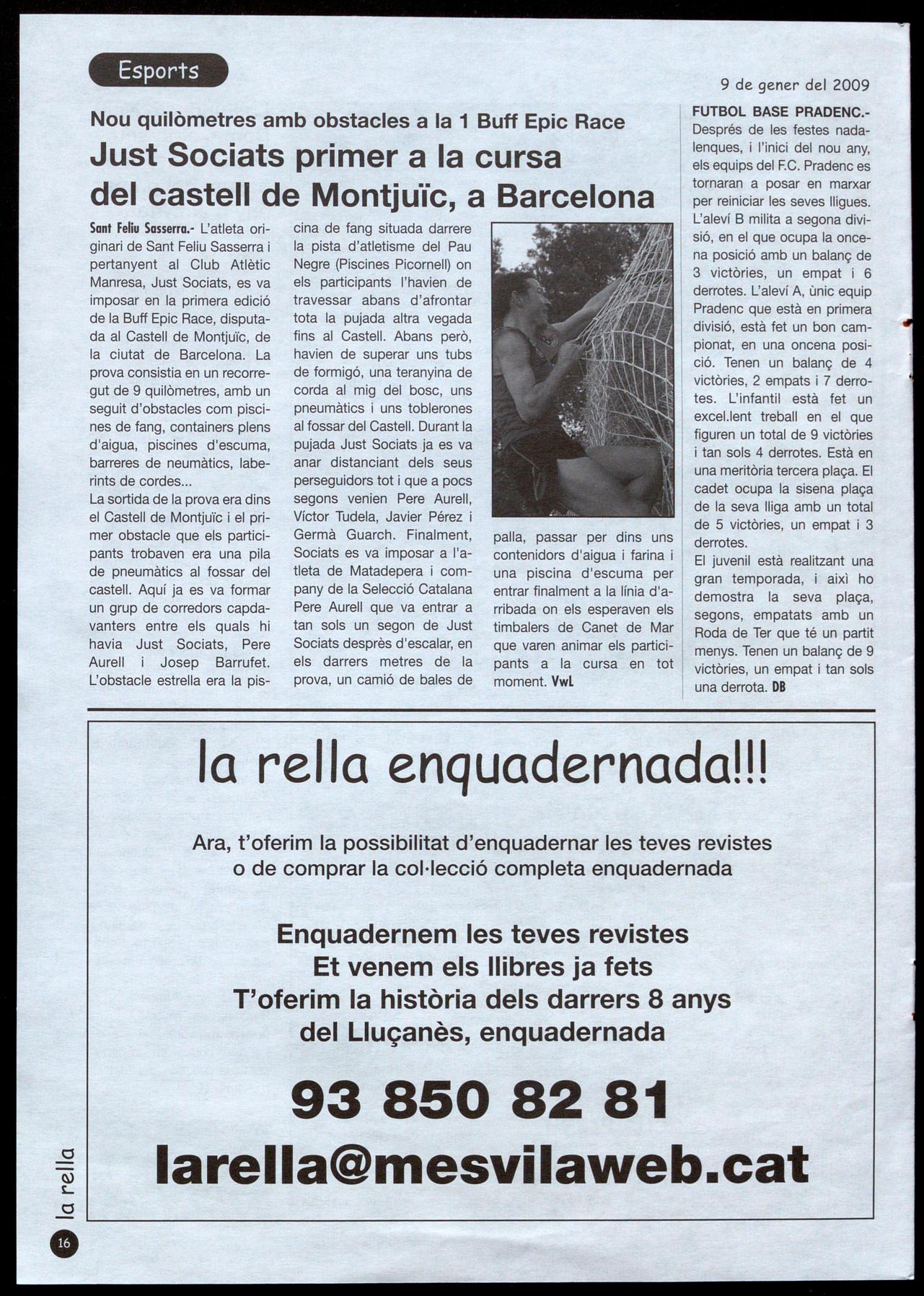 Sant Feliu Sasserra.- L'atleta originari de Sant Feliu Sasserra pertanyent al Club Atlètic Manresa, Just Sociats, es va imposar en la primera edició de la Buff Epic Race, disputada al Castell de Montjuïc, de la ciutat de Barcelona. La prova consistia en un recorregut de 9 quilòmetres, amb un seguit d'obstacles com piscines de fang, containers plens d'aigua, piscines d'escuma, barreres de neumàtics, laberints de cordes
