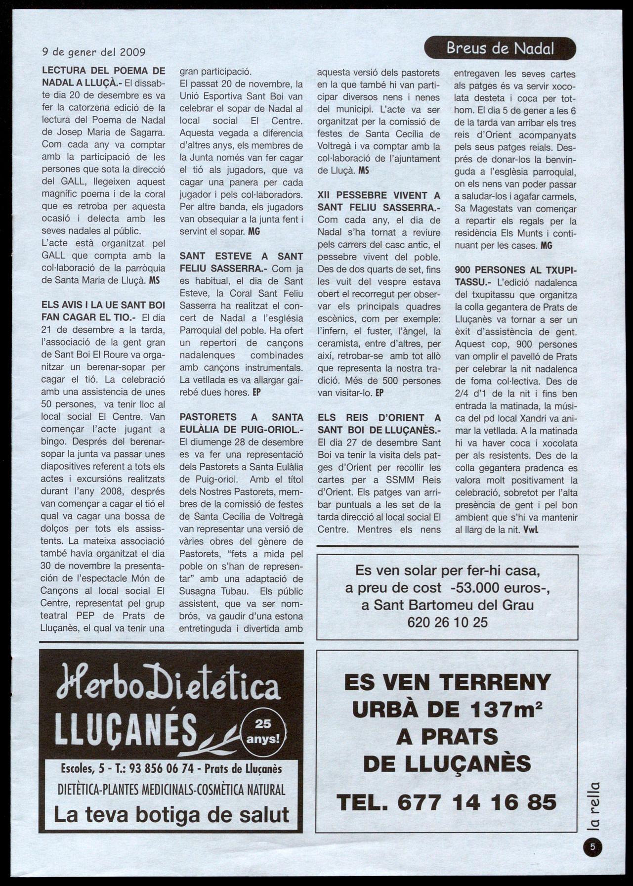 seves nadales al públic. L'acte està organitzat pel GALL que compta amb la col·laboració de la parròquia de Santa Maria de Lluçà. MS