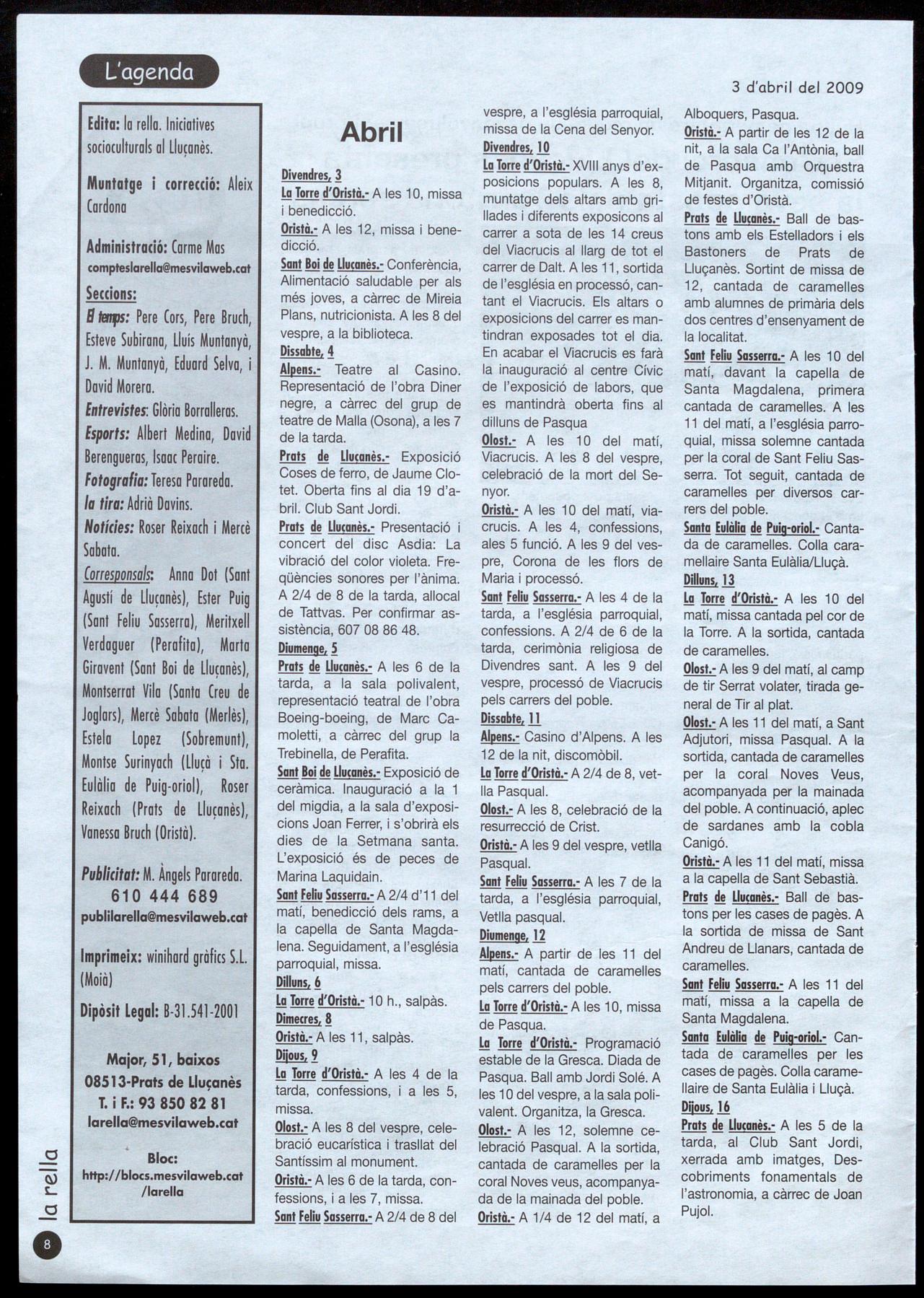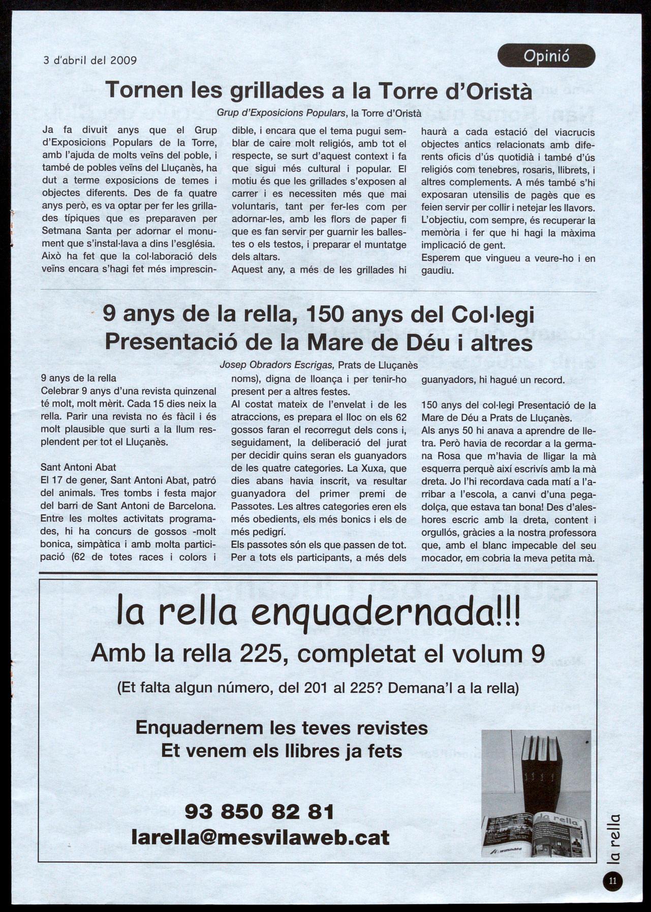 Celebrar 9 anys d'una revista quinzenal té molt, molt mèrit. Cada 15 dies neix la rella. Parir una revista no és fàcil i és molt plausible que surti a la llum resplendent per tot el Lluçanès.