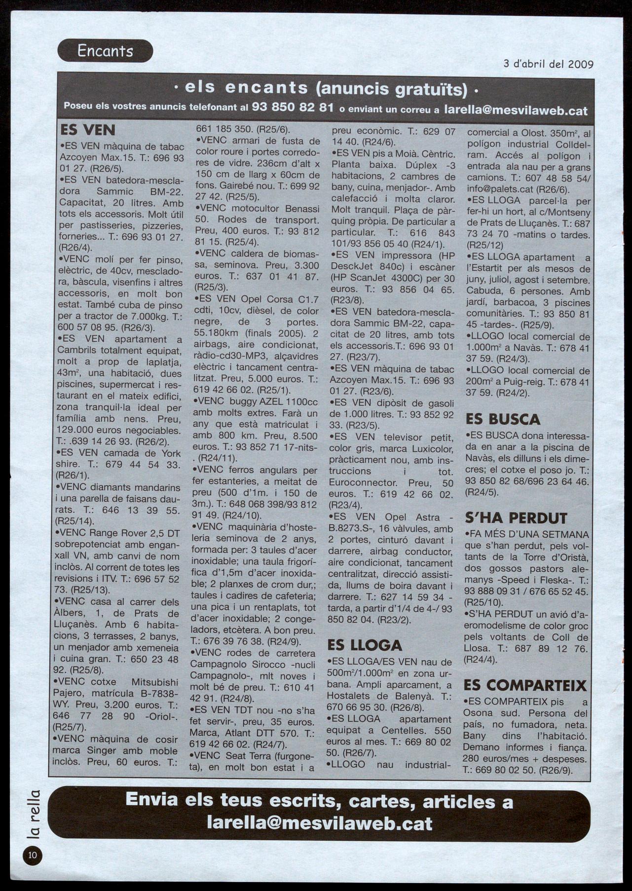 -ES LLOGNES VEN nau de 500m2/1.000m2 en zona urbana. Ampli aparcament, a Hostalets de Balenyà. T.: 670 66 95 30. (R26/8). -ES LLOGA apartament equipat a Centelles. 550 euros al mes. T.: 669 80 02 50. (R26/7).