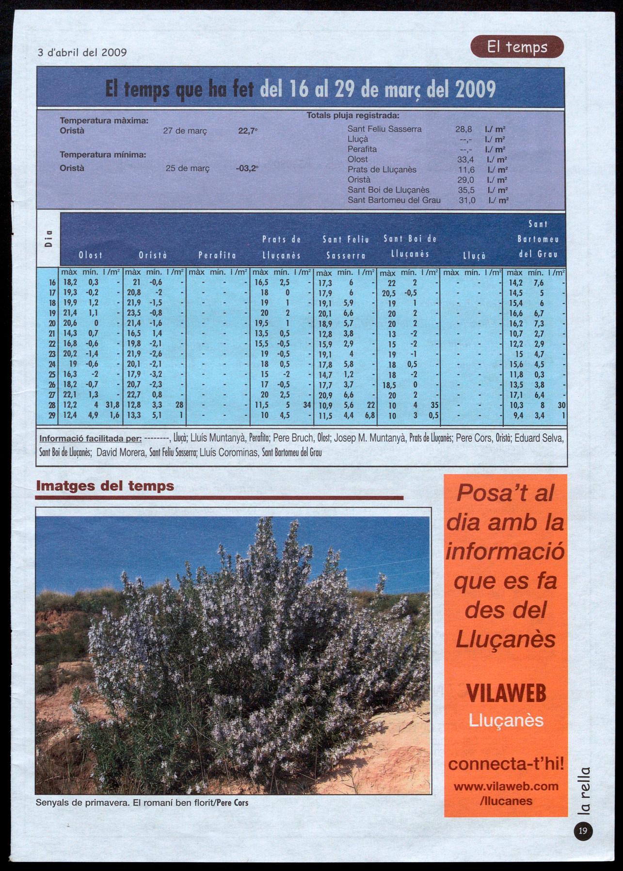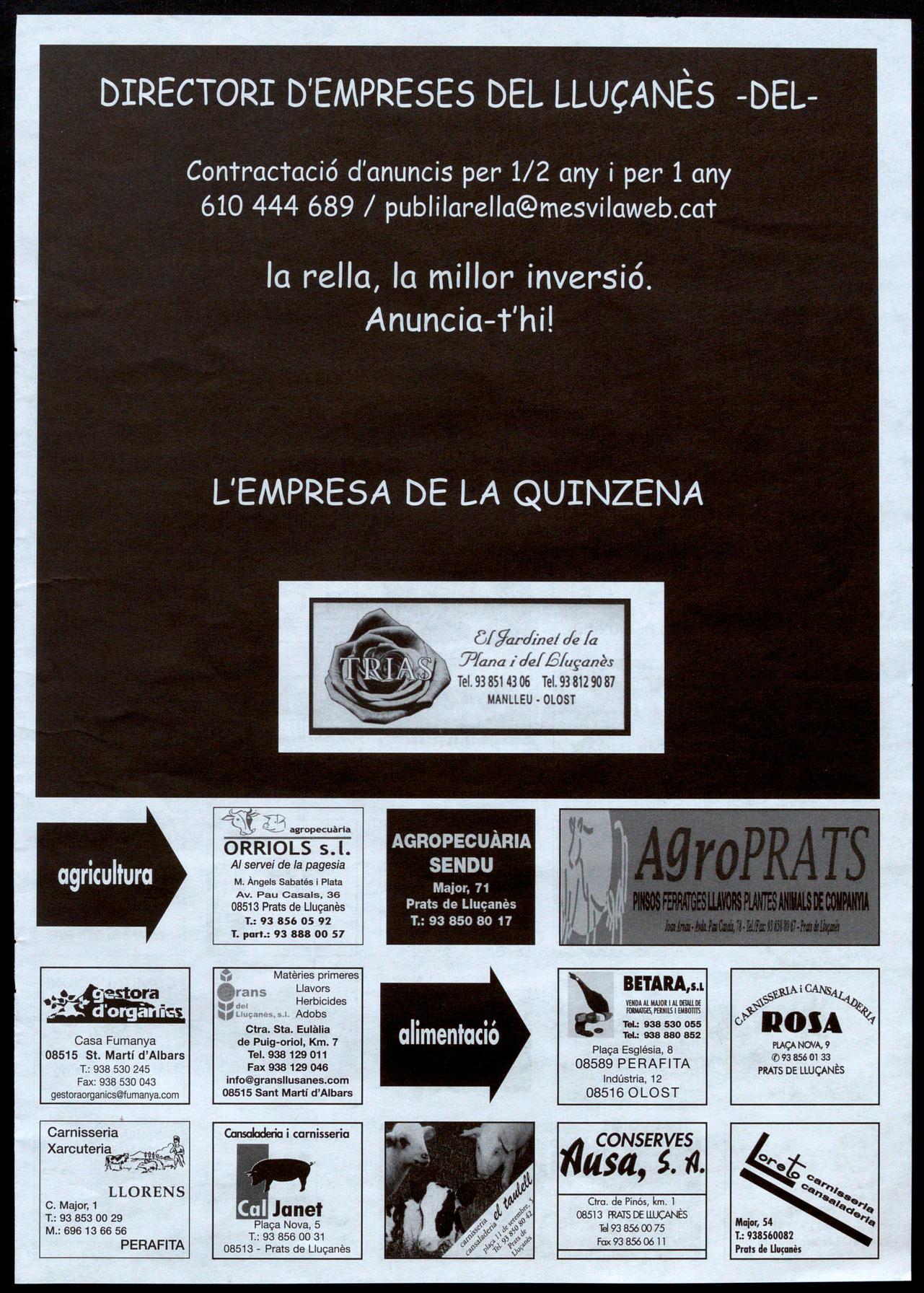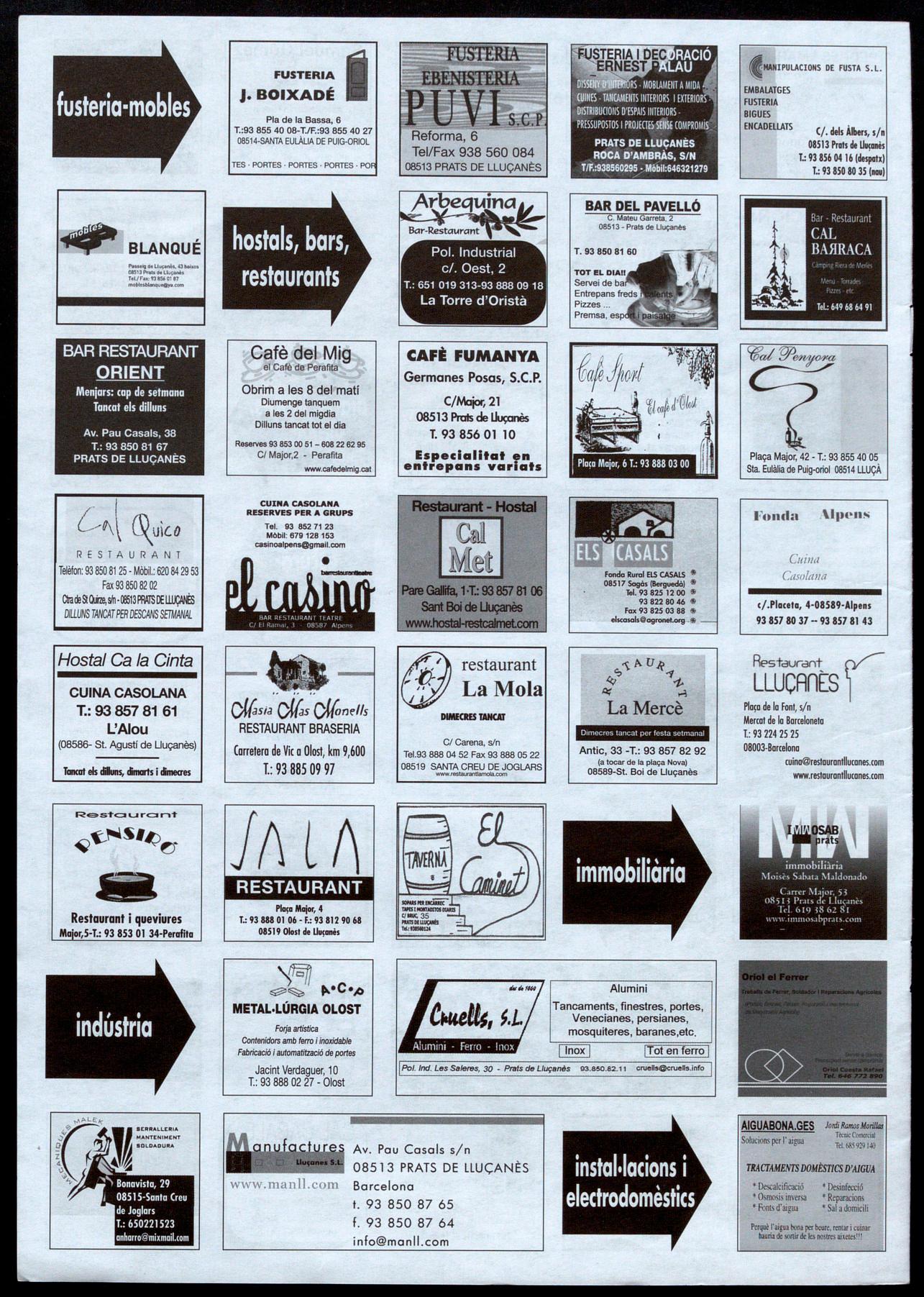 Informació facilitada per: m, Uu¡à; Lluís Muntanyà, Perafita; Pere Bruch, Olost; Josep M. Muntanyà, Prats �e Uu¡onès; Pere Cors, Oristà; Eduard Selva, Sant Boi �eUu¡onès; David Morera, Sant FeliuSasserra; Lluís Corominas, Sant Bartomeu �el Grau