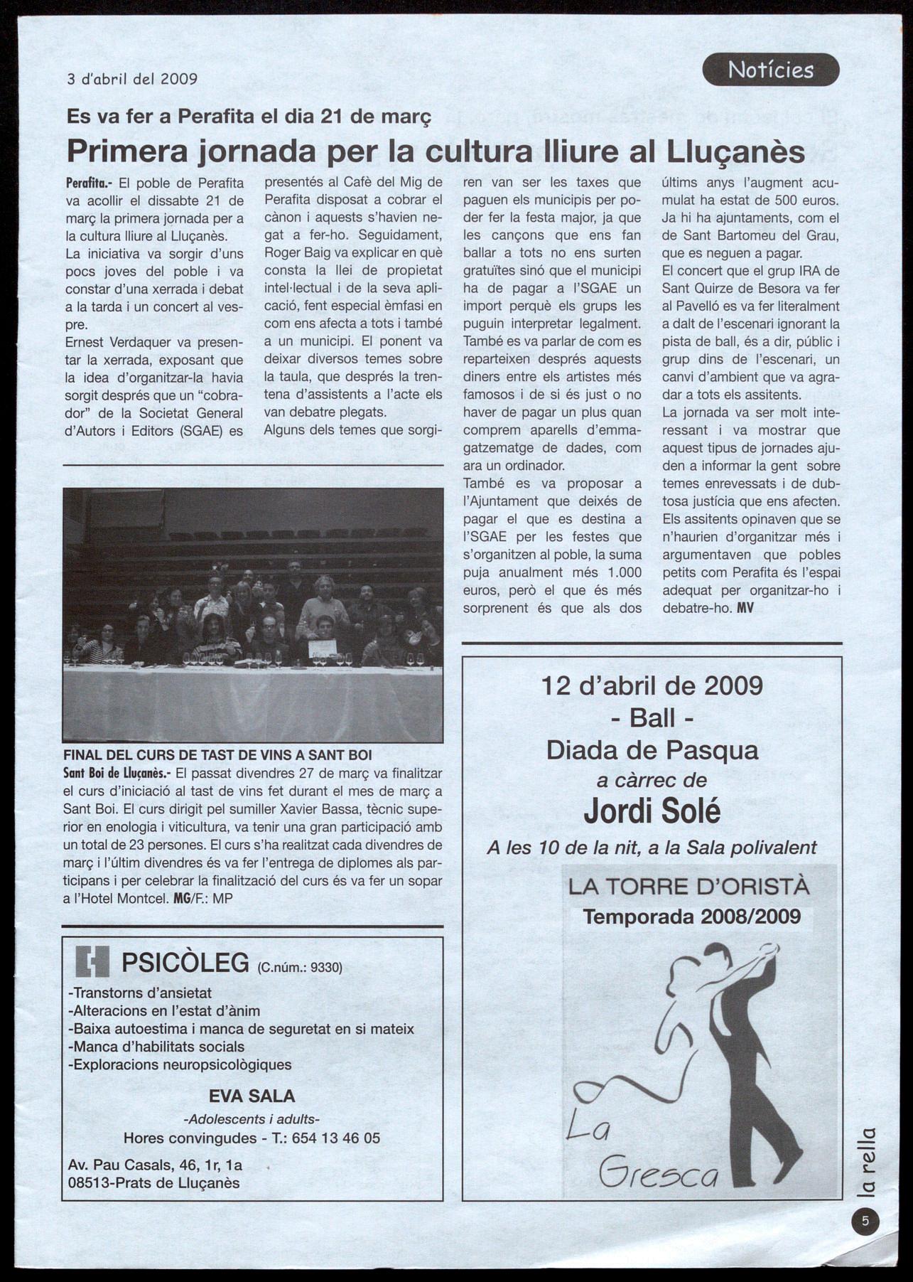 Perafita.- El poble de Perafita va acollir el dissabte 21 de març la primera jornada per a la cultura lliure al Lluçanès.