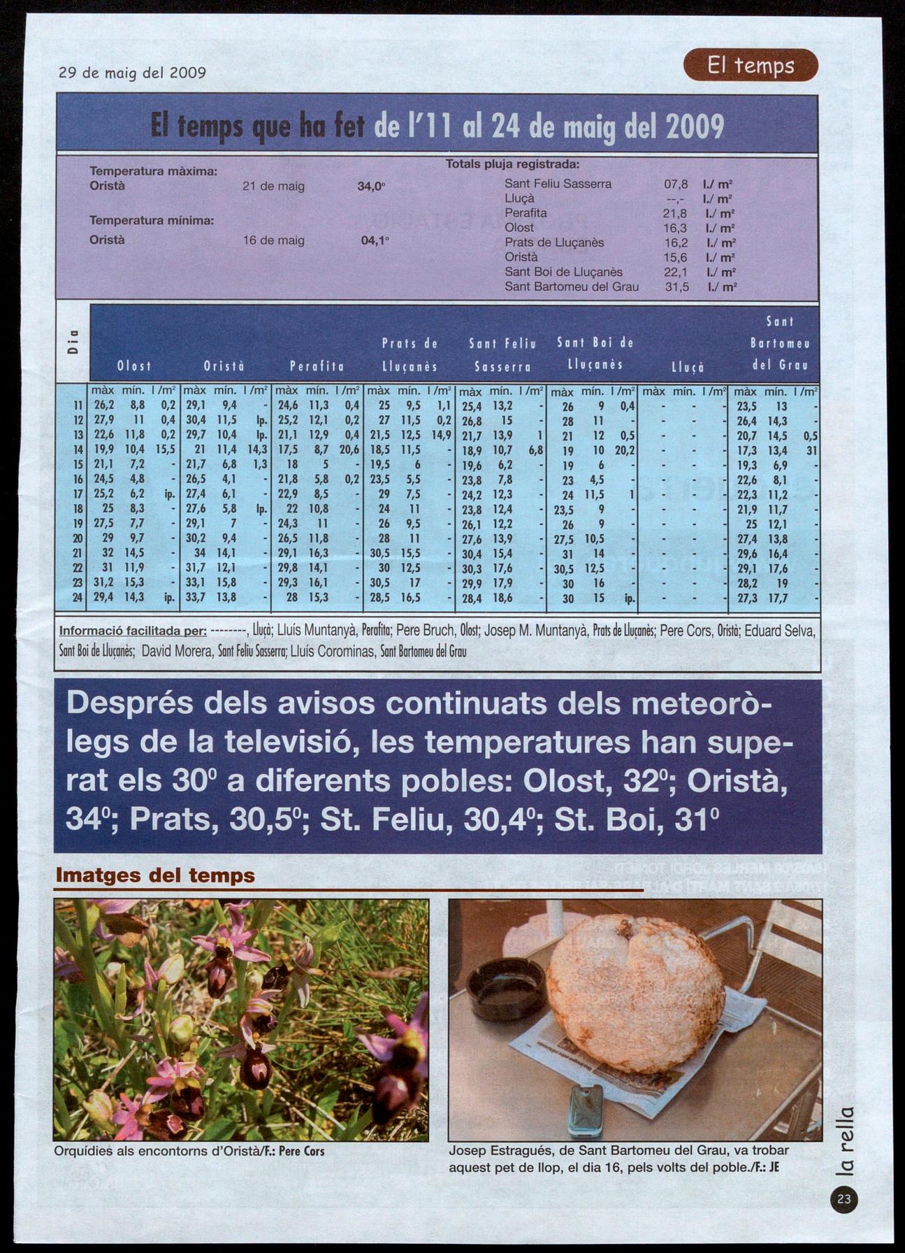 Com és habitual es va celebrar la revetlla de Sant Isidre a Lluçà. Aquest any degut al temps, no es va poder fer el foc al cim del castell de Lluçà, sinó que la festa es va fer a l'Estudi. El dia 15, els pagesos van anar a dinar tots plegats per celebrar el dia del seu patró. MS