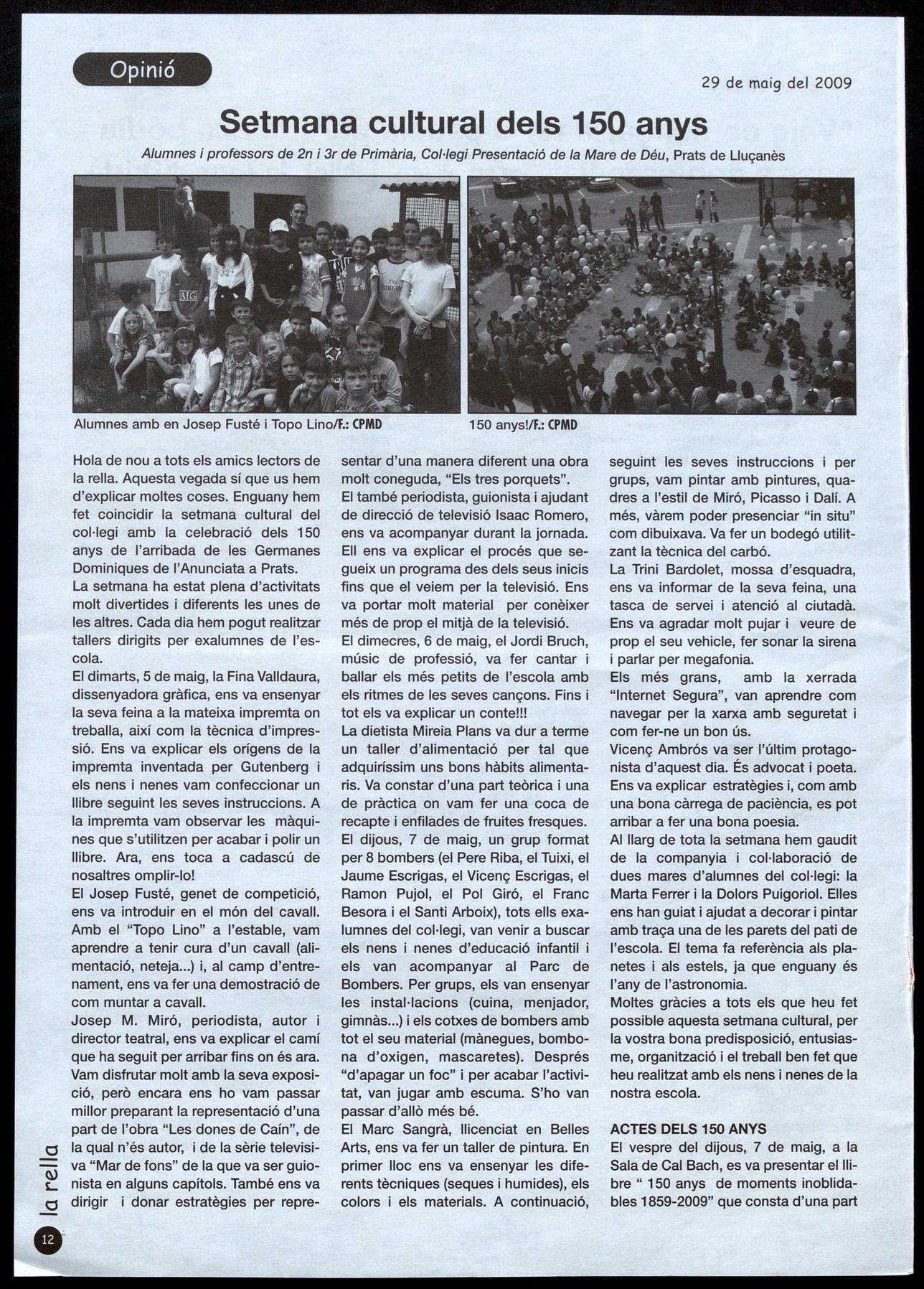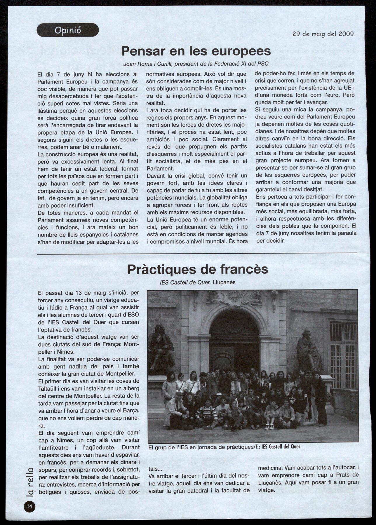 Lluçanès.- Durant tota aquesta setmana un grup d'alumnes del CEIP Lluçanès, de Prats de Lluçanès, participarà a Madrid en una de les estades concedides des del Ministerio de Educación dins el programa Escuelas viajeras. La modalitat adjudicada suposa una estada amb totes les despeses pagades per a quinze alumnes més un tutor acompanyant.
