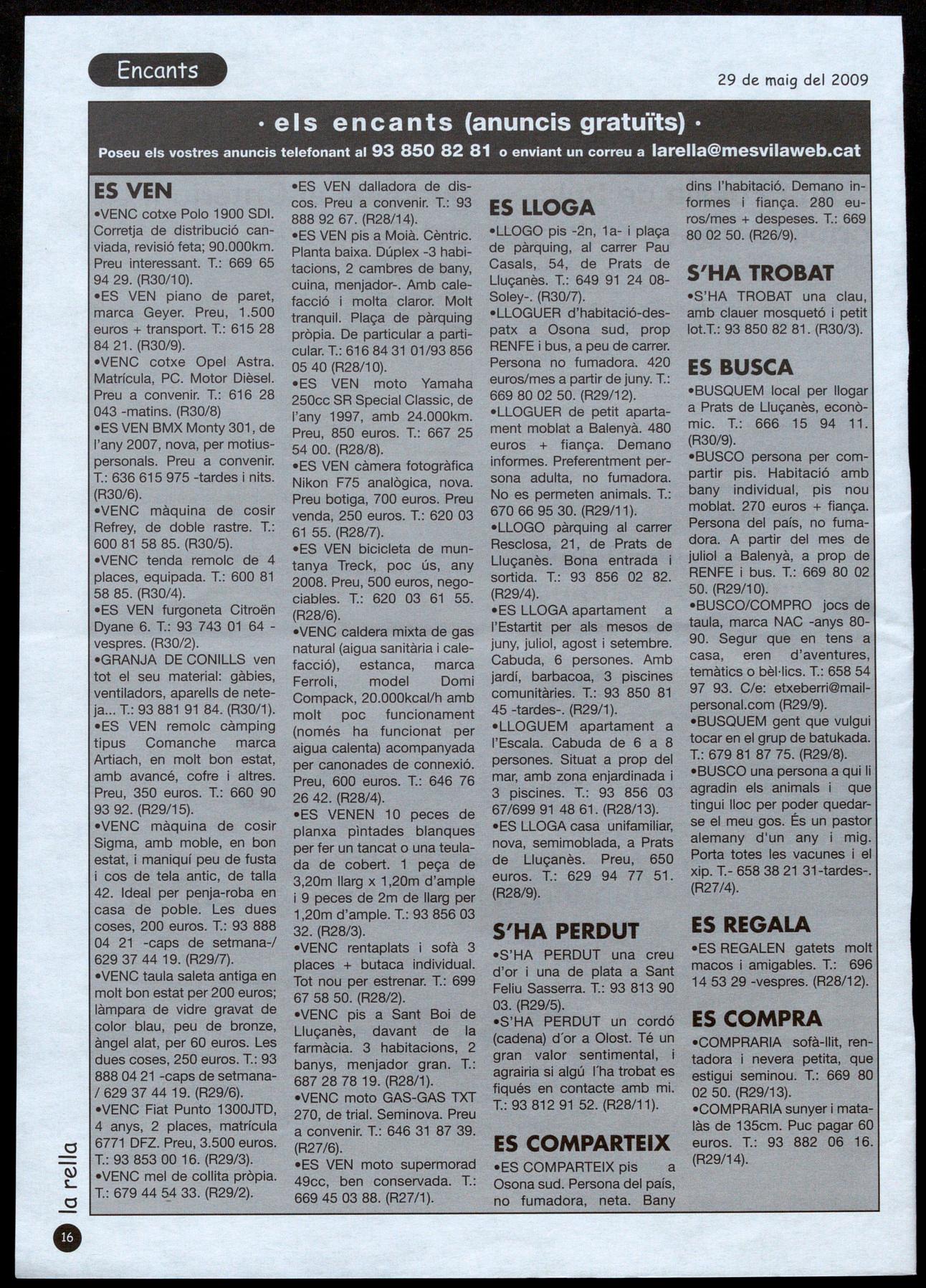 Poseu els vostres anuncis telefonant al 93 850 82 81 o enviant un correu a larella@mesvilaweb.cat
