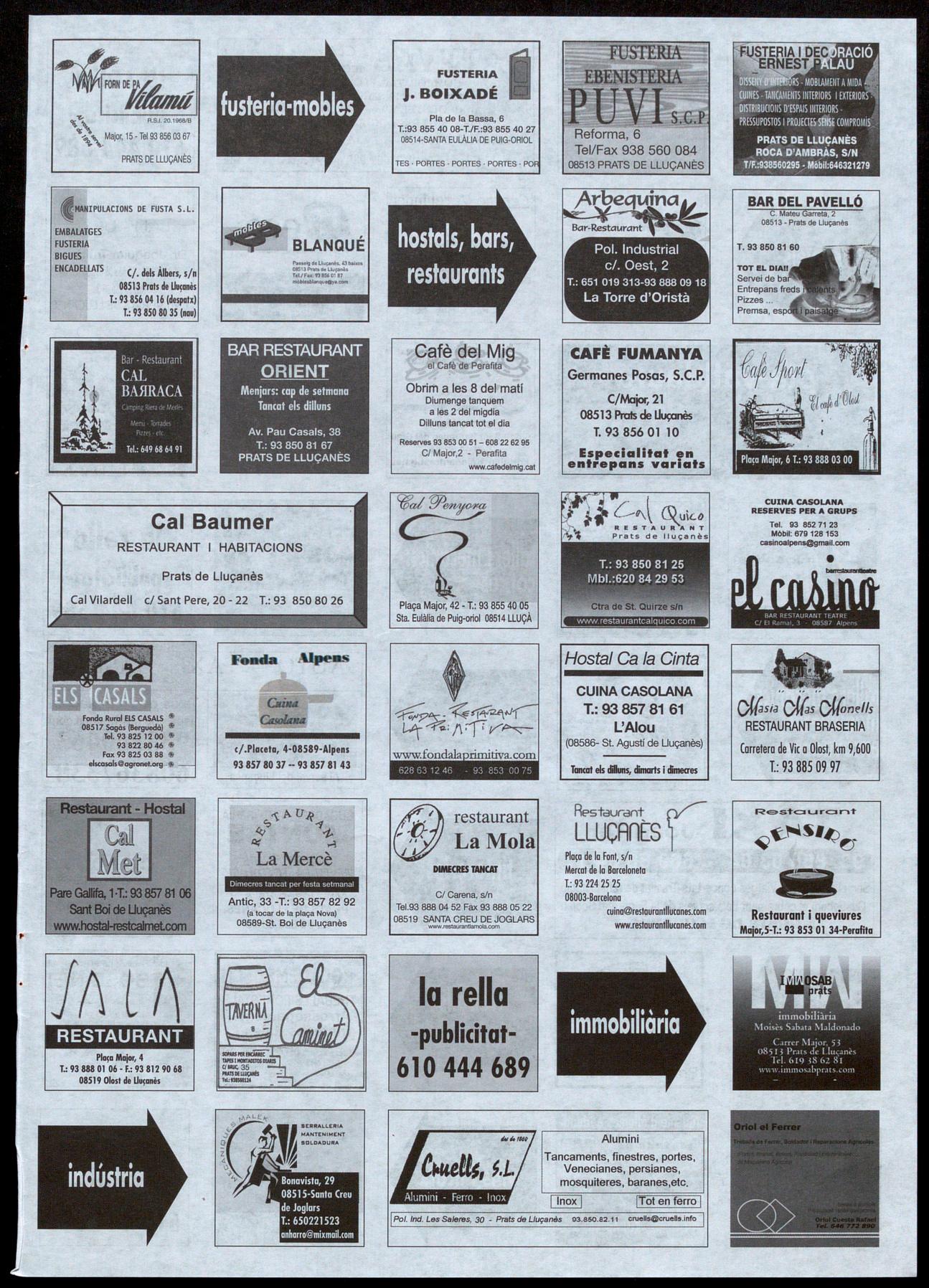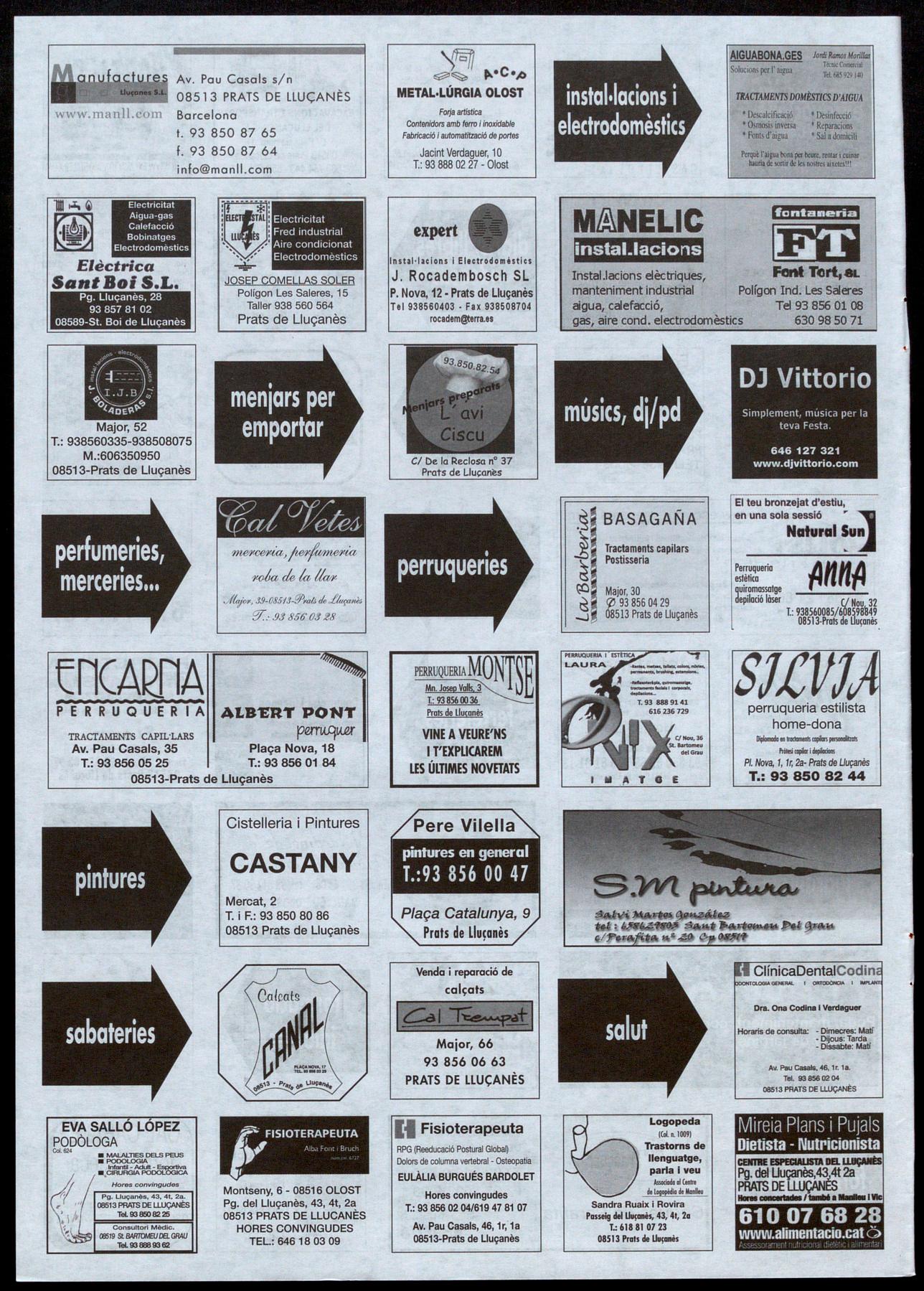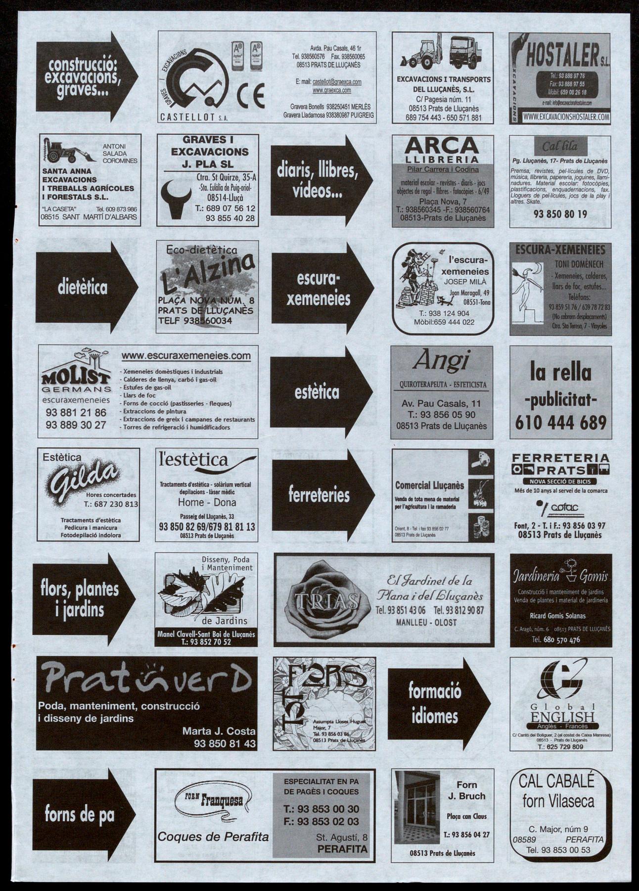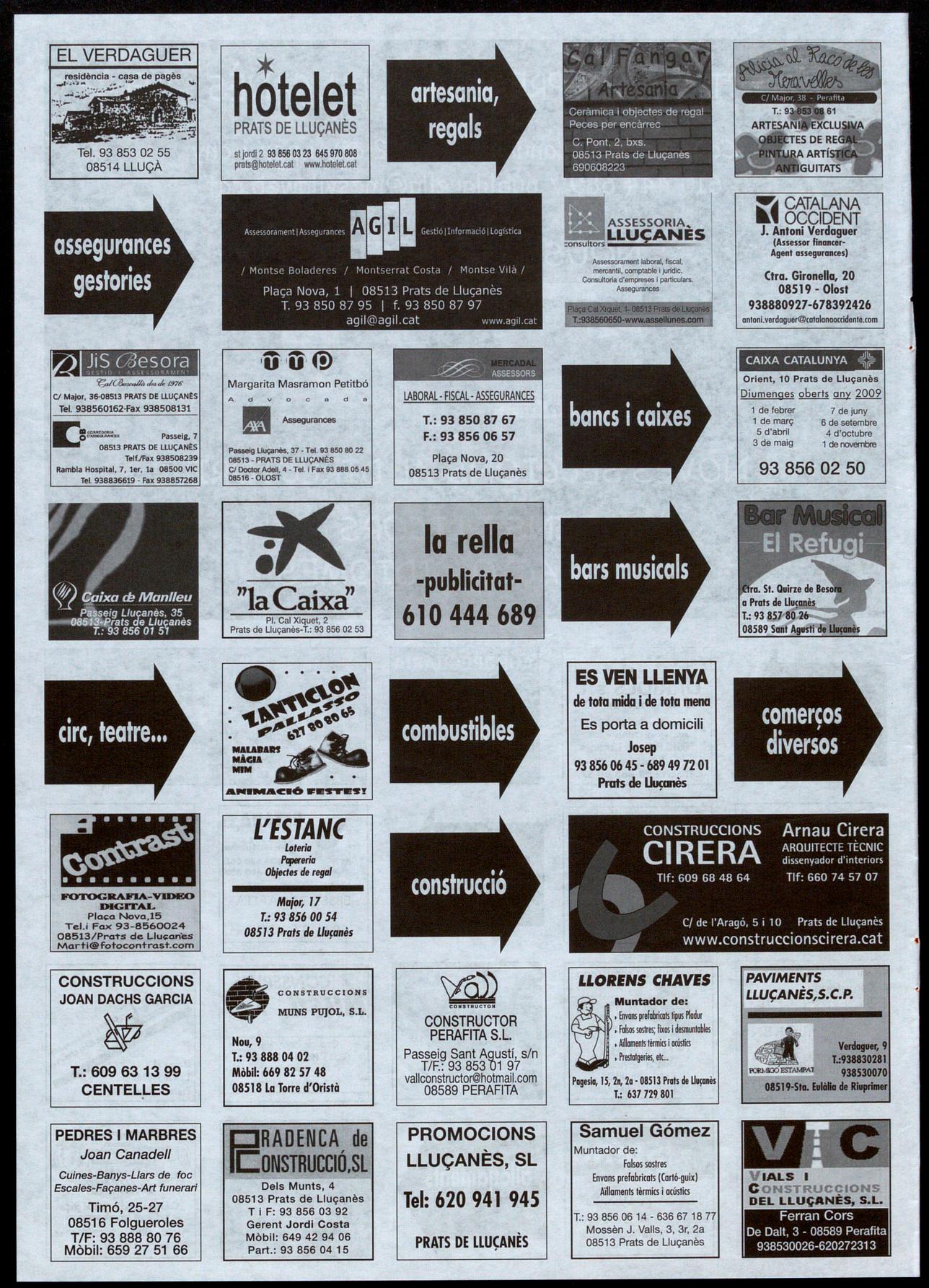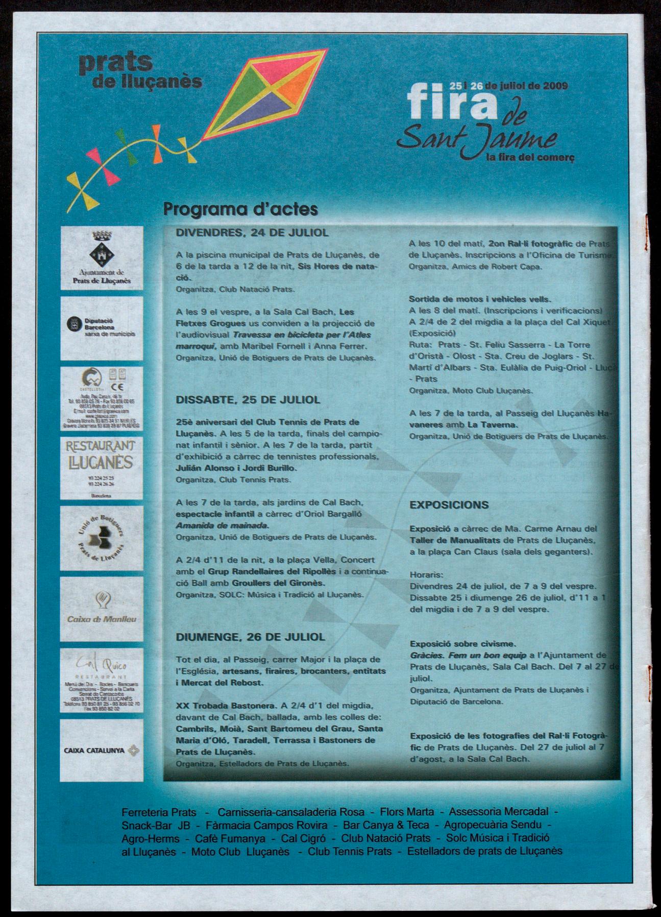 Comissió de festes, Prats de Lluçanès encesos amb la col-laboració dels sempre mítics aquesta set! La ballada de gegants i el ball del Contrapàs no haguessin estat possibles sense l'associació Dansa i Tradició i el Grup Orquestral de Prats de Lluçanès i el sempre multitudinari passacarrers no seria el mateix sense la Txaranga Tximiletak. La Comissió del Cross del Lluçanès va preparar un sempre competitiu Cross del Lluçanès. Els Carreters del Lluçanès i Amics dels Rucs van col-laborar, com cada any, amb el recorregut dels carros per tot el poble el Grup Curses dels Elois tenien a punt la Carrera dels Elois que malauradament es va veure truncada pel mal temps. La Xlla. Trobada de Puntaires va estar perfectament organitzada per l'Associació de Puntaires, el Club Bàsquet Prats va jugar un interessant partit, i desgraciadament el partit de Futbol a càrrec del FC Pradenc no es va poder realitzar. També hem d'agrair al Francisco Calvo que molt amablement va deixar canviar els artistes, a casa seva, el dia de la revetlla.