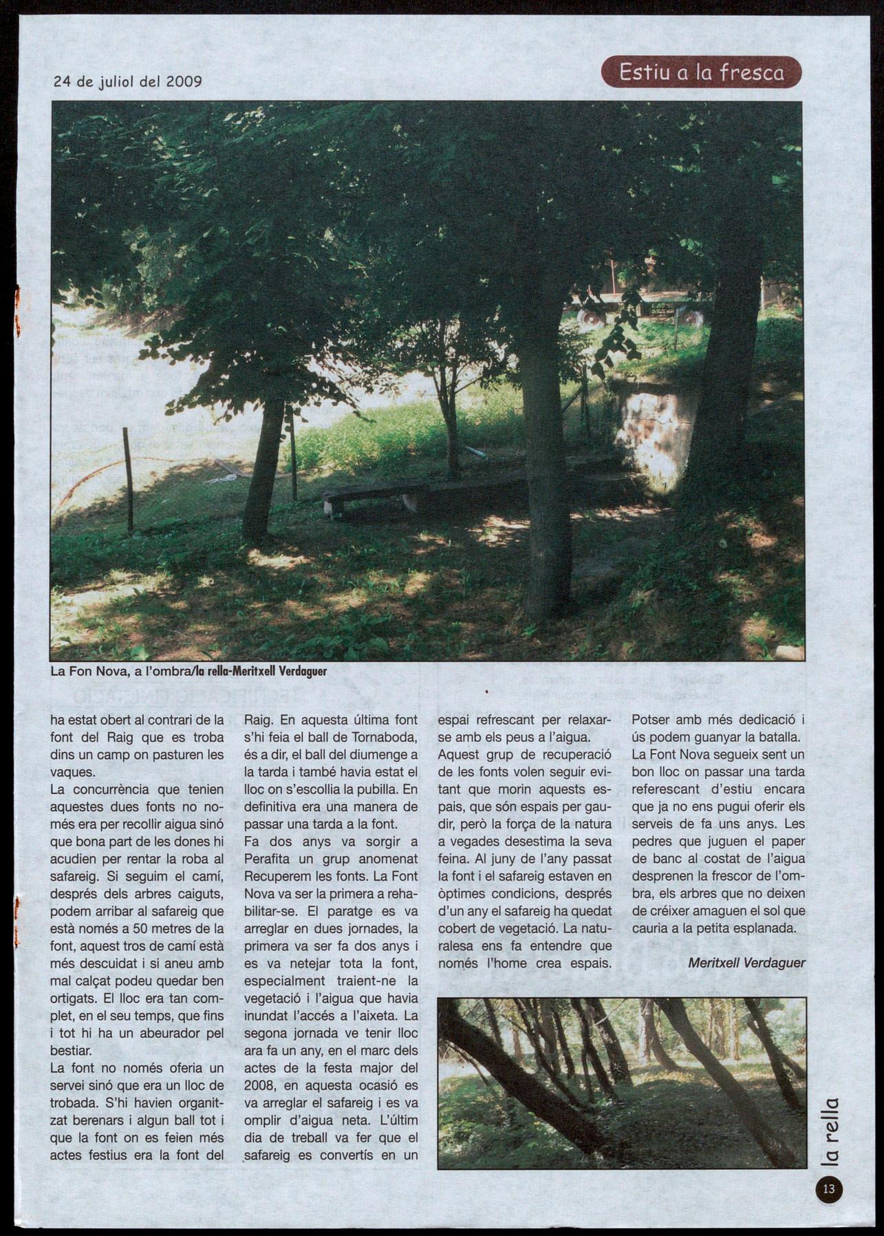 Pàgines centrals en color per viure l'estiu a la comarca. En aquest número, la Font Nova, de Perafita