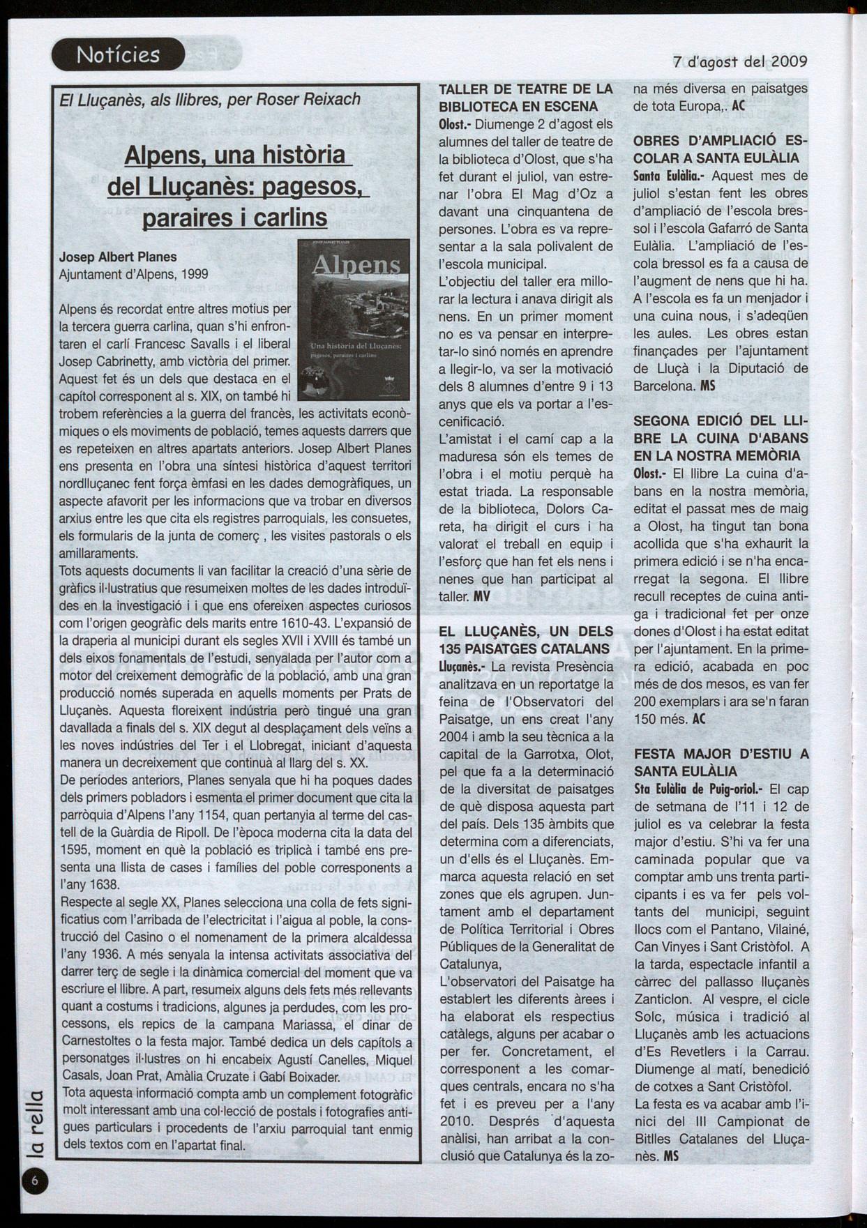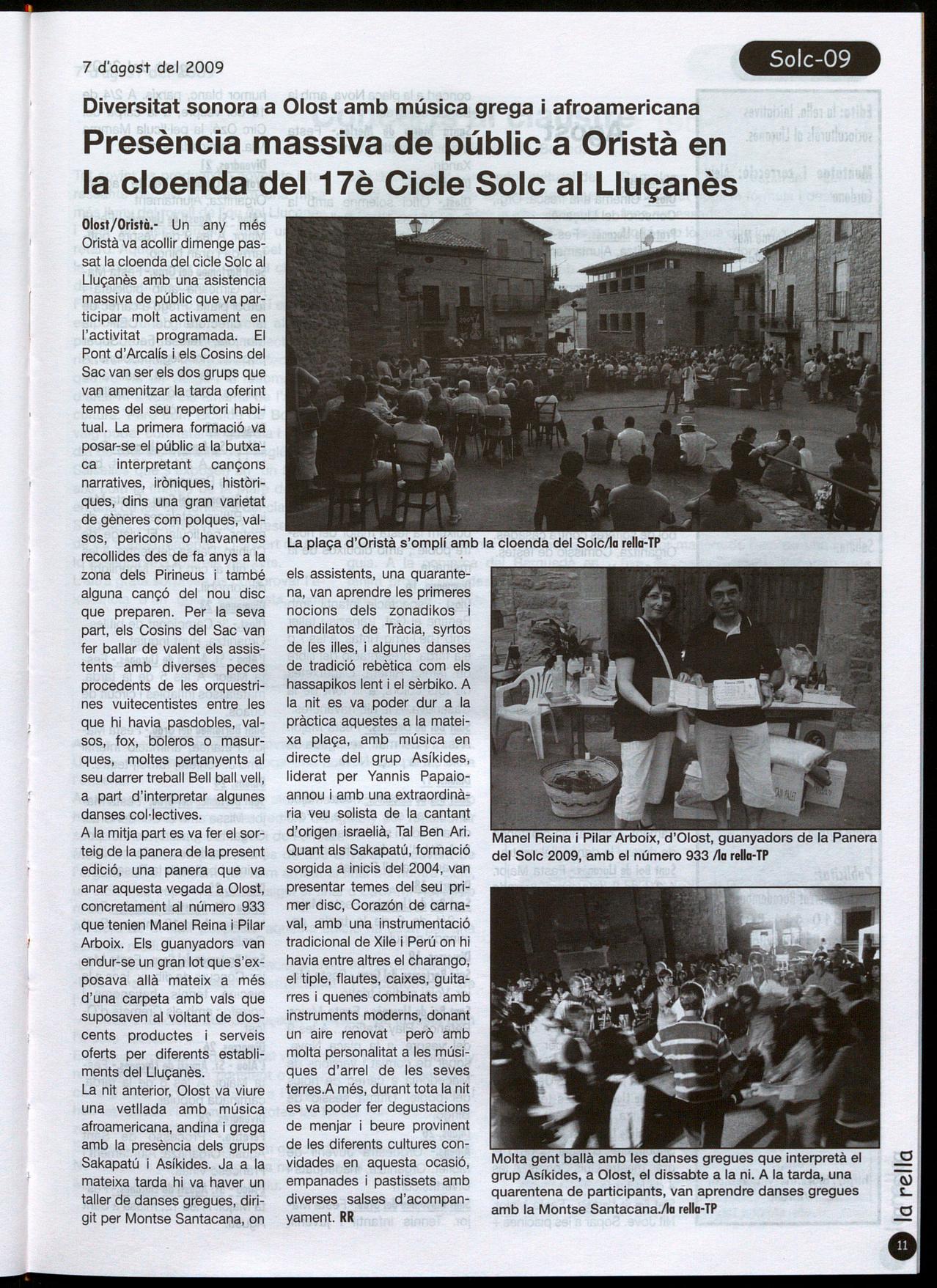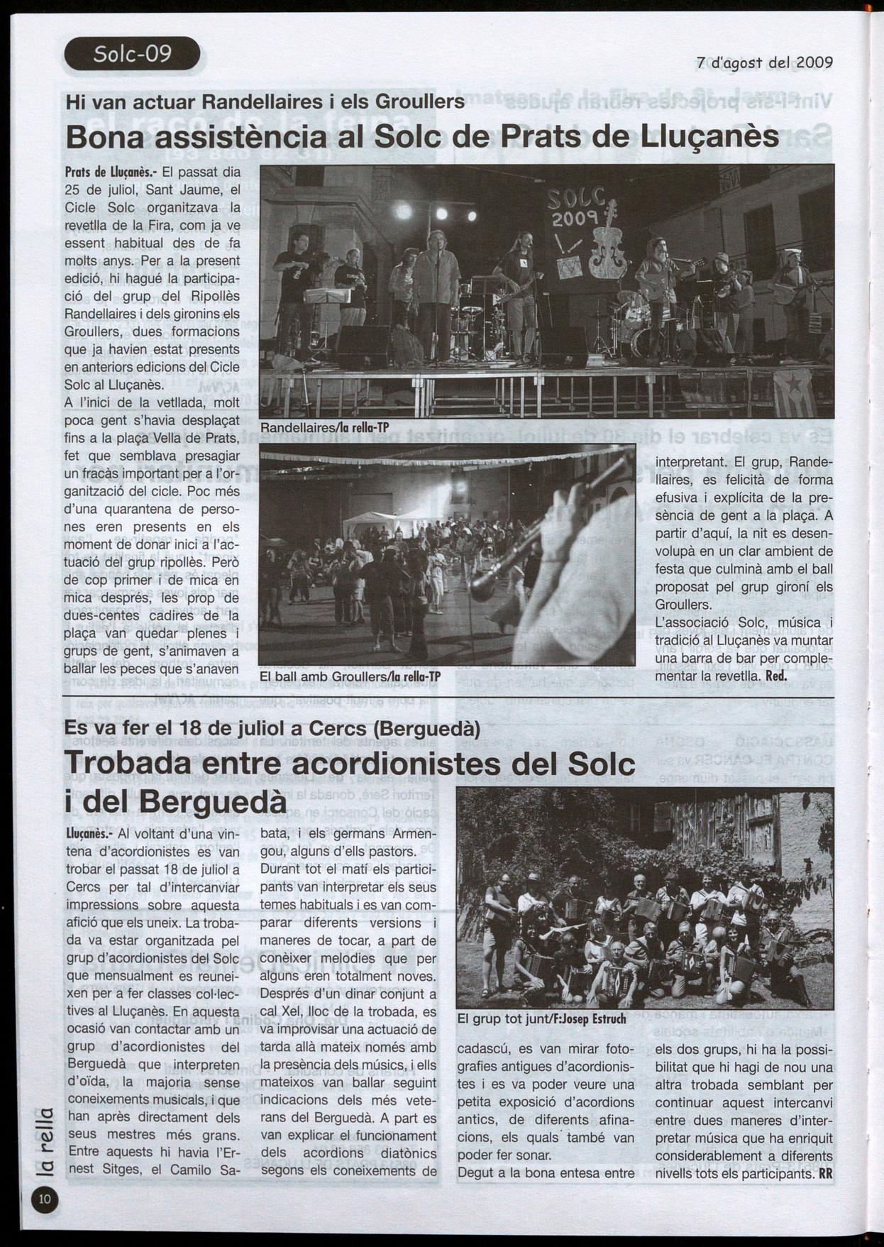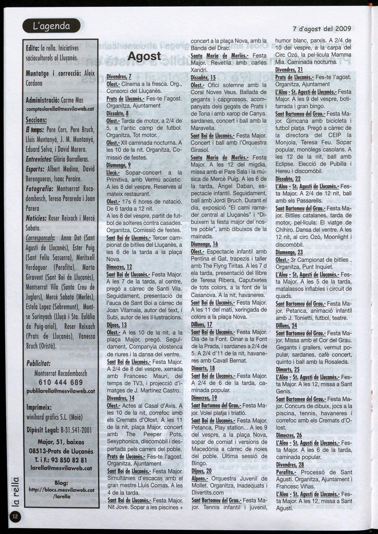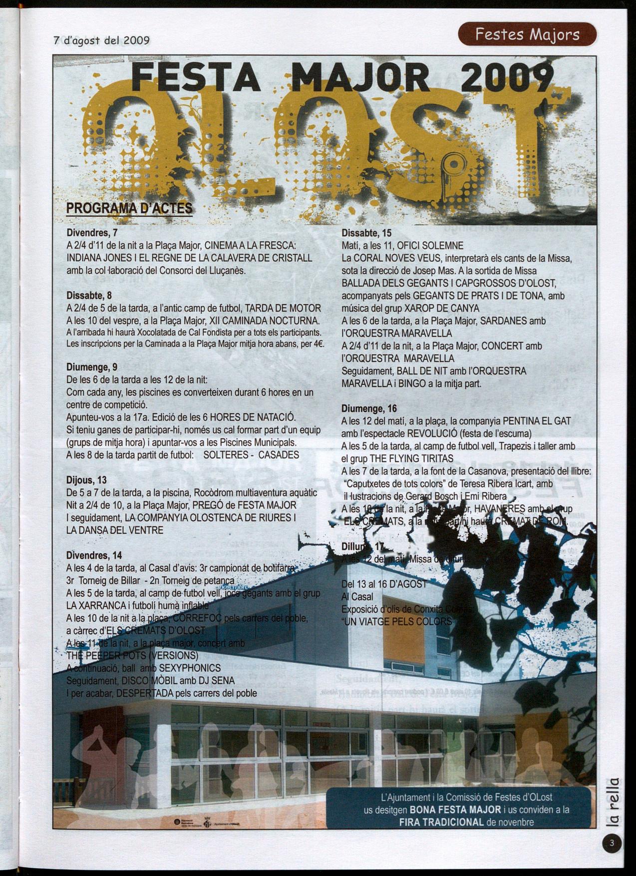 El segon cap de setmana d'agost l'agenda està molt plena i l'ocupen les festes majors de Sant Boi, Olost i Merlès. A cap dels programes hi falta el ball de festa major que acaba quan surt el sol! A Olost destaca l'actuació de