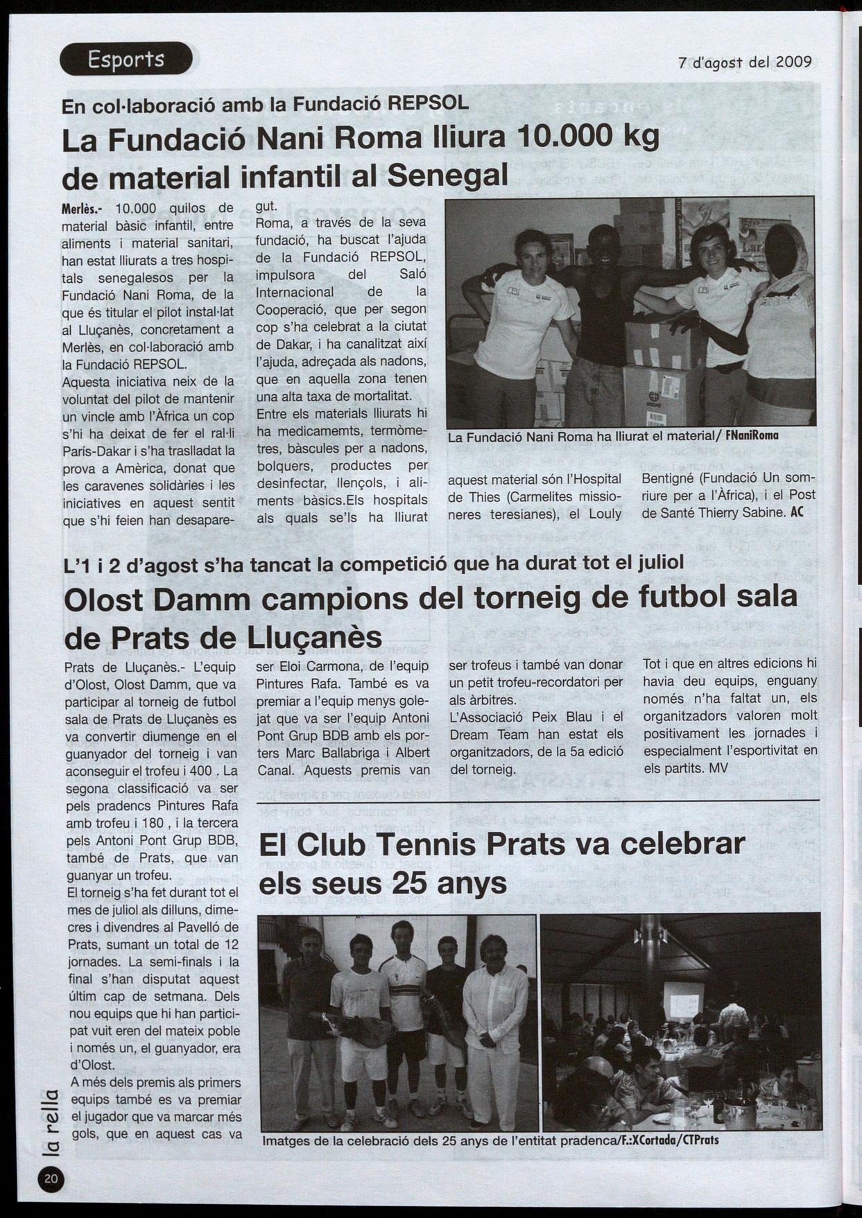 Merlès." 10.000 quilos de material bàsic infantil, entre aliments material sanitari, han estat lliurats a tres hospitals senegalesos per la Fundació Nani Roma, de la que és titular el pilot lnstal-lat al Lluçanès, concretament a Merlès, en col·laboració amb la Fundació REPSOL.