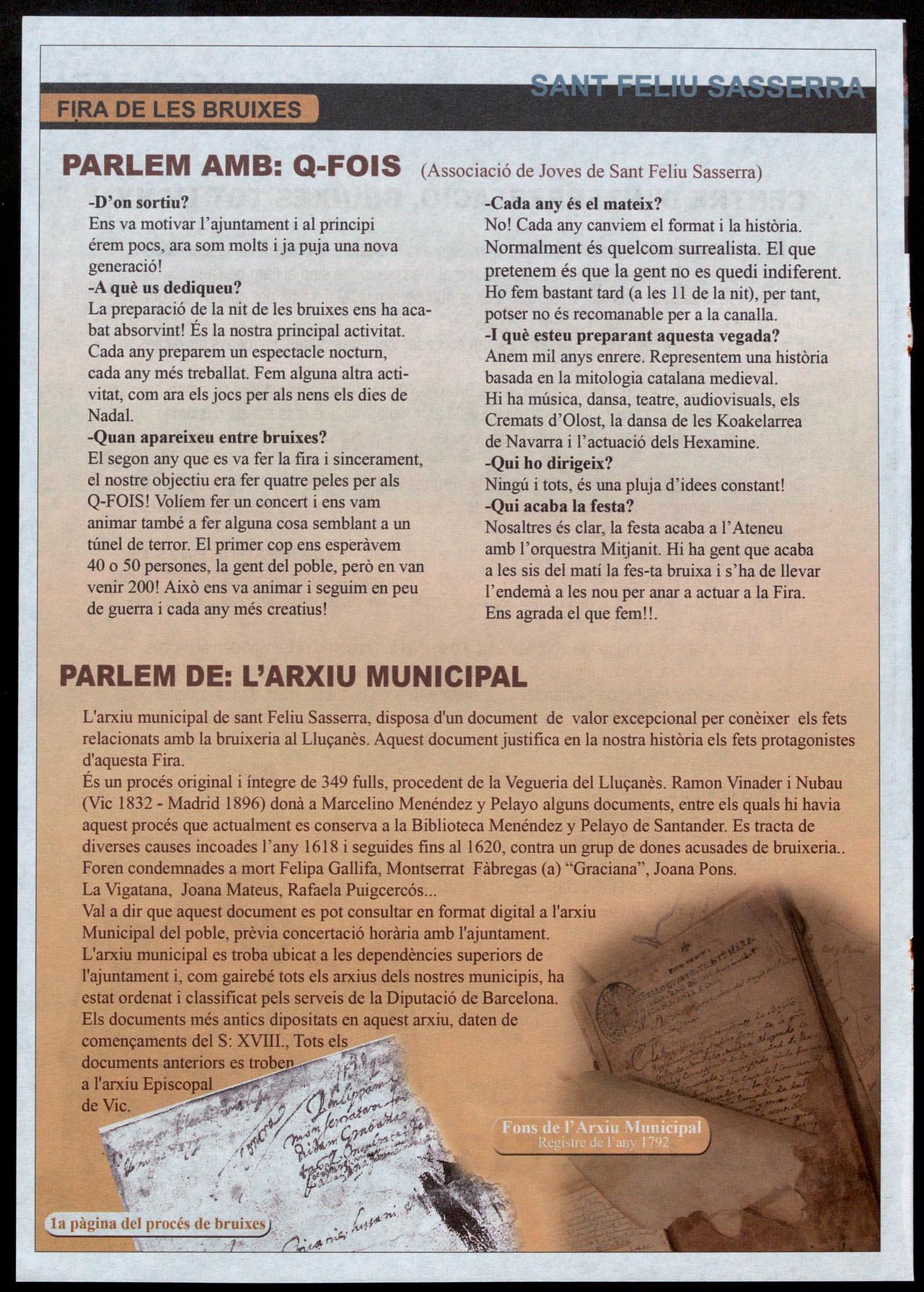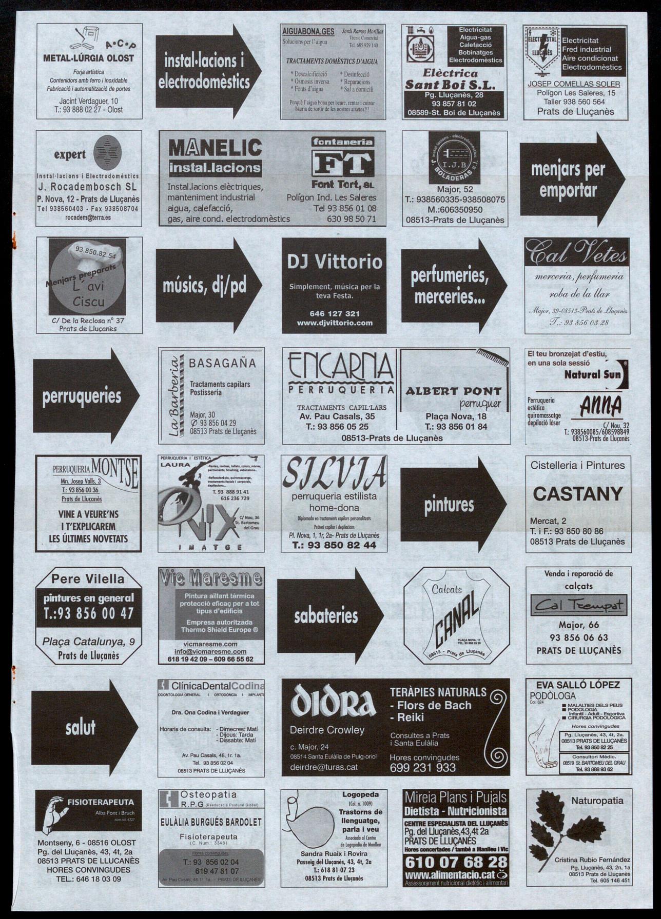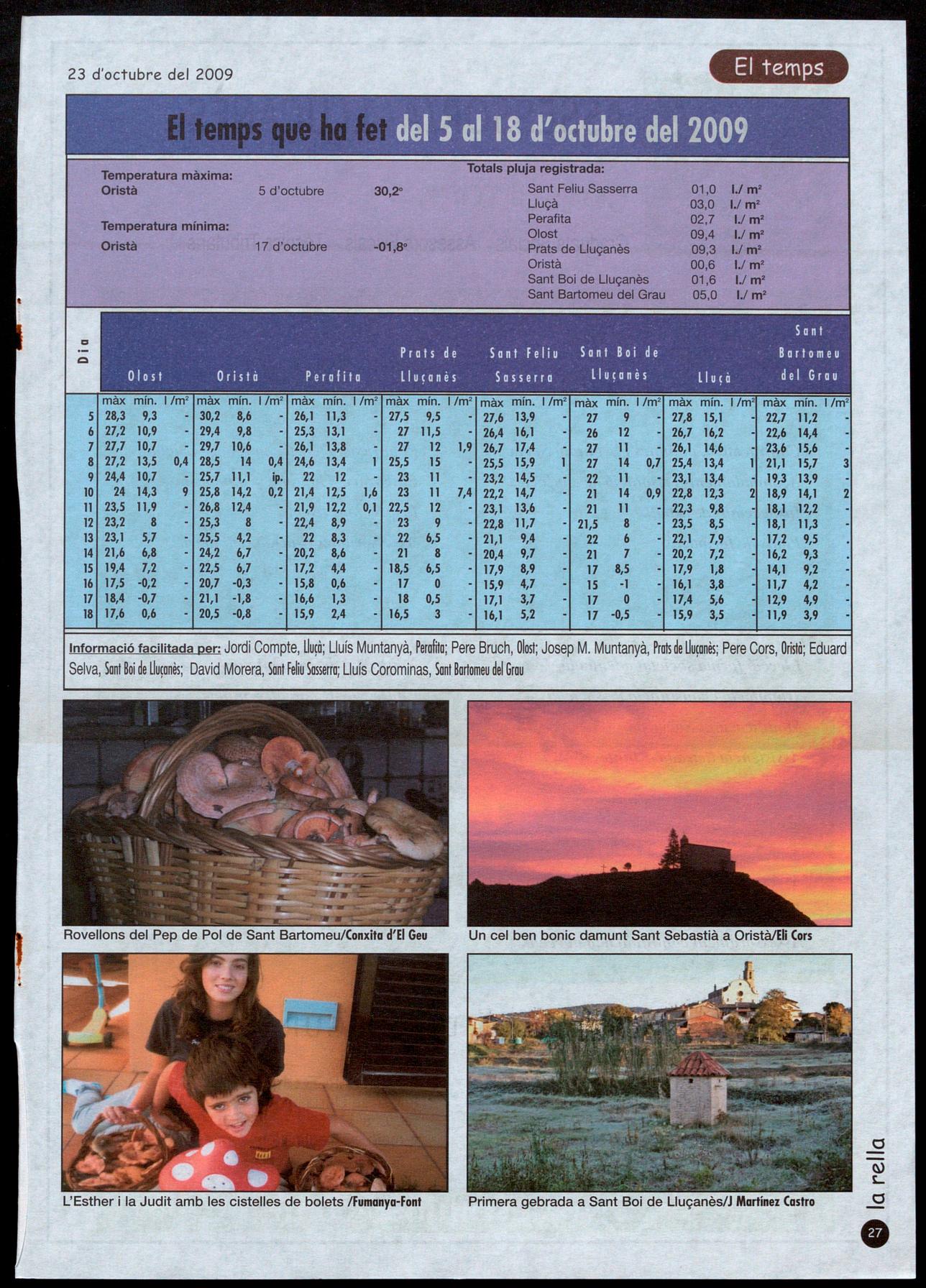 Informació facilitada per: Jordi Compte, lIU¡Ò; Lluís Muntanyà, Perafita; Pere Bruch, Olost; Josep M. Muntanyà, Pratsde lIu¡onès; Pere Cors, Oristò; Eduard Selva, Sant Boi de lIu¡onès; David Morera, SantFeliu Sasserra; Lluís Corominas, Sant Bartomeu del Grau