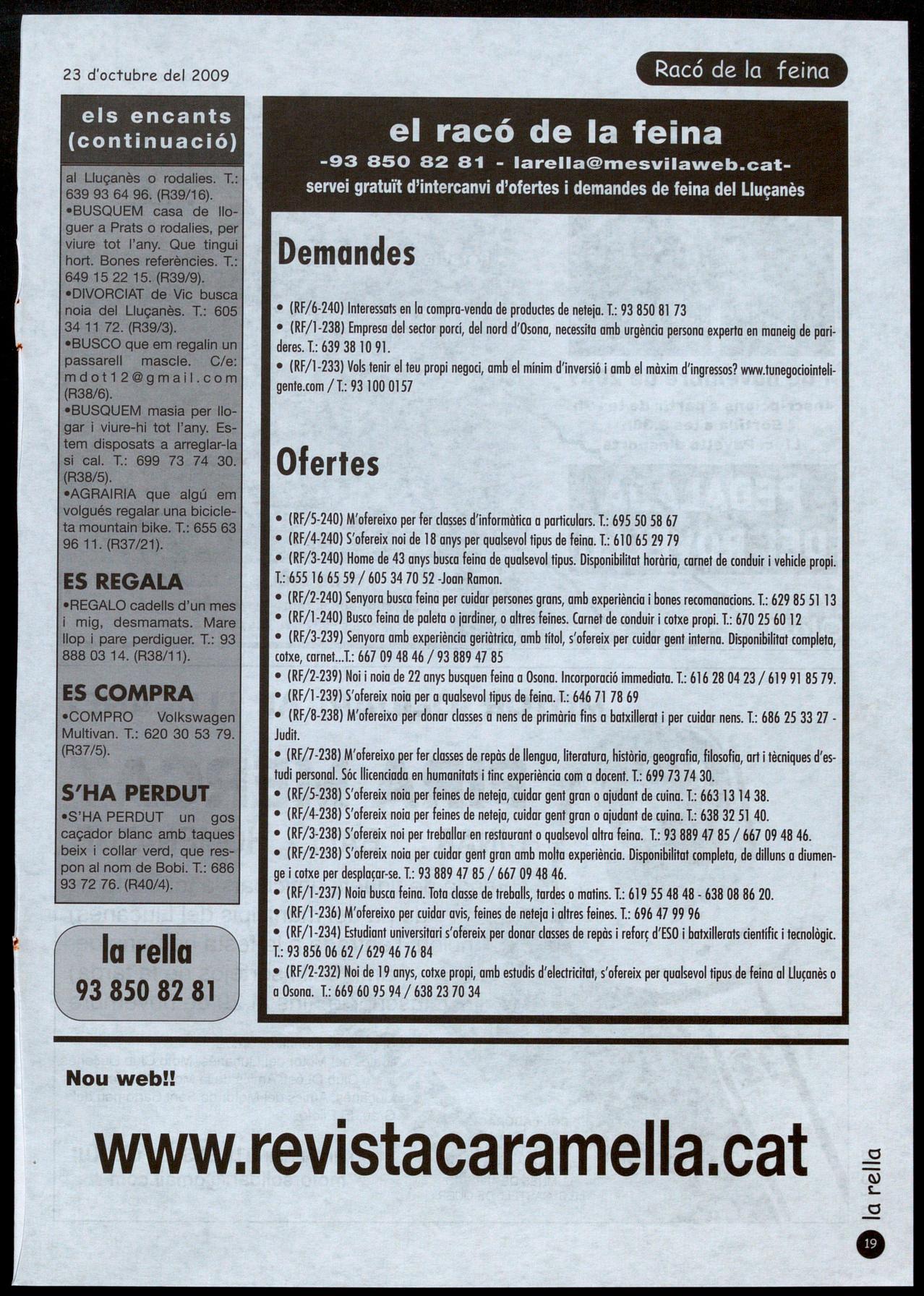 -93 850 82 81 - larella@mesvilaweb.catservei gratuït d'intercanvi d'ofertes i demandes de feina del Lluçanès