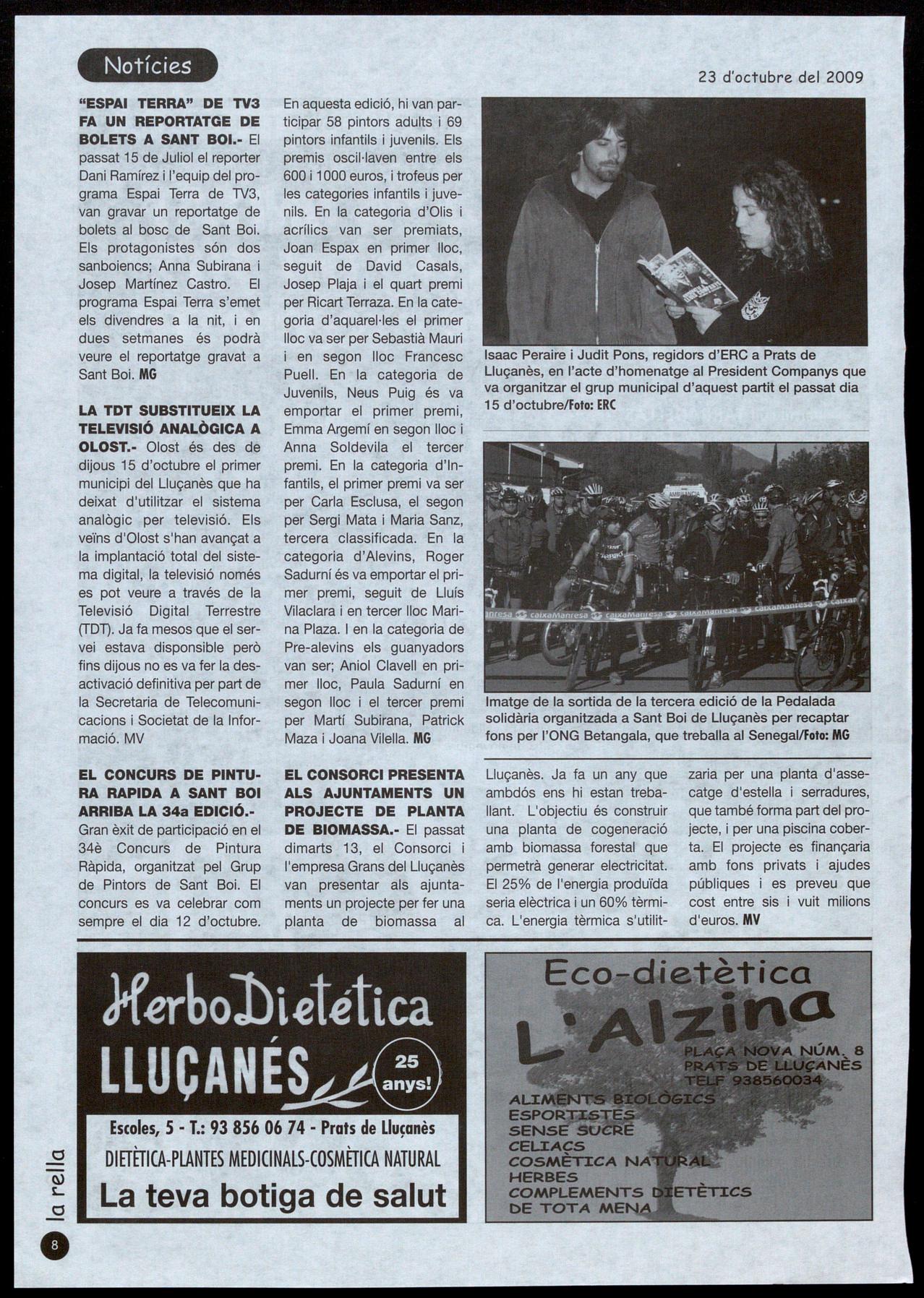LA TDT SUBSTITUEIX LA TELEVISiÓ ANALÒGICA A OLOST.- Olost és des de dijous 15 d'octubre el primer municipi del Lluçanès que ha deixat d'utilitzar el sistema analògic per televisió. Els veïns d'Olost s'han avançat a la implantació total del sistema digital, la televisió només es pot veure a través de la Televisió Digital Terrestre (TOn. Ja fa mesos que el servei estava disponsible però fins dijous no es va fer la desactivació definitiva per part de la Secretaria de Telecomunicacions Societat de la Informació. MV