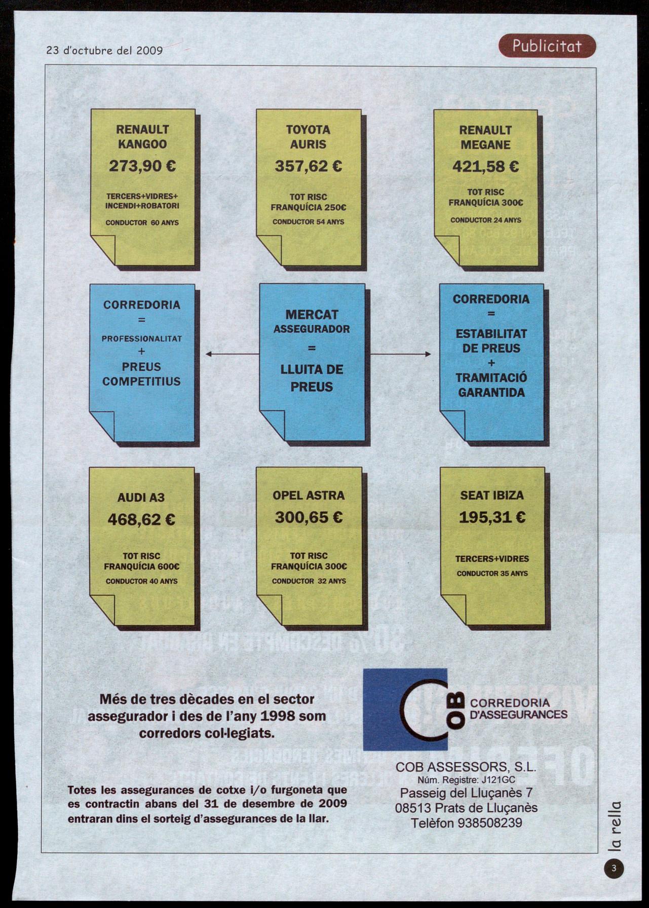 Totes les assegurances de cotxe i/o furgoneta que es contractin abans del 31 de desembre de 2009 entraran dins el sorteig d'assegurances de la llar.