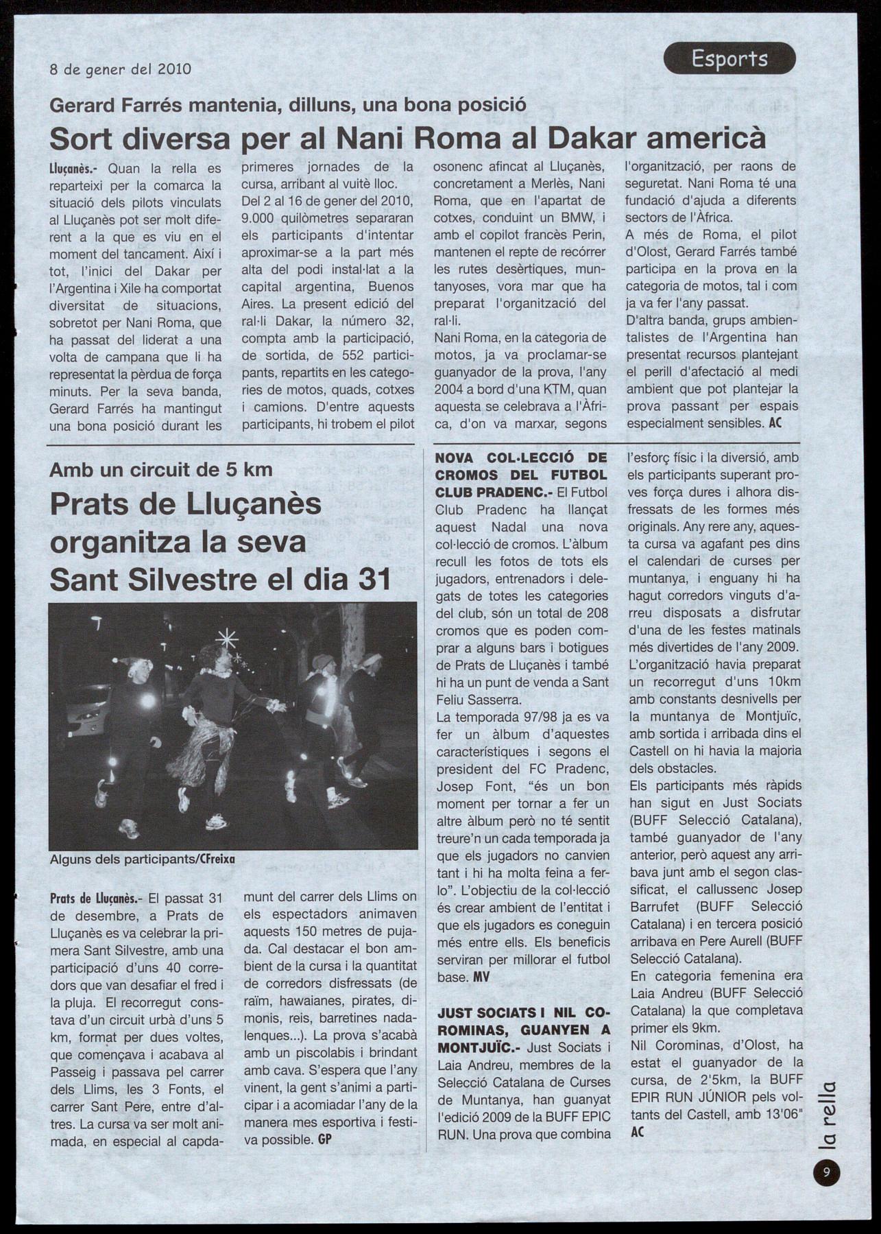 -Amb molta activitat, aquest gener començo el campionat del món de raquetes de neu -l'any anterior vaig aconseguir el segon lIoc-, a la primavera torno a les curses de muntanya on disputaré la copa del món a més a més a l'abril naixerà el meu fill.