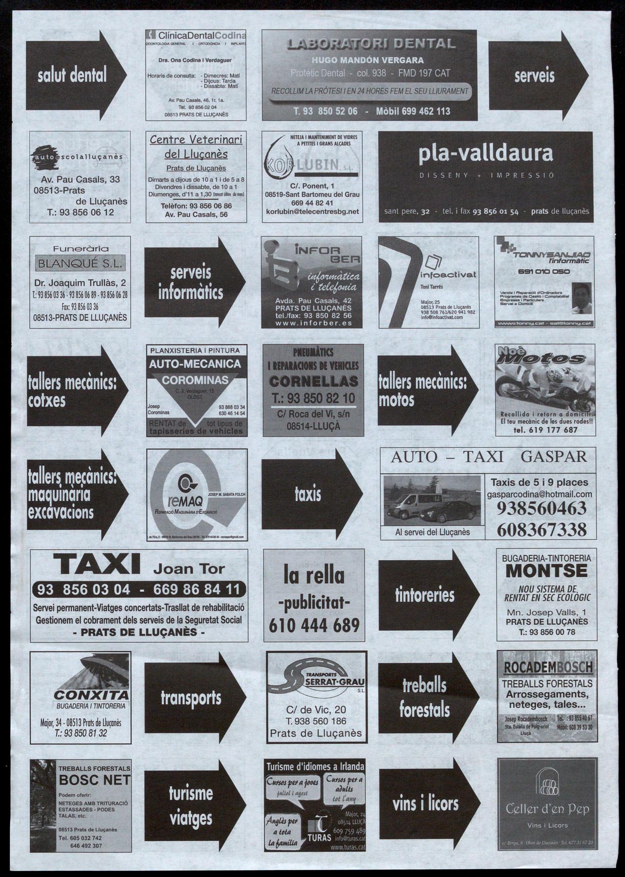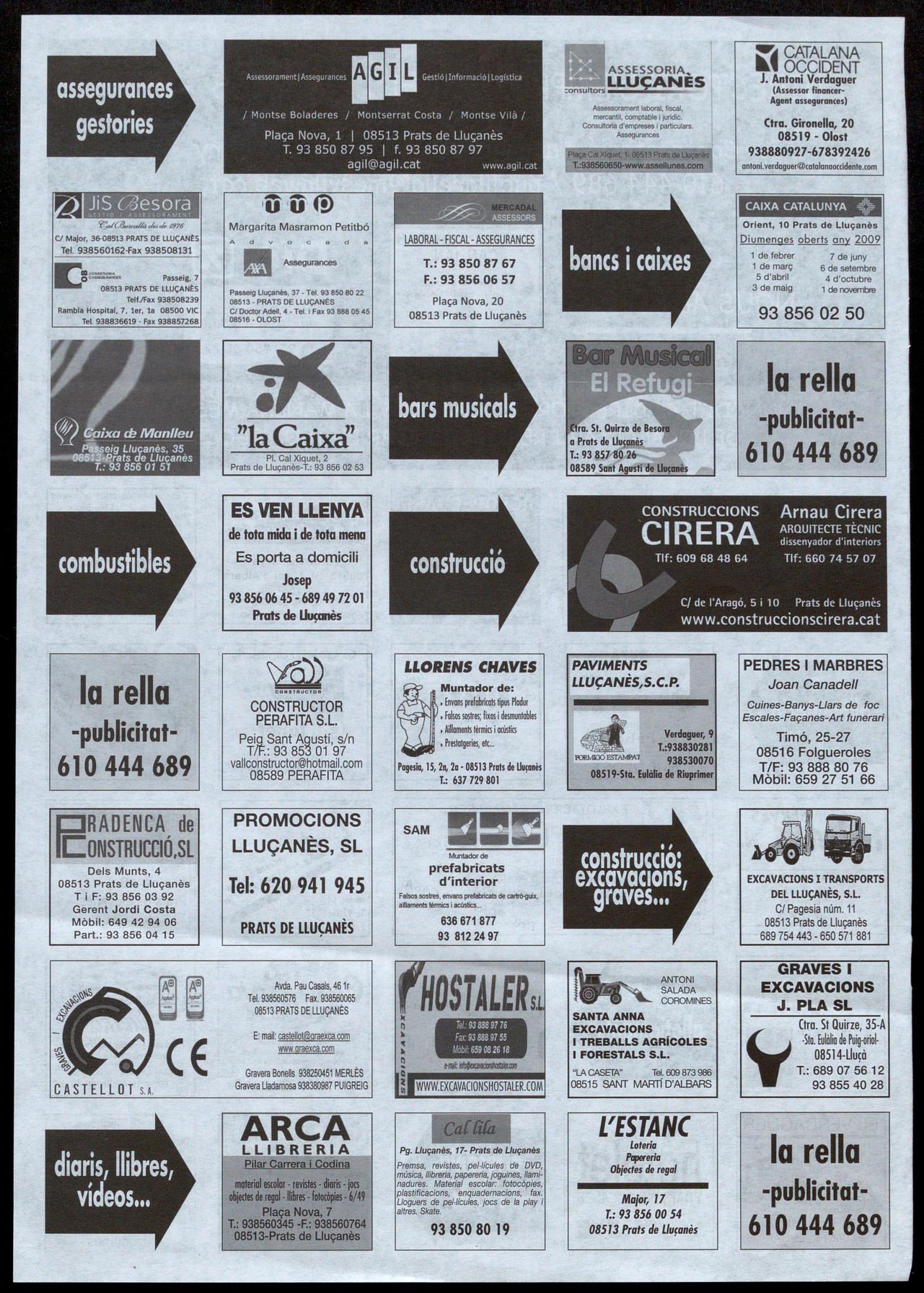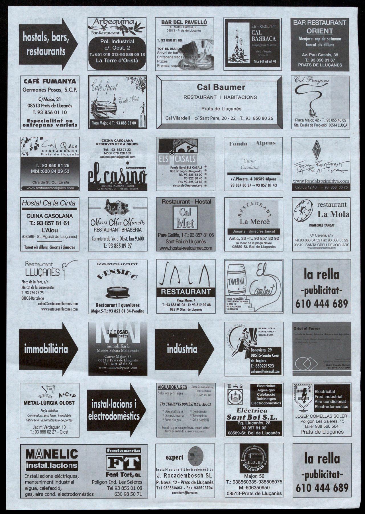 Informació facilitada per: Jordi Compte, Uu¡à; Lluís Muntanyà, Perafita; Pere Bruch, Olosl; Josep M. Muntanyà, Pralsde Llu¡onès; Pere Cors, Oristà; Eduard Selva, Sant Boide Uu¡onès; Lluís Corominas, SantBartomeu del Grau; David Morera, SantFeliu Sasserra