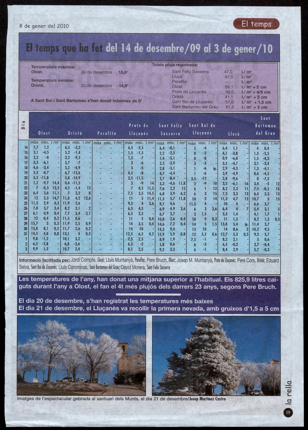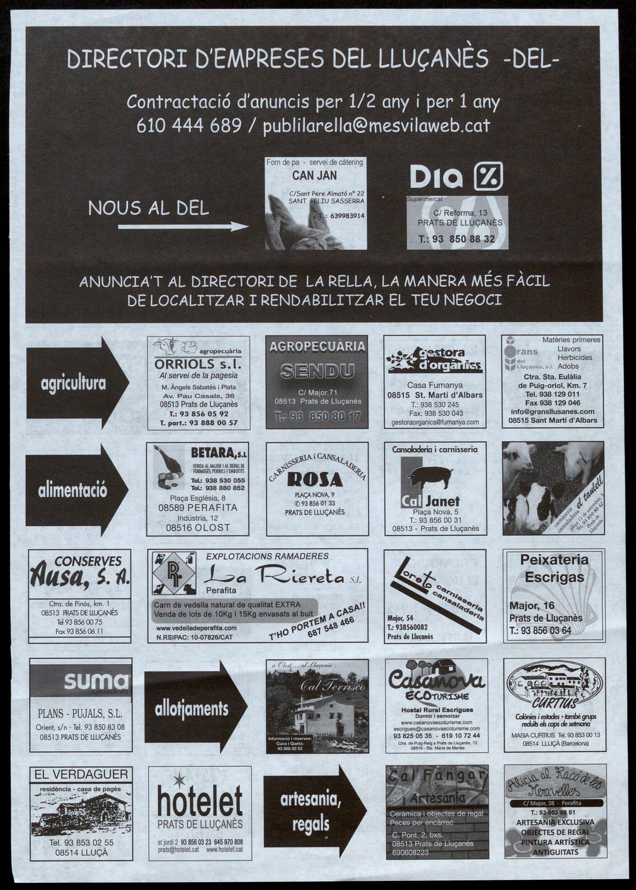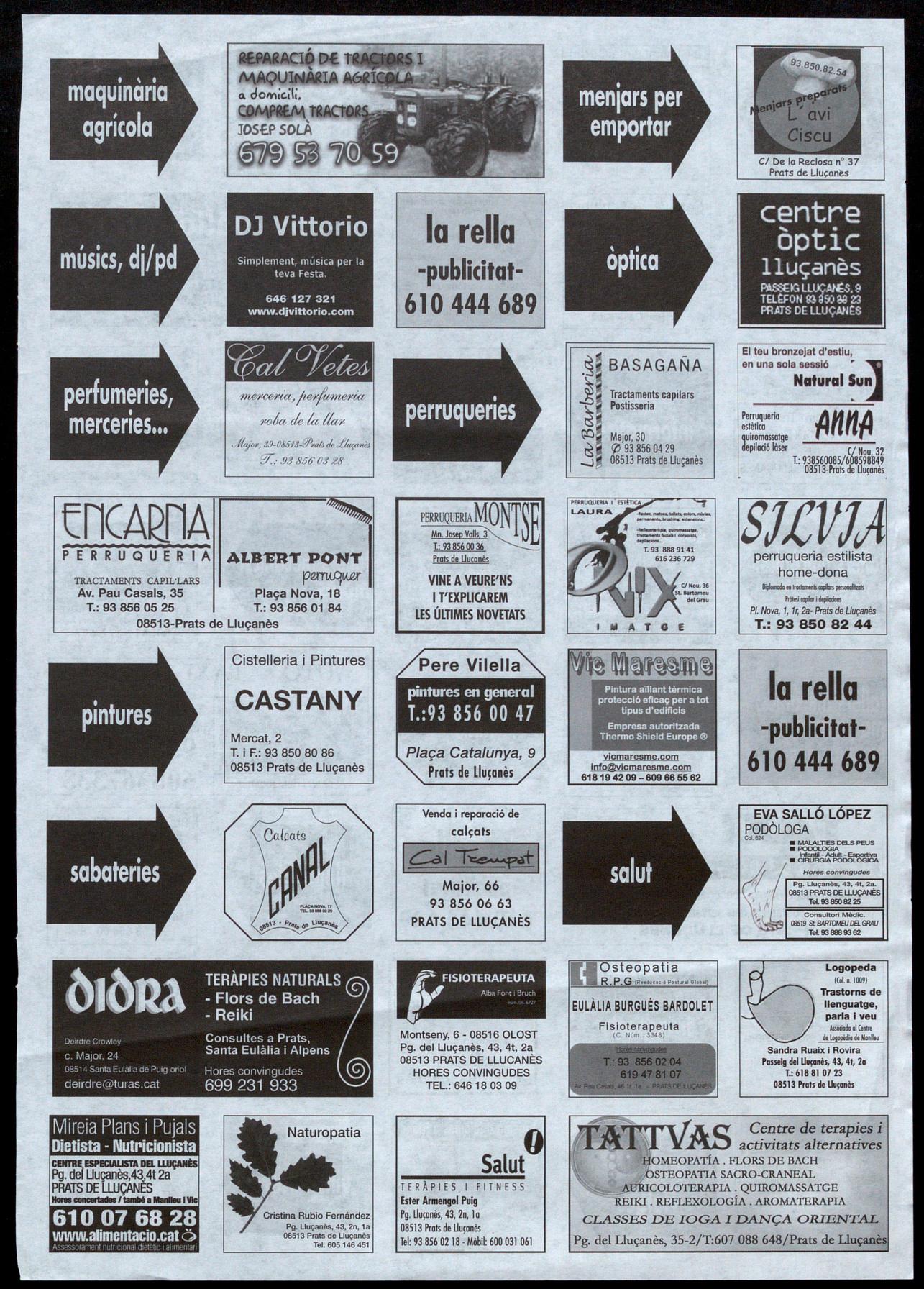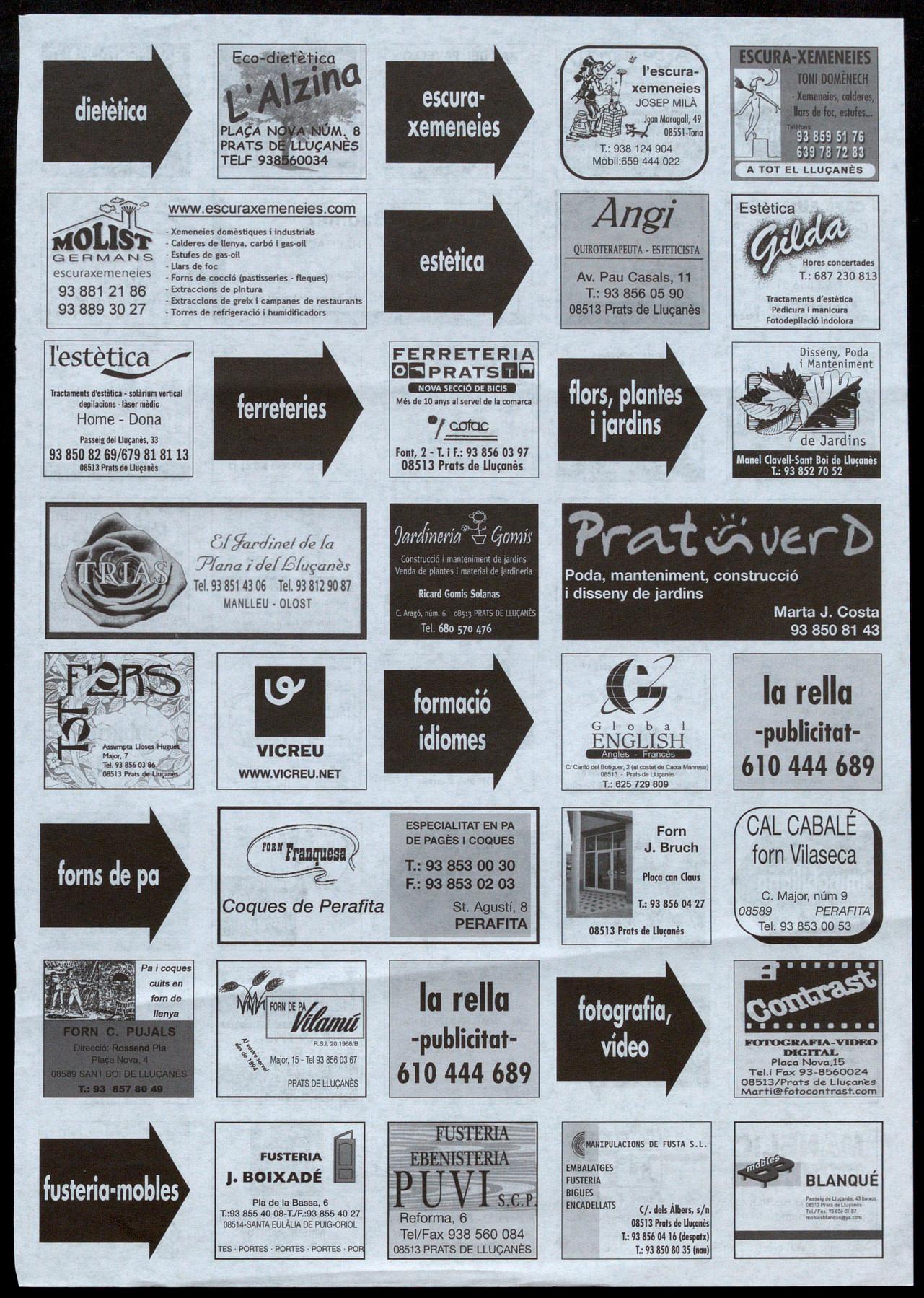 Informació facilitada per: Jordi Compte, Uu¡à; Lluís Muntanyà, Perafita; Pere Bruch, Olosl; Josep M. Muntanyà, Pralsde Llu¡onès; Pere Cors, Oristà; Eduard Selva, Sant Boide Uu¡onès; Lluís Corominas, SantBartomeu del Grau; David Morera, SantFeliu Sasserra