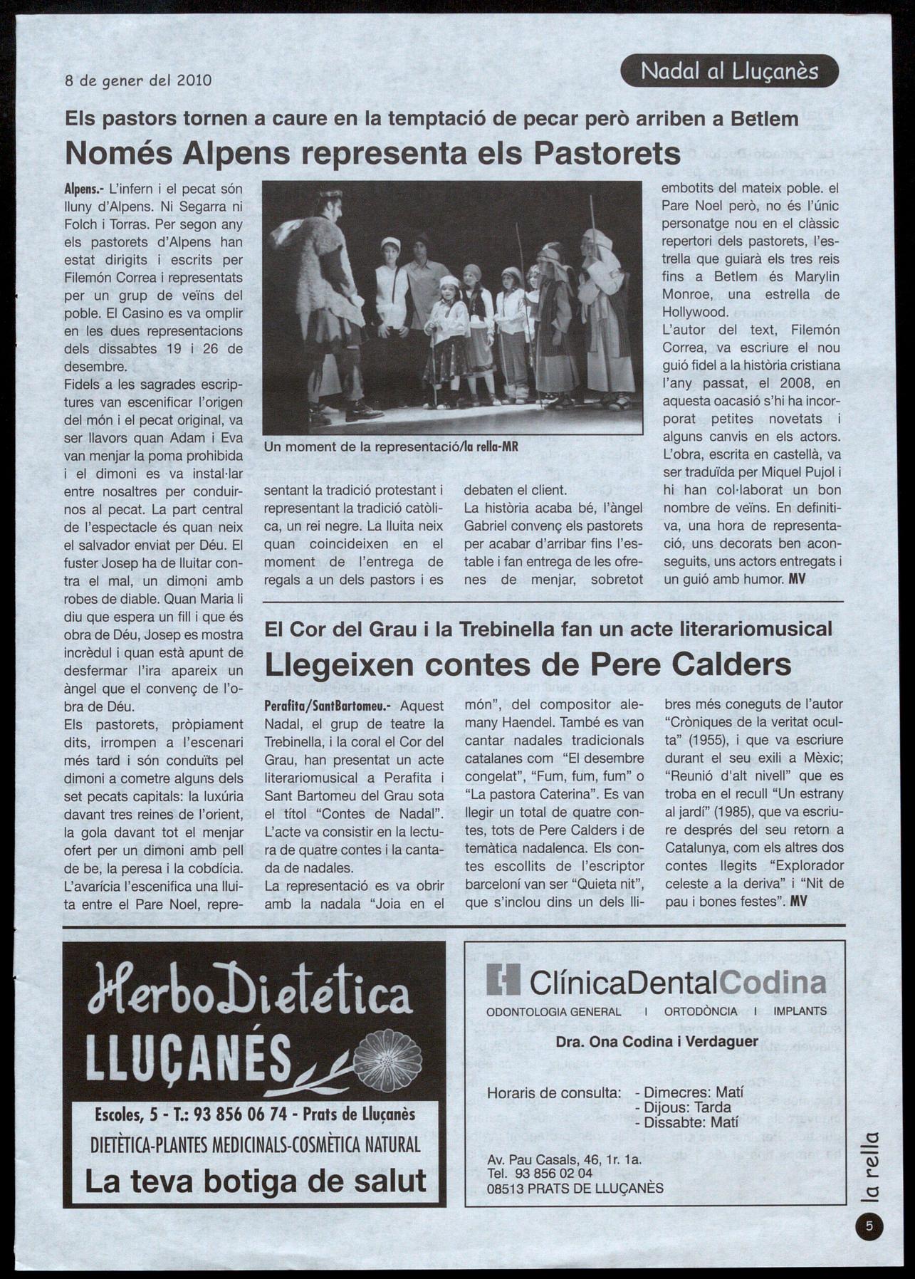 Alpens.- L'infern el pecat són lluny d'Alpens. Ni Segarra ni Folch Torras. Per segon any els pastorets d'Alpens han estat dirigits i escrits per Filemón Correa i representats per un grup de veïns del poble. El Casino es va omplir en les dues representacions dels dissabtes 19 26 de desembre.