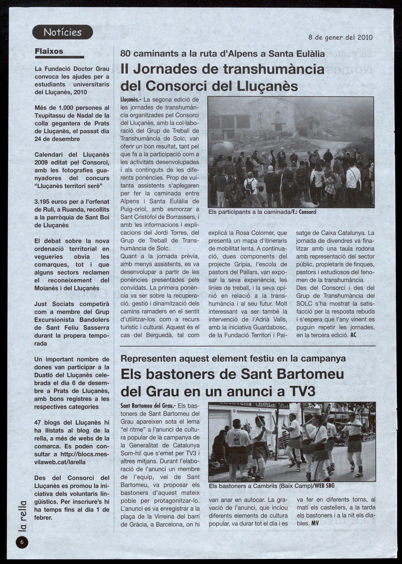 Lluçanès.- En el darrer trimestre de l'any passat, el Consorci del Lluçanès edità per primera vegada una memòria de l'activitat de l'ens comarcal, corresponent a l'exercici 2008. En aquest recull d'activitats, serveis recursos, s'hi poden trobar les línies de treball impulsades pel Consorci, els serveis de què disposa per dur-les a terme el mitjans. En concret, la memòria detalla 36 projectes desenvolupats per les diferents àrees,