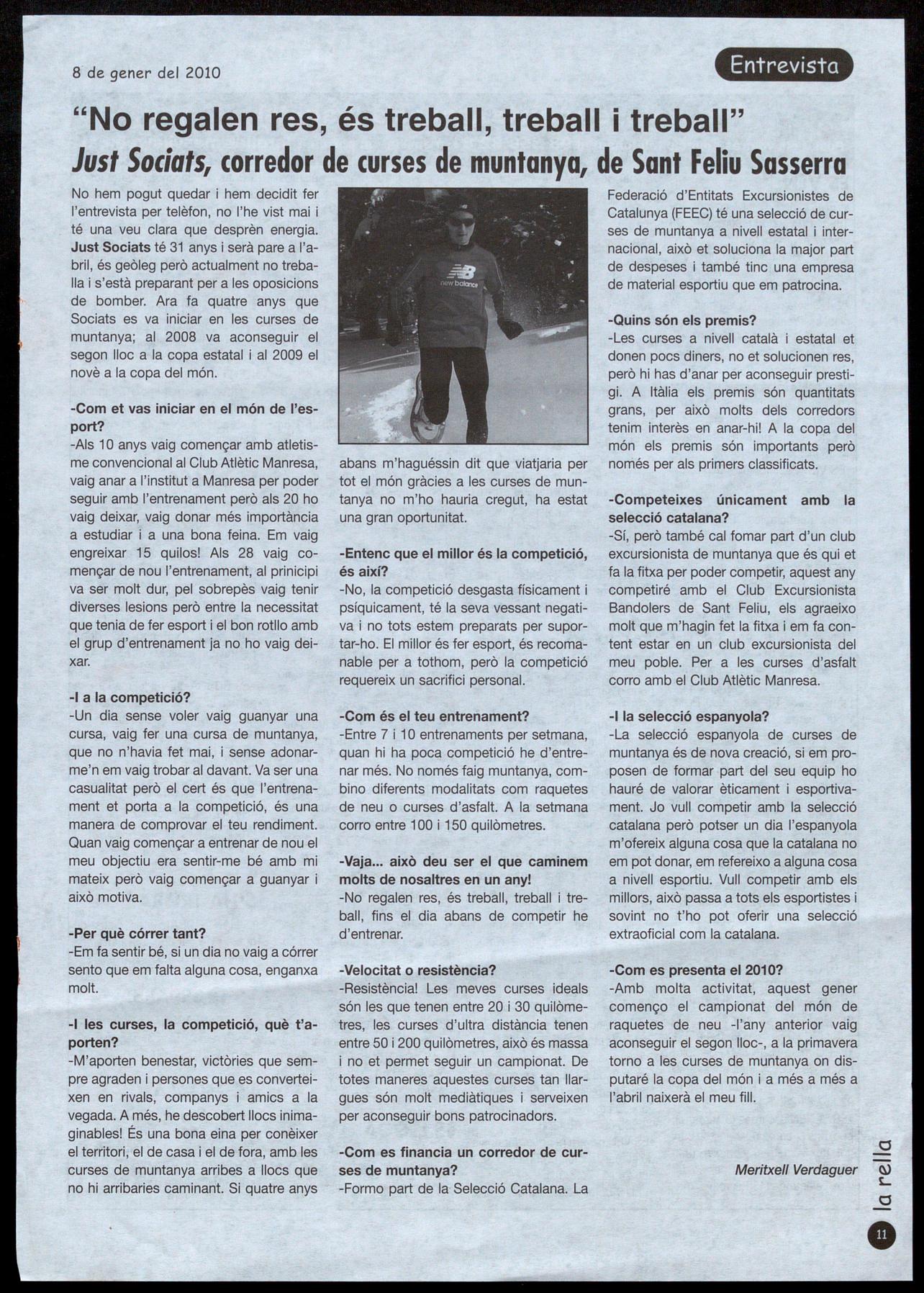 -La selecció espanyola de curses de muntanya és de nova creació, si em proposen de formar part del seu equip ho hauré de valorar èticament esportivament. Jo vull competir amb la selecció catalana però potser un dia l'espanyola m'ofereix alguna cosa que la catalana no em pot donar, em refereixo a alguna cosa a nivell esportiu. Vull competir amb els millors, això passa a tots els esportistes sovint no t'ho pot oferir una selecció extraoficial com la catalana.