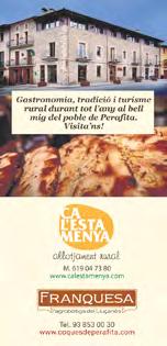 De divendres a dilluns de 8 a 17h Sopars altres dies sota reserva 650 35 62 99 Sobremunt 9_RESTAURANTS·BARS·HOSTALS 10_ALIMENTACIÓ PERAFITASOBREMUNT ALPENS SANTA CREU LA TORRE LLUÇÀ OLOST LA QUAR STA EULÀLIA CELEBRACIONS CARNISSERIES SUPERMERCATS FORMATGES FORNS DE PA MESTRE ARTESÀ ALIMENTARI CANSALADER - XARCUTER PLATS PREPARATS DISTRIBUCIÓ PRATS DE LLUÇANÈS SANT BOI SANT BARTOMEU SANT AGUSTÍ