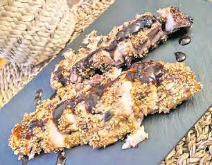 rebossar els filets de tonyina amb sèsam i altres llavors.