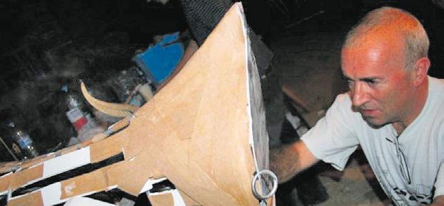 1. Batllori durant la construcció de La Fera.//F: ELS CREMATS 2. Vinyeta que va publicar a la primera Rella//