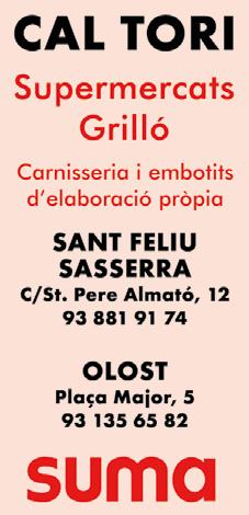 8_RESTAURANTS·BARS·HOSTALS 9_ALIMENTACIÓ PERAFITA LA TORRE LLUÇÀ OLOST LA QUAR SANTA CREU STA EULÀLIA CELEBRACIONS CARNISSERIES SUPERMERCATS FORMATGES FORNS DE PA PLATS PREPARATS DISTRIBUCIÓ PRATS DE LLUÇANÈS SANT AGUSTÍ SANT BARTOMEU Dilluns i dimarts tancat 93 852 71 23